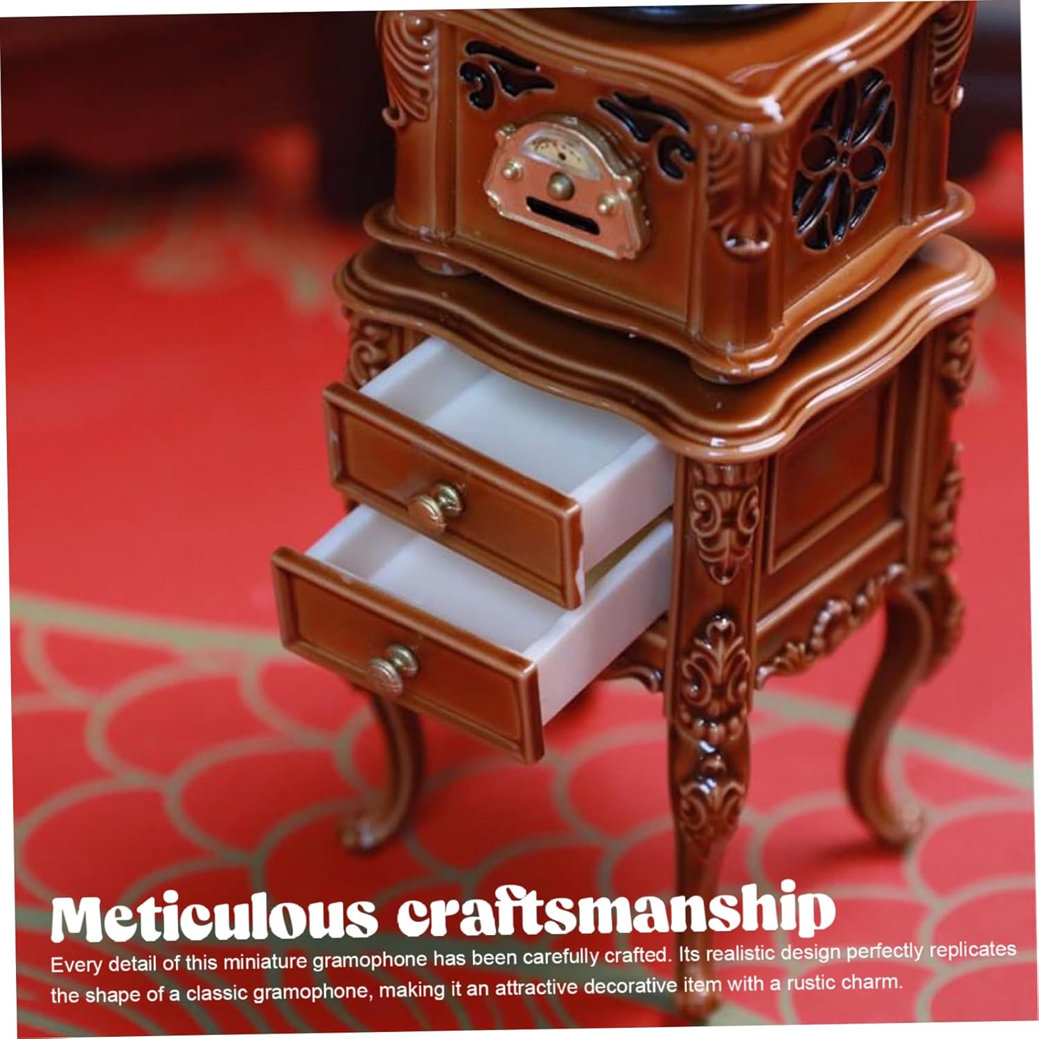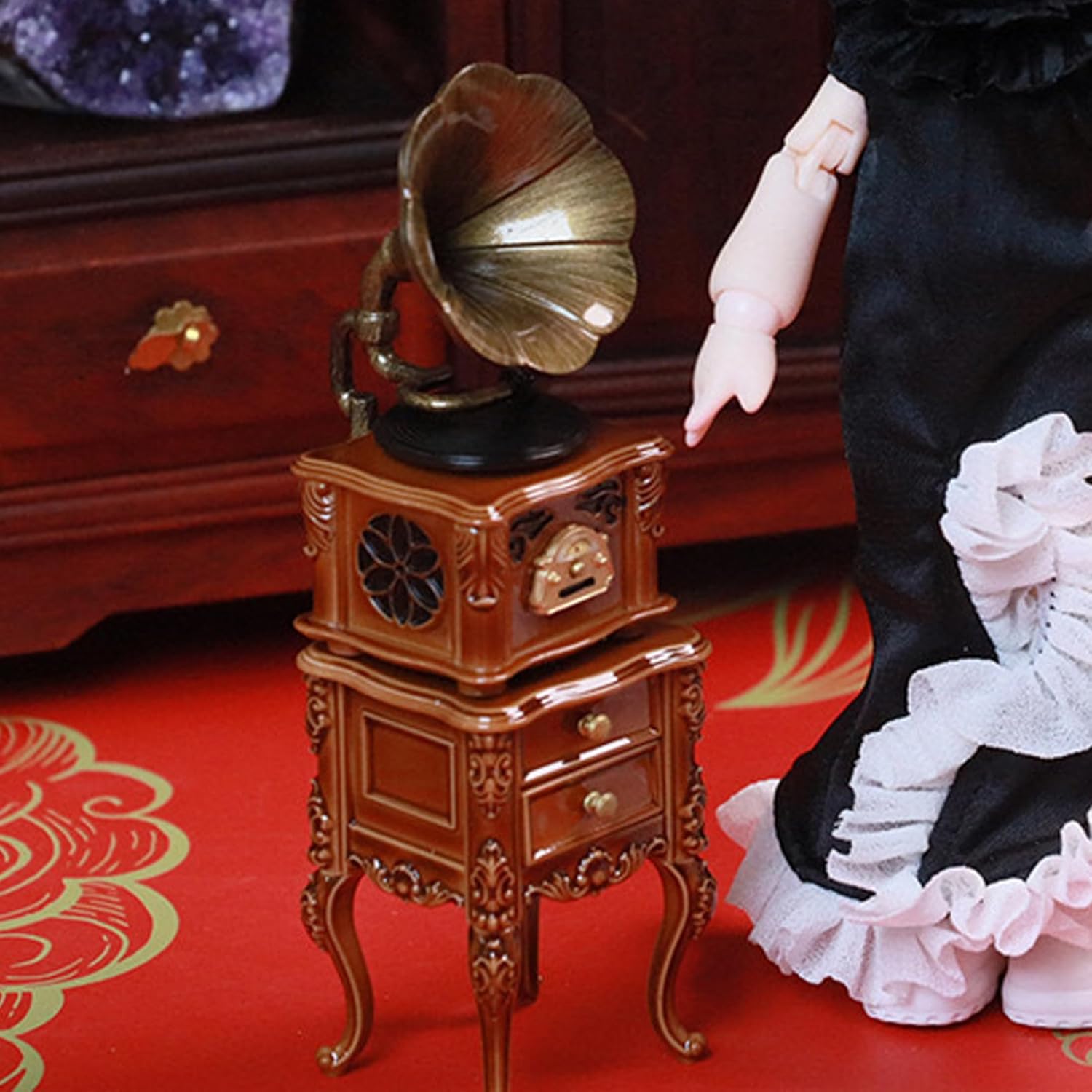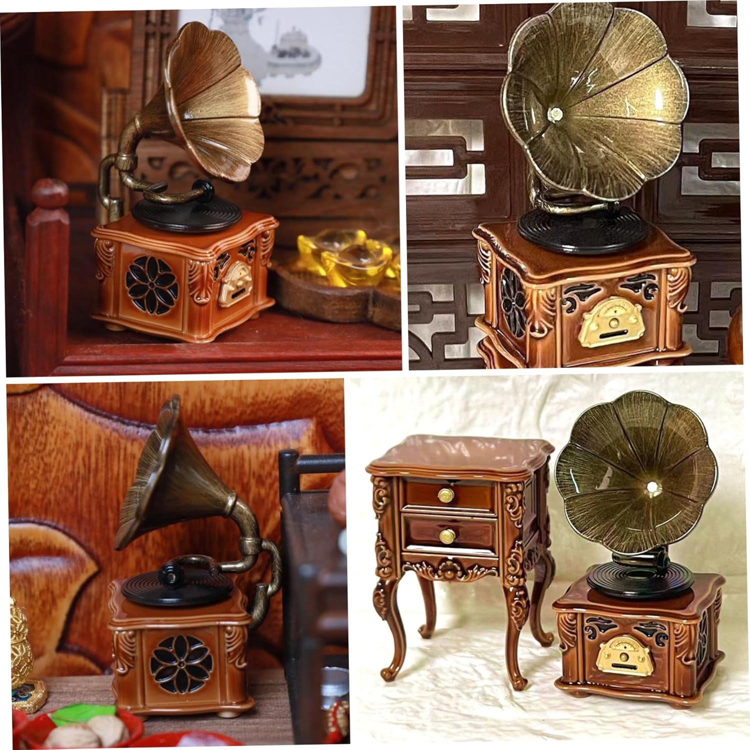 Pezzo decorativo multifunzionale: questo mini fonografo funge da elegante ornamento del desktop o da un oggetto da collezione, portando un tocco nostalgico di eleganza e rendendo qualsiasi piccolo spazio unico e invitante. Miniatura del fonografo per mobili per le bambole Materiali di qualità: costruito con materiali robusti, fonografi e mobili in miniatura garantiscono una durata duratura e una finitura dettagliata che resiste a frequenti maneggevoli o visualizzazioni nelle case delle bambole e altre configurazioni creative..Accessori per la casa delle bambole fonografiche in miniatura Perfetto per collezionisti e donazioni: ideale per gli hobbisti delle bambole in miniatura o come speciale, questo mini fonografo vintage con il suo gabinetto è un regalo unico e memorabile che delizia gli amanti della miniatura e ammiratori di decorazioni vintage..Accessori per la casa delle bambole in miniatura Accessori per la casa delle bambole Autentico design vintage: questo fonografo in miniatura presenta intricati dettagli retrò, catturando il fascino dei classici lettori musicali vintage che completano perfettamente qualsiasi decorazione di bambole o desktop..Goditi l'artigianato realistico in una dimensione compatta che fa appello a collezionisti e appassionati..Miniature Accessori per bambole Accessori per bambole Miniature Funzione musicale incorporata: dotato di tre deliziose canzoni integrate, questo fonografo in miniatura fornisce non solo un fascino visivo ma anche interazione sonora coinvolgente, migliorando l'atmosfera generale delle scene in miniatura o dell'area desktop..Accessori per la casa delle bambole per bambole