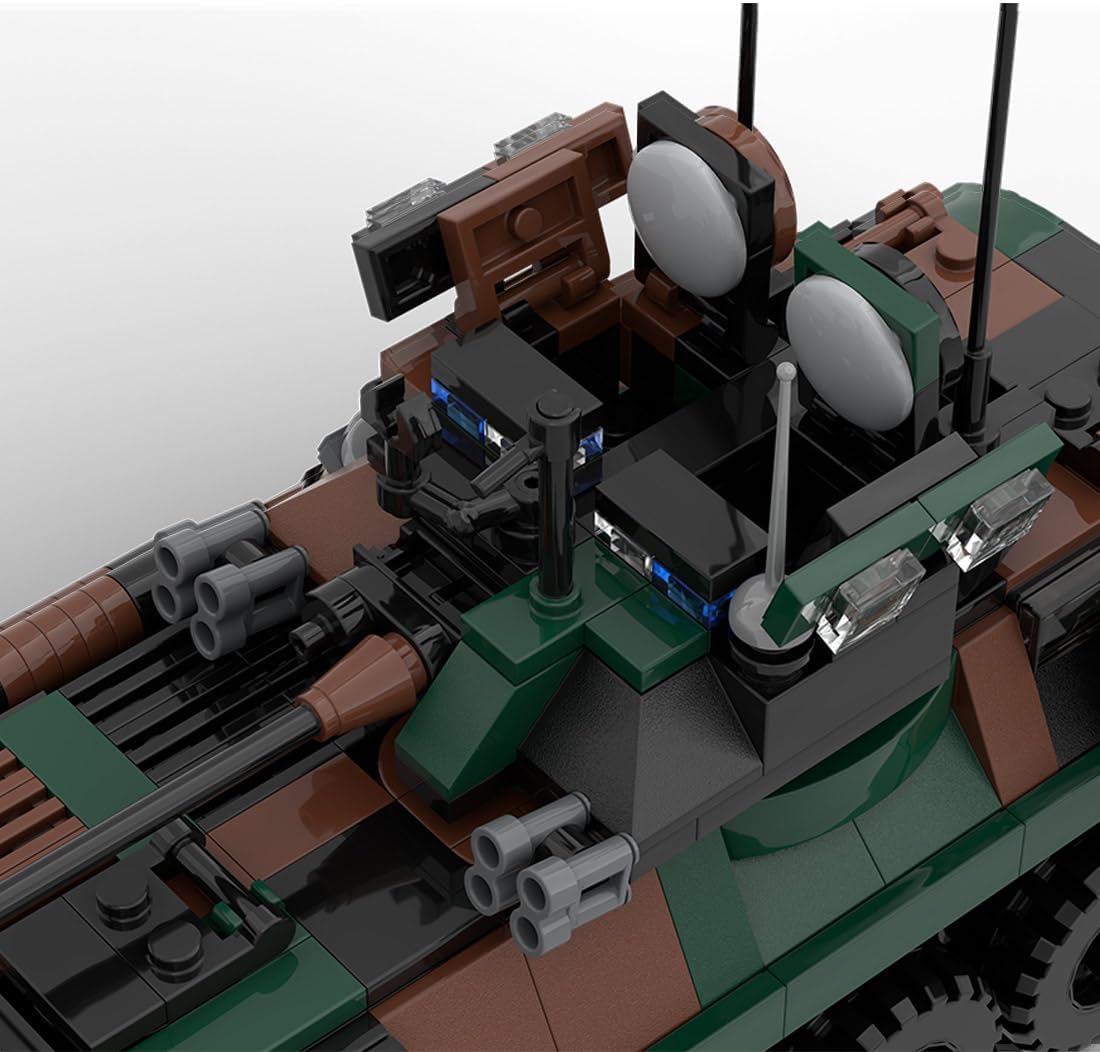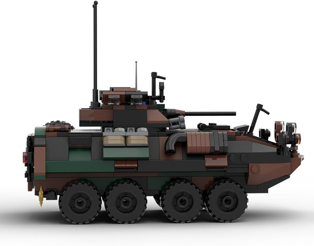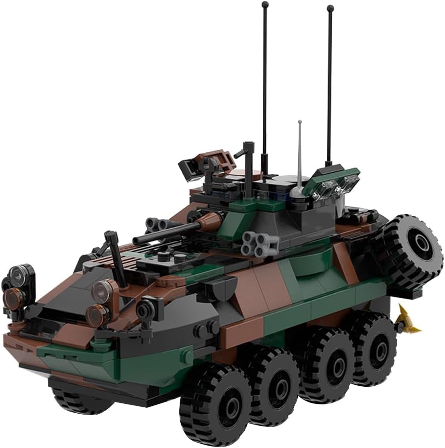 Introduzione al prodotto: Il veicolo da combattimento di fanteria LAV-25 progettato e autorizzato da Zaturon, composto da 476 elementi costitutivi, è un veicolo da combattimento di fanteria a trazione integrale sviluppato negli Stati Uniti all'inizio degli anni '80. Lo scafo e la torretta del corazzato da trasporto truppe LAV-25 sono realizzati con strutture saldate in acciaio corazzato. L'area anteriore è resistente ai proiettili perforanti da 7,62 mm, mentre le altre aree sono resistenti ai proiettili perforanti e alle schegge da 7,62 mm. Design modulare: questo veicolo corazzato da combattimento di fanteria modulare è dotato di rotolabilità, porte posteriori apribili e una torretta liberamente regolabile che può ospitare un totale di 7-8 soldati, di cui 4-5 persone all'interno, 1 persona nell'abitacolo e 2 occupanti nella torretta. Ci sono pneumatici di scorta e taniche di carburante sui lati, la parte anteriore del veicolo e la torretta sono dotate di fermacavi. Le 476 parti di alta qualità realizzate in ABS ecologico con qualità di fusione ad alta precisione si incastrano perfettamente. Questo set colorato e robusto offre agli hobbisti una sensazione di mano impeccabile senza sbavature per un montaggio facile e sicuro. Consigliato a persone dai 15 anni in su. Poiché il set contiene parti di piccole dimensioni, è necessario prestare attenzione durante la manipolazione e l'utilizzo. In caso di problemi durante il montaggio, contattateci in tempo.