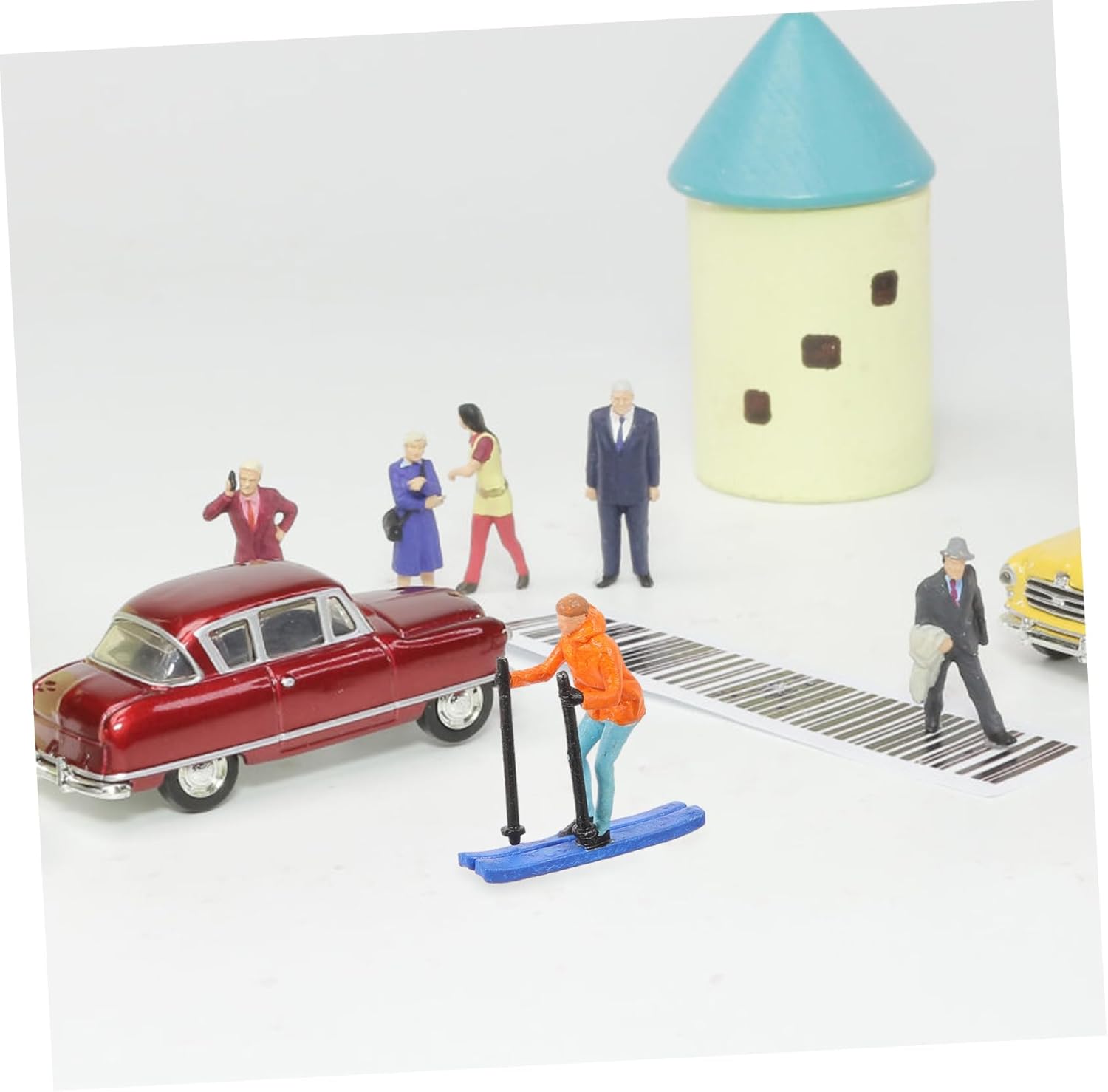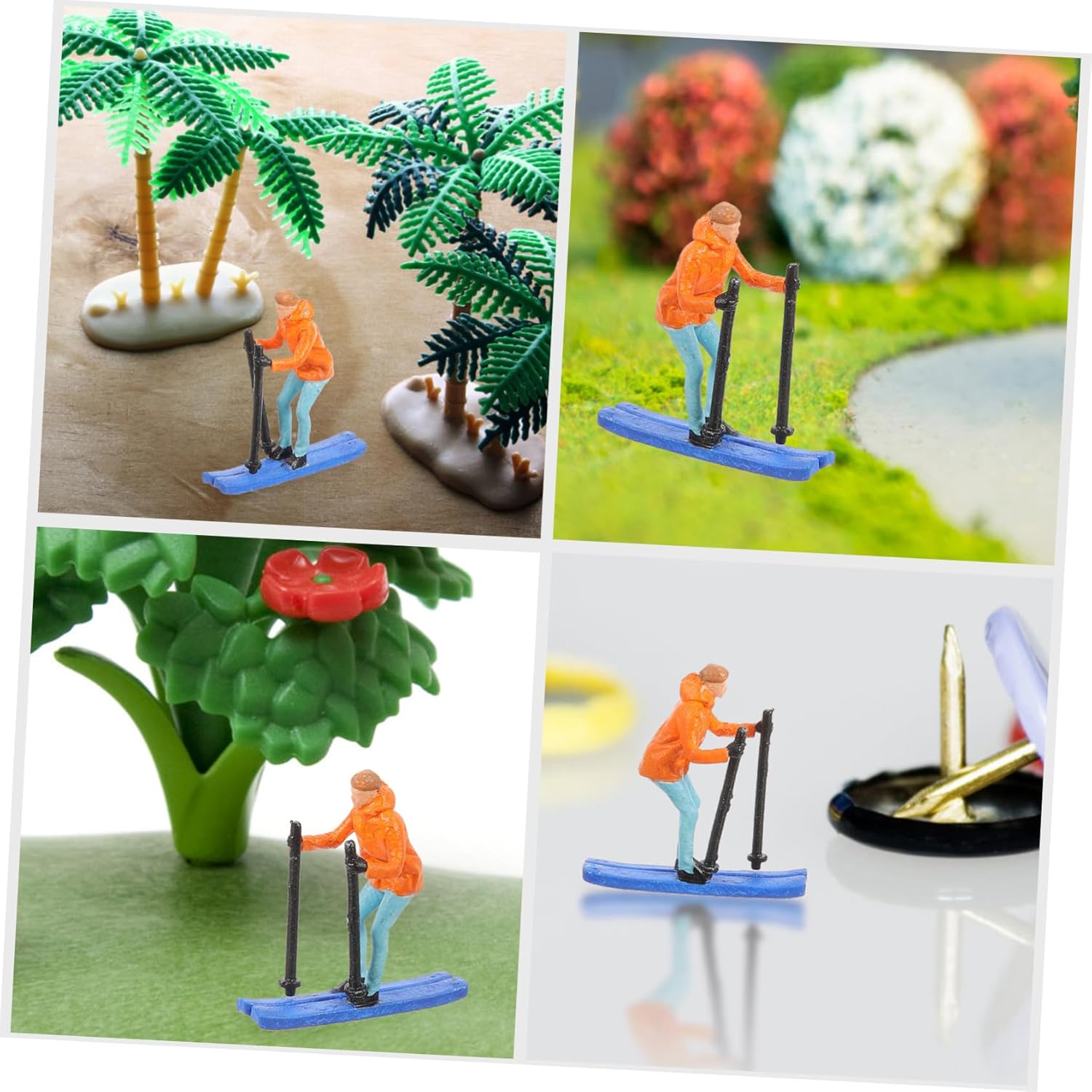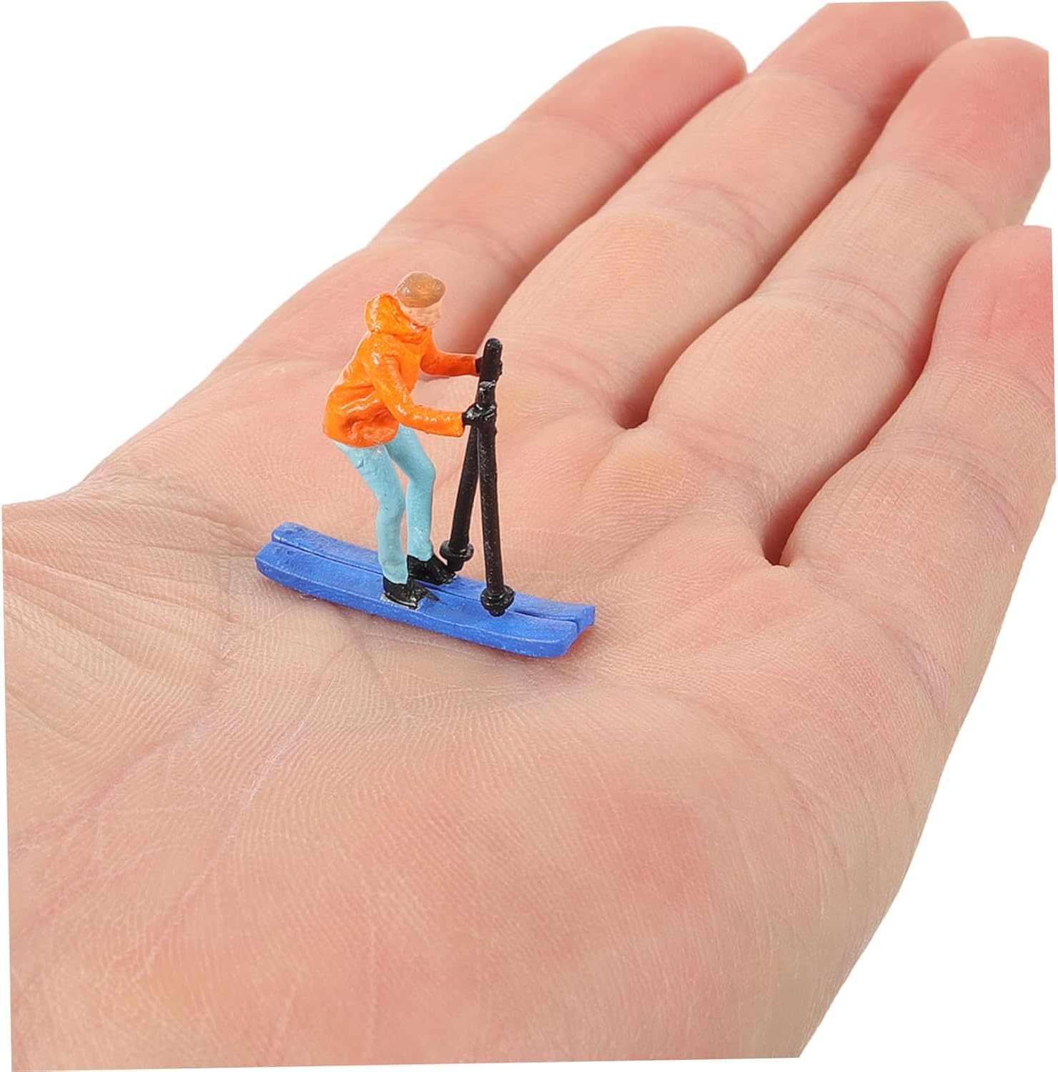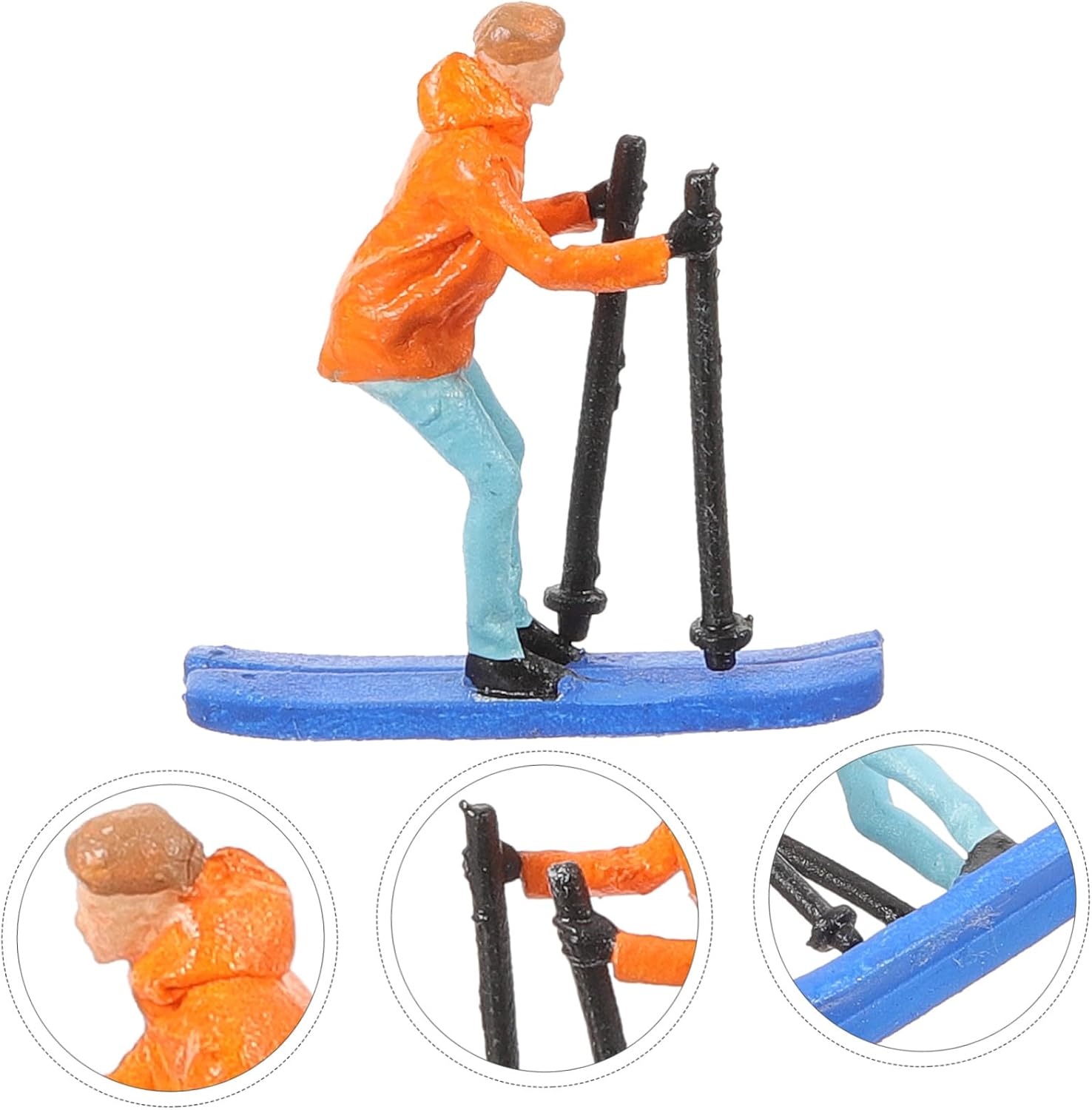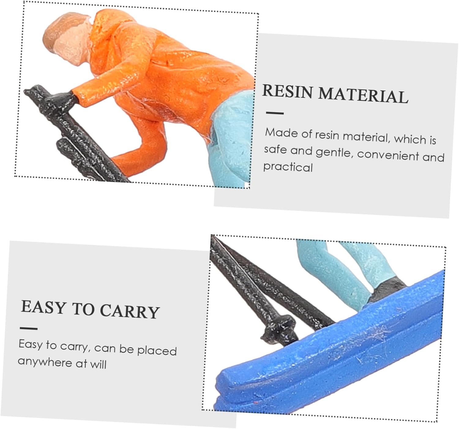Modello di sciatore da tavolo di sabbia: presenta dimensioni compatte, senza occupare troppo spazio, puoi usarlo con sicurezza, accessori per tavolo di sabbia Sciatori in miniatura: le piccole statuette degli sciatori sono realizzate in materiale di resina, sicuro e durevole da usare, piccolo modello umano Simulazione di ornamento umano: migliorano sicuramente l'aspetto del paesaggio e aggiungono un po' di realismo, sembrano davvero delicati, mini modello di figura di persone che sciano Sciatori giocattolo: puoi vedere i dettagli degli degli sciatori, anche se la figura maschile è legata, questo rende la scena più realistica, mini ornamento del modello umano Ornamento umano falso - con lavorazione pregiata, che sembra molto speciale e unico, un bel decoro per te, mini figura di sciatori