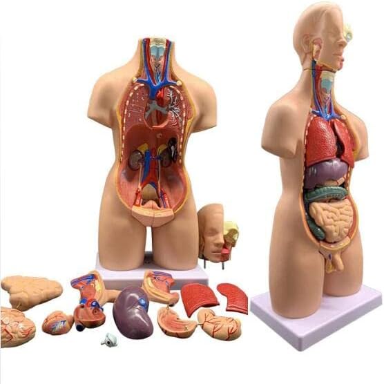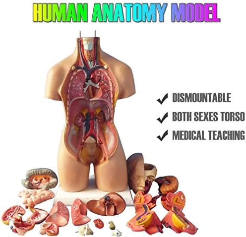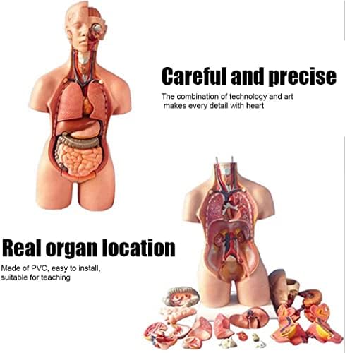 【Modello del corpo umano】 Questo modello anatomico dettagliato mostra gli organi umani e contiene componenti smontati che forniscono un'esperienza di apprendimento pratico dell'anatomia umana. 【Costruzione in PVC】Realizzato in PVC di alta qualità, questo modello presenta parti essenziali come busto, copertura del seno femminile, palloncino oculare, cervello, nervo spinale, polmoni, cuore, fegato, reni, stomaco e intestino, tutti posizionati saldamente su una robusta base di plastica. Illustrazione della cavità toracica: la sezione anteriore del modello mostra la struttura dei polmoni all'interno della cavità toracica. Il cuore viene sezionato anatomicamente per confrontare le somiglianze e le differenze tra le strutture atrioventricolari sinistra e destra. 【Dettagli del cranio e dei muscoli】 La metà destra del modello presenta una visione chiara della struttura del cranio, insieme ai muscoli masseteri e venosi. È incluso anche un display a palloncino oculare, che fornisce una vista sagittale. Approfondimenti sulla cavità cranica - Il modello include una rappresentazione dettagliata della cavità cranica contenente un emicefalo, migliorando l'esperienza educativa raffigurando gli intricati dettagli dell'anatomia umana.