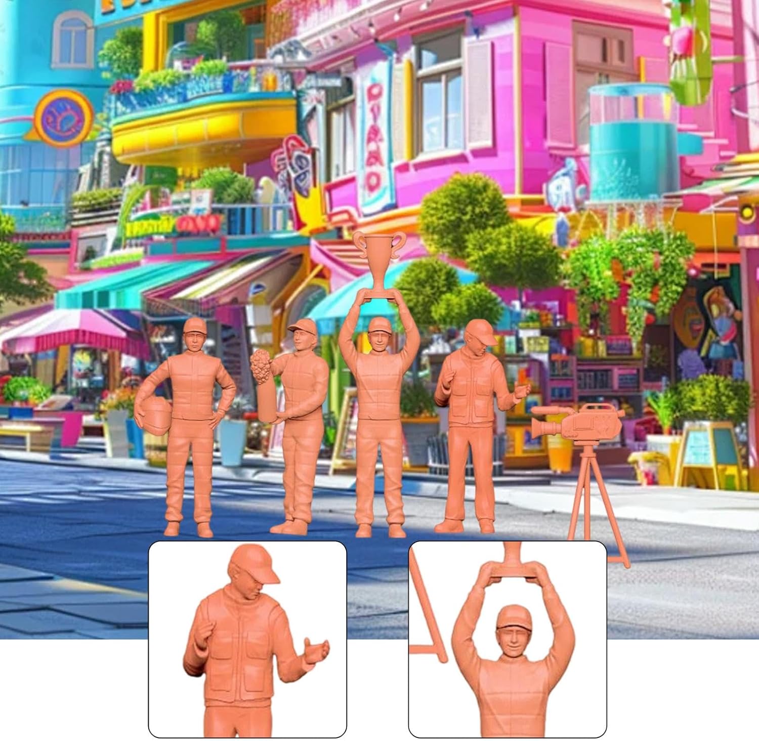 【Qualità Premium】: Realizzate in materiale di resina di qualità con meticolosa attenzione ai dettagli, queste statuette in miniatura sono perfette sia per essere esposte che per essere collezionate 【Opzioni di visualizzazione versatili】: le figure del e del fotografo con modalità fotocamera sono ideali per vetrine di modelli o come decorazioni uniche per la scrivania dell'ufficio, aggiungendo carattere a qualsiasi spazio 【Alta simulazione】: ogni aspetto è accuratamente realizzato per offrire una realistica, rendendo questo set di da corsa ideale per appassionati di modelli che cercano autenticità 【Esperienza di scena realistica】: include tre personaggi di da corsa, un personaggio di fotografo e un modello di macchina fotografica, che ti consentono di costruire micro paesaggi dinamici che aumentano il divertimento e il valore collezionabile 【 Artigianato】: tecniche di alta precisione, i personaggi in miniatura presentano finiture estremamente dettagliate e realistiche per un'impressionante esposizione in miniatura