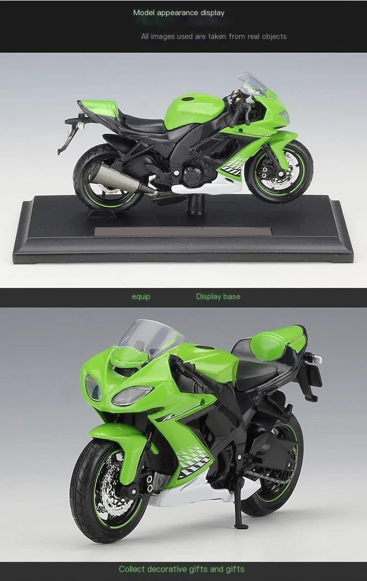 Modello di moto per per Ninja ZX10R ZX 10 R Modelli di moto giocattolo in scala 1:18, parti squisite progettate secondo le proporzioni originali dell'auto, cruscotto, pedali del freno e dell'acceleratore sono progettati per essere realistici e precisi. la modalità di simulazione della motocicletta è piena di personalità, così bella. Le ruote anteriori e il manubrio possono oscillare da un lato all'altro. Porta attività, sospensione posteriore a molla, ruota libera La finitura liscia e senza sbavature e la vernice lucida e uniforme dimostrano una maestria artigianale eccezionale. Questo modello incarna lo stile di una motocicletta, soddisfacendo l'amore degli appassionati per i modelli nostalgici.