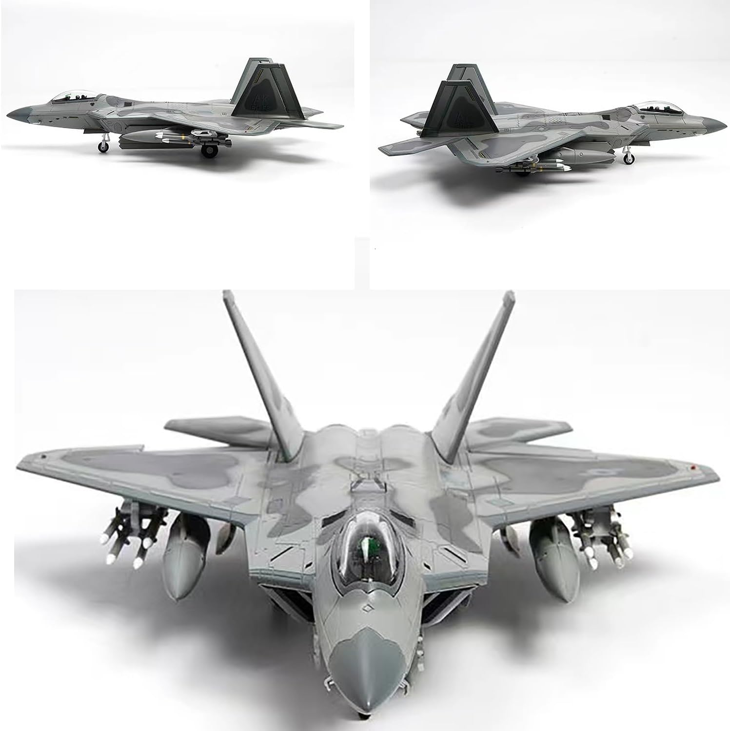 Introduzione: L'F-22 "Raptor" è il primo aereo da caccia di quinta generazione in servizio al mondo. La combinazione di furtività, agilità, precisione e consapevolezza della situazione del Raptor, combinata con le sue capacità di combattimento aria-aria e aria-terra, lo rendono l'aereo da combattimento più completo al mondo. Modello ad alta simulazione: la porta può essere aperta, la coda può essere ruotata e il caricatore può essere aperto con un pulsante. Modello di aereo professionale altamente simulato, ripristina il più possibile i vari dettagli della fusoliera. Materiale: la custodia e la staffa del caccia sono realizzate in lega pressofusa di alta qualità. Altri accessori (pneumatici) e ABS. Qualità eccellente: apertura dello stampo accurata + verniciatura di prima classe + raffinata nel rigoroso rispetto dei dettagli e delle proporzioni, adatta for l'esposizione e la raccolta da parte degli amanti dei modelli. I migliori regali di compleanno, Natale e tutte le festività. Confezione: l'F-22 in scala 1/72 misura 28x19x18 cm/11x7,5x7,1 pollici. Confezionato in una scatola modello ben protetta, include il modello dell'aereo F-22 e il supporto dell'aereo.