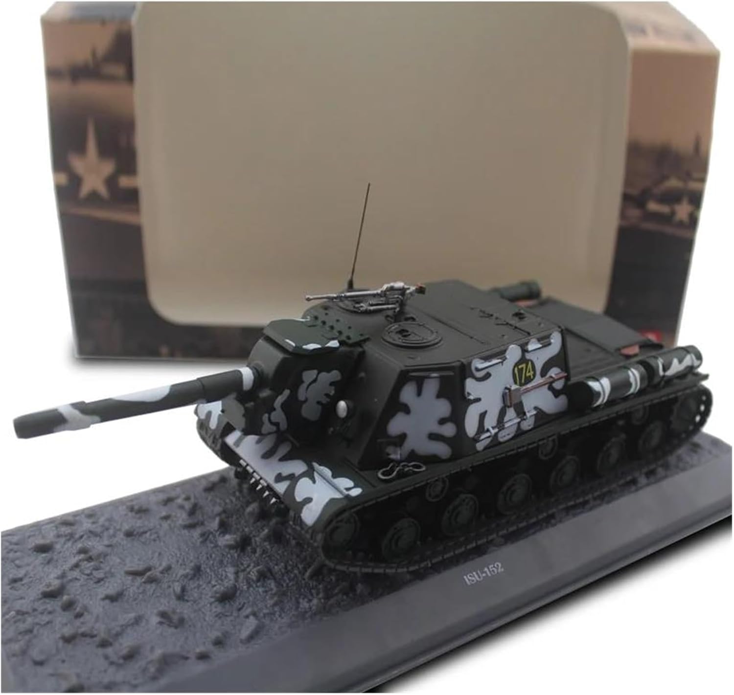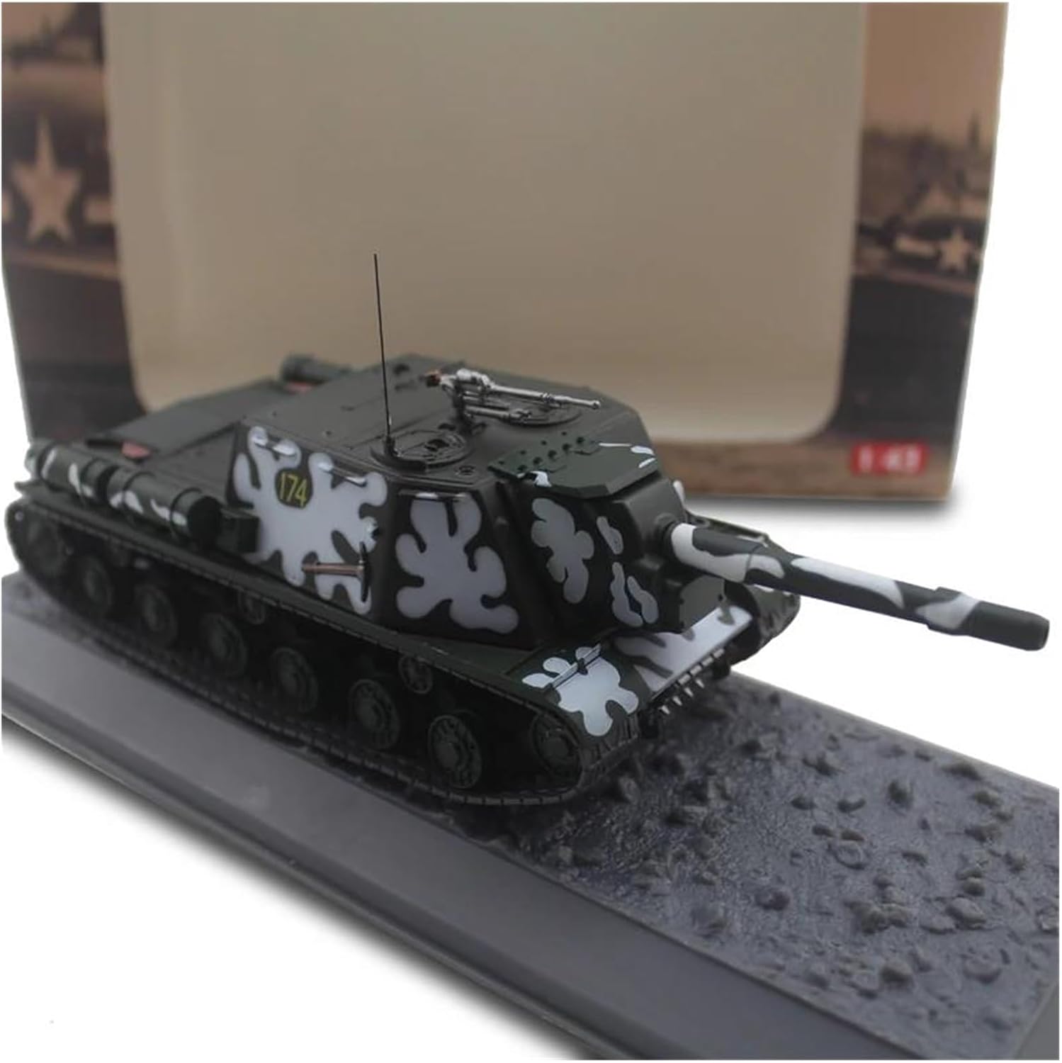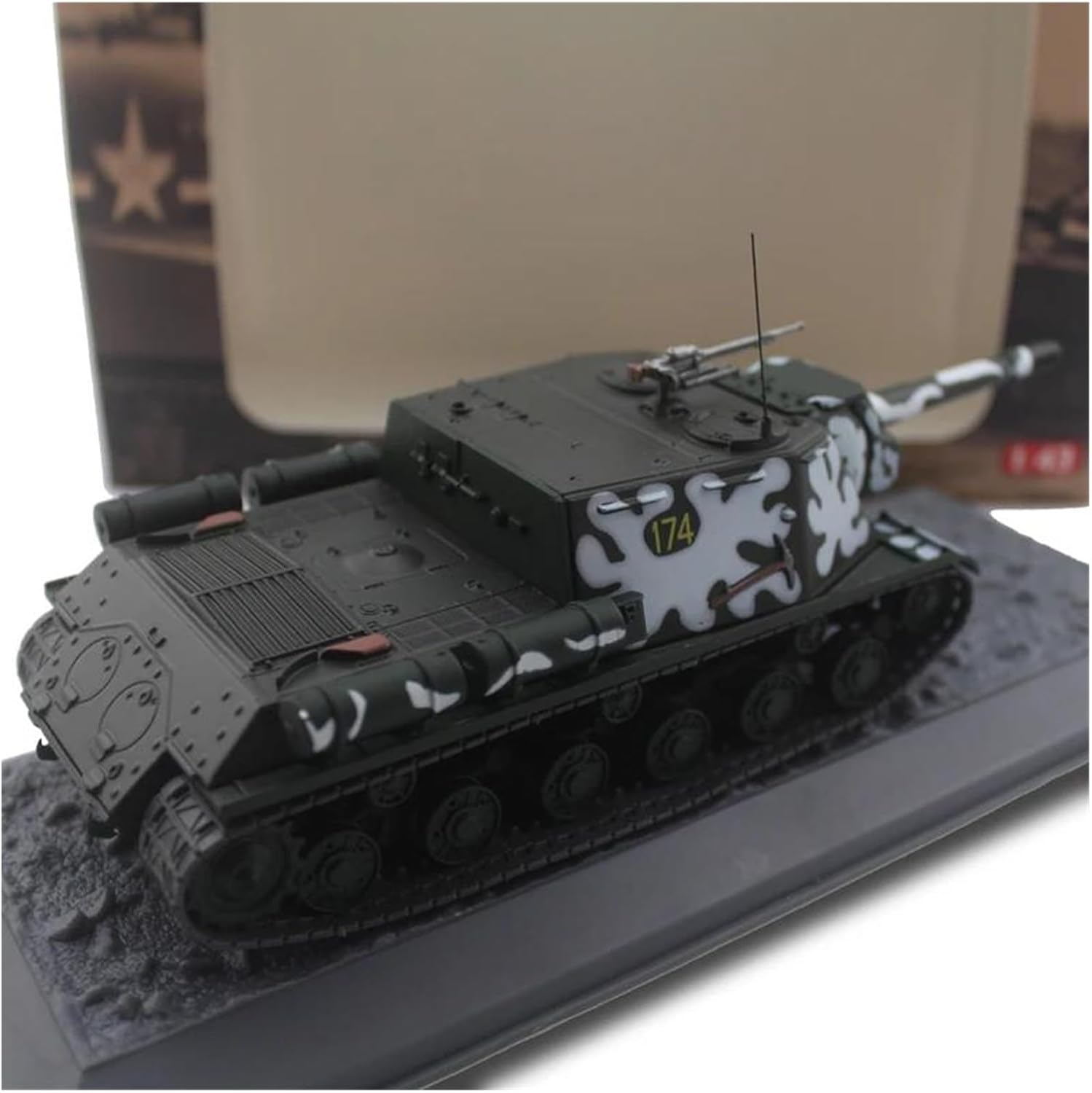 Kit modello di carro armato pesante sovietico ISU-152 RKKA in scala 1/43, dimensioni: 18,5*7*5,5 cm (circa). Corpo in metallo, alcune parti sono in plastica. L'ottima stabilità del materiale in lega rende il modello robusto e leggero. Facile da trasportare, puoi portarlo con te sempre e ovunque per giocare e divertirti. Utilizzando una tecnologia di cottura professionale e prendendo come riferimento la superficie verniciata del carro armato reale, si ottiene la riproduzione definitiva. Quando il modello è esposto, cattura immediatamente l'attenzione con la sua texture realistica. Abbiamo una varietà di negozio di modelli di auto sarà aggiornato di volta in volta sugli scaffali del prodotto, gli attuali modelli di carri armati principali, veicoli militari, modelli di rally da corsa, auto classiche classiche e altri materiali e dimensioni diverse di stili di veicoli, in grado di soddisfare le vostre varie esigenze e hobby. Se avete altri modelli preferiti, fatemi sapere le vostre esigenze, siamo disposti a fornirvi un servizio post-vendita di qualità e consigli sui prodotti.