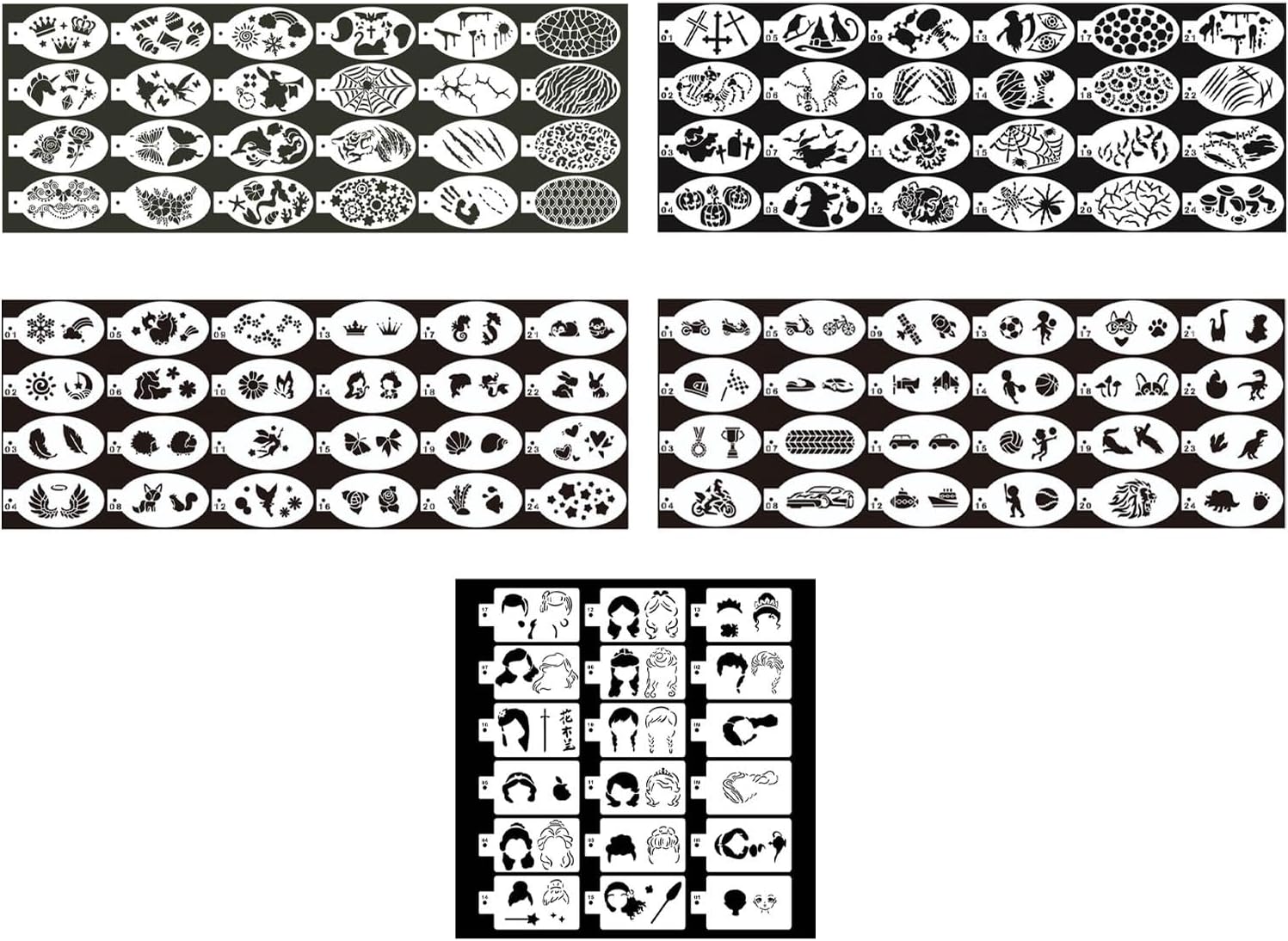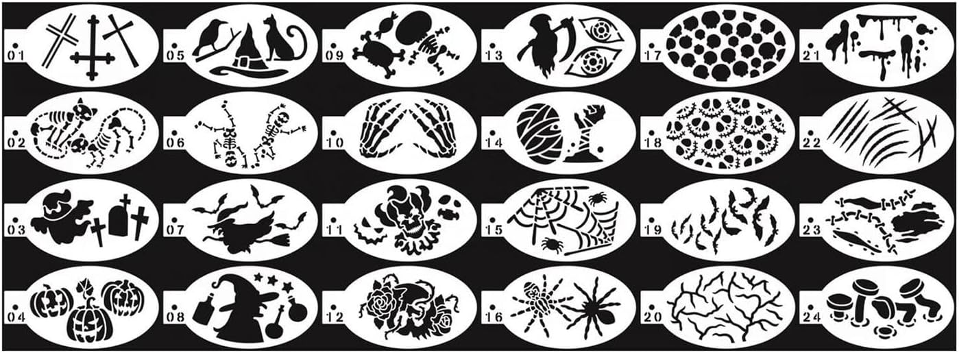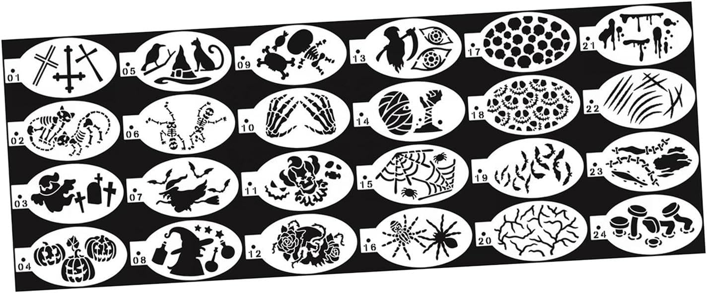 【Modelli multipli】: gli stencil per la pittura del viso che creano disegni di pittura del viso stupiti, vari stili e motivi. 【Creative Face Painting Art】: i modelli di pittura sono appositamente progettati per dipingere sul viso o su altre superfici, adatti a feste, mascherate e altri festival. 【Materiale Premium】: gli stencil sono realizzati in materiale di qualità, pieghevole ed elastico, la superficie e il bordo sono lisci, riutilizzabili e resistenti. 【Dimensioni appropriate】: per bambini e adulti, per tracciare su parti diverse, non troppo troppo piccole, convenienti per il funzionamento. 【Lavabile】: facile da pulire, utilizzare solo per pulire facilmente gli stampini.
