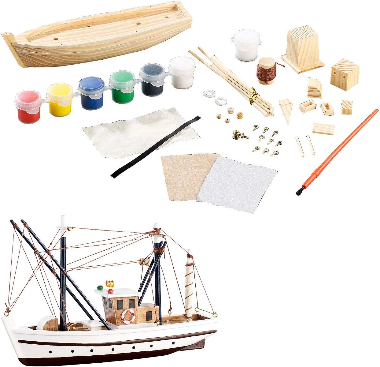 Dettagli curati e dettagliati • Con veri materiali naturali • Da incastrare e dipingere Kit taglierino da pesca da 40 pezzi da incastrare • Per il giusto strato di vernice: vernice e pennello sono inclusi! • Dimensioni (modello finito): 200 x 50 x 120 mm Ottimi materiali naturali: vero legno, sartiame in filato • Età consigliata: dagli 8 anni Carta vetrata per preparare le superfici • Per un divertimento duraturo puoi anche incollare insieme il modello Taglierina da pesca con carta vetrata, pennello, vernice e istruzioni in tedesco. Kit barca per bambini - Rilevante o adatto anche per: Costruisci tu stesso vecchi modelli, costruisci te stesso, giocattoli, kit, artigianato, puzzle, artigianato, 3D