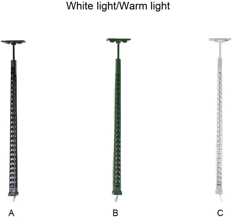 Materiale durevole: Realizzato in ABS di alta qualità e materiale metallico per un uso durevole e pratico Design speciale: Questi lampioni sono adatti per tensione di alimentazione 3 V/12 V, si prega di non utilizzare direttamente su 16 V per non danneggiare il LED Funzione utile: Perfetto per la decorazione di giardini in miniatura e ferrovie, layout di edifici o paesaggi di tavoli di sabbia Pregevole fattura: Completo di cavi e LED, può essere illuminato, la raffinata lavorazione lo fa sembrare un vero lampione stradale Strumento utile: La luce modello è molto utile per progettare e costruire modellini di treni, design di stazioni, modelli di progetti scolastici e case giocattolo in miniatura