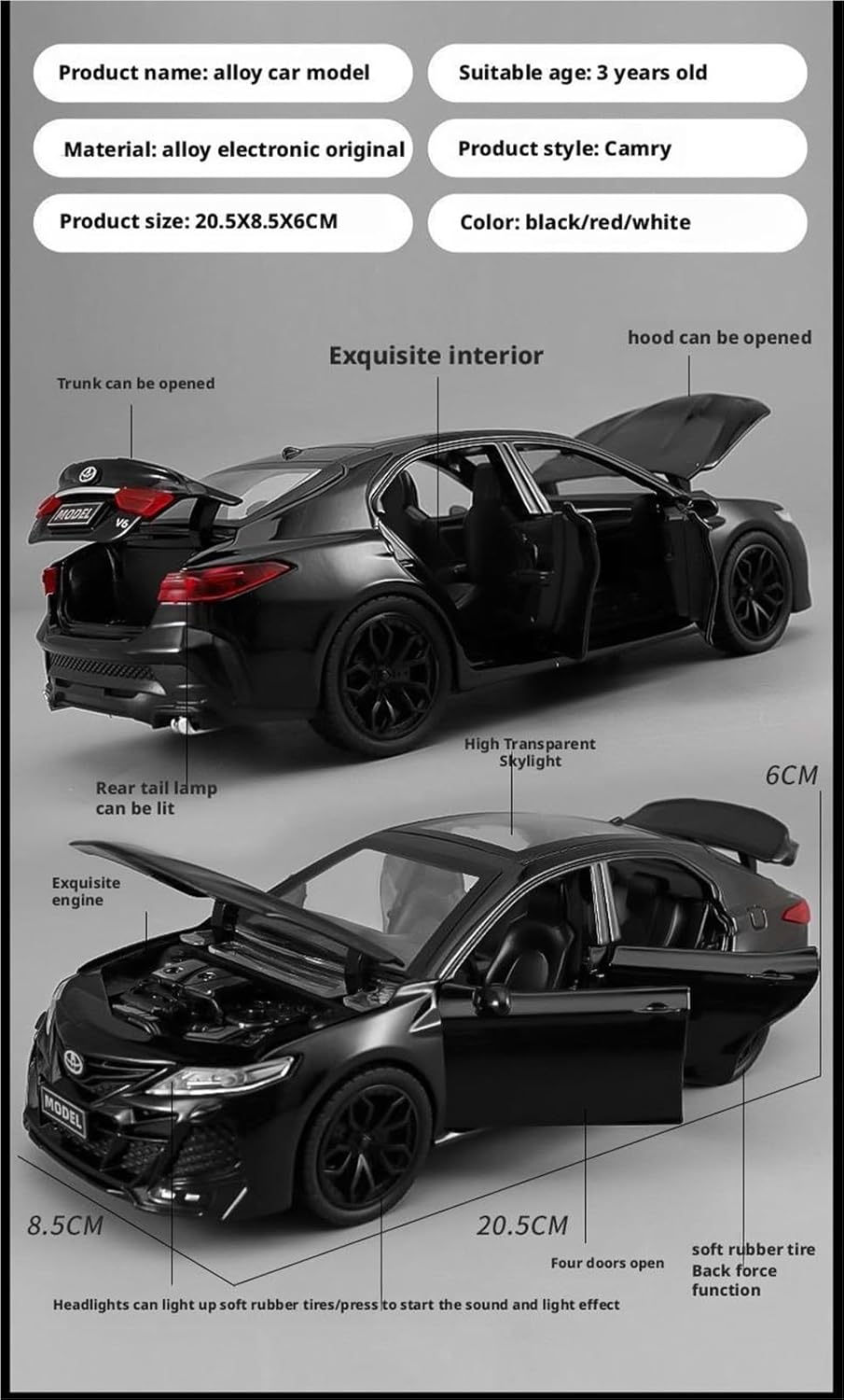 Professionale: Dalle auto d'epoca retrò ed eleganti, alle sportive ad alte prestazioni e ai potenti SUV fuoristrada, i nostri modelli accuratamente selezionati coprono diverse epoche e stili, offrendo una scelta più ampia a collezionisti e appassionati con gusti diversi, per soddisfare il vostro profondo amore per la cultura automobilistica. 7. Materiale: Quando tieni in mano questo modellino di auto pressofuso, la prima cosa che percepisci è la pesantezza del metallo. Il materiale in lega gli conferisce una consistenza solida e corposa, con angoli arrotondati e senza sbavature, rendendo ogni tocco rassicurante. Grazie ai dettagli in ABS, i finestrini, il fondo e le strutture dei sedili sono trasparenti e lisci, e non si deformano facilmente. Dettagli: L'interno del modellino pressofuso riproduce fedelmente la disposizione dell'abitacolo, con la scala del cruscotto, la forma dei sedili e il design dei comandi centrali tutti visibili. Alcuni modelli supportano anche l'apertura di portiere, cofani e altre parti for migliorare ulteriormente l'esperienza interattiva. Esposizione: questa replica di auto può essere un simbolo di obiettivi di crescita, ricordi di un viaggio o un sogno for il futuro. Mettila sulla scrivania, è un simbolo che ti motiva a mantenere la tua intenzione originale; mettila in vetrina, è una storia da collezione iniziata da te. Regalare questo modellino di auto significa regalare la tua comprensione dei dettagli, della qualità e delle emozioni. Attenzione al cliente: ogni acquisto per noi è importante. Il nostro staff, cordiale e competente, è sempre pronto a guidarti nella scelta del modello ideale, sia che tu sia un appassionato alle prime armi che un collezionista esperto. Vogliamo che ogni cliente si senta supportato e soddisfatto.