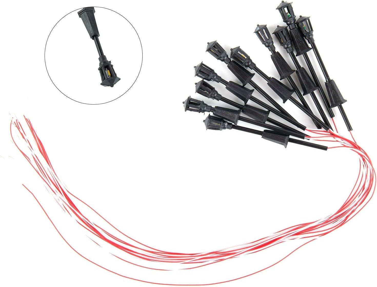 Scala: 1:100 * Materiale: plastica ABS * Voltaggio: 6 V/3 V * Quantità: 10 pezzi per confezione * Applicazioni: accessori per la costruzione di modellini architettonici di tavoli in sabbia, decorazione del cortile, paesaggio, tempo libero e intrattenimento, modelli di scena, decorazione di micro paesaggi con muschio