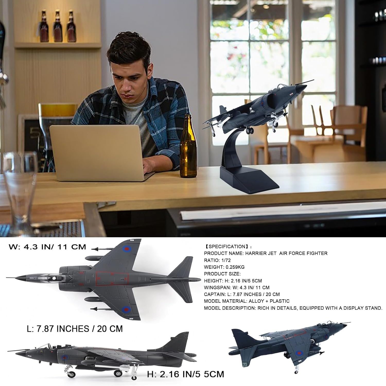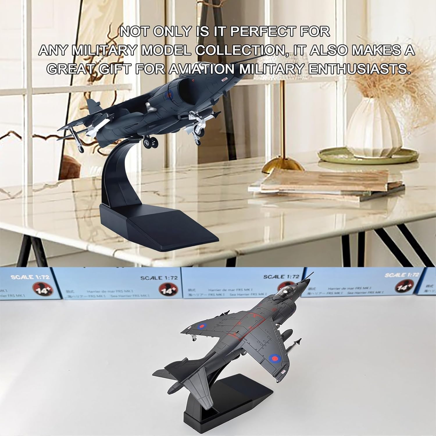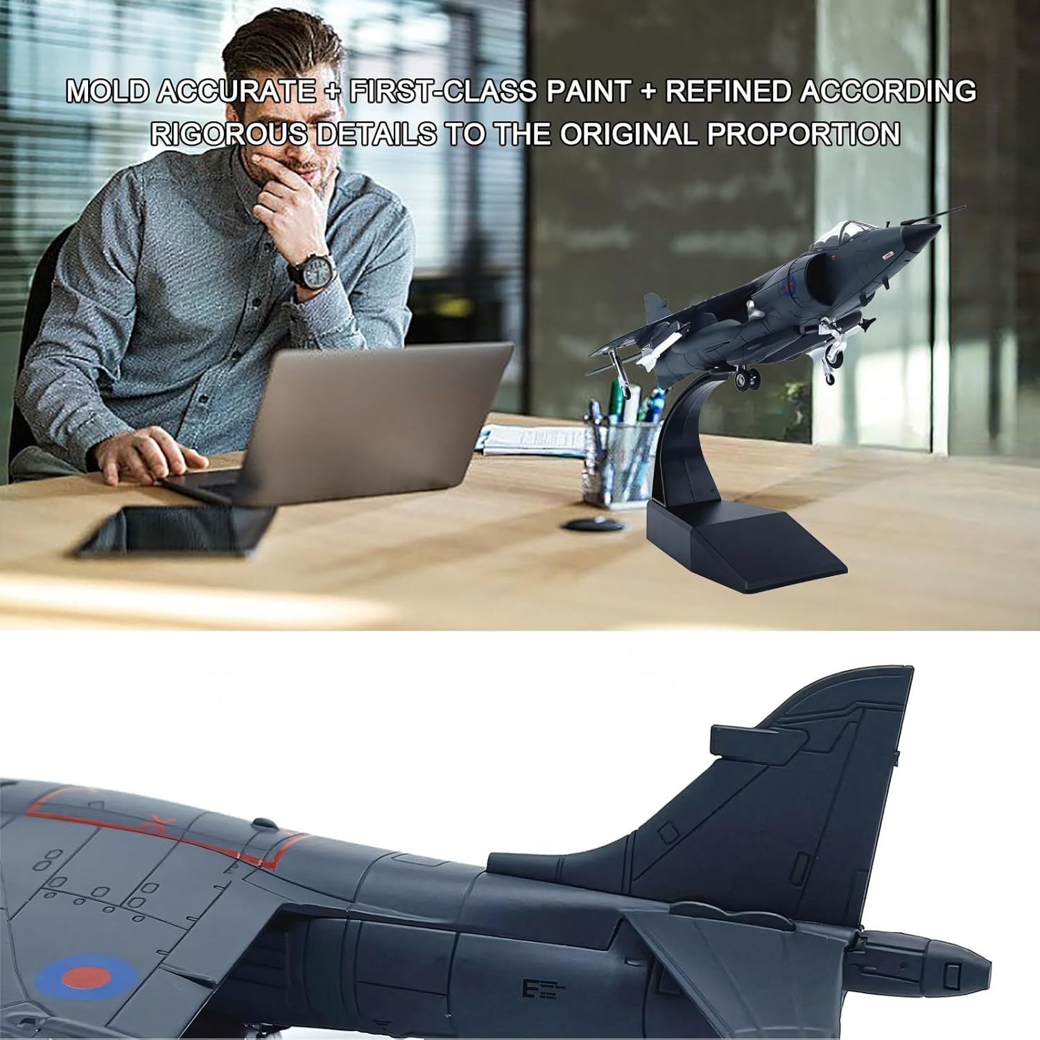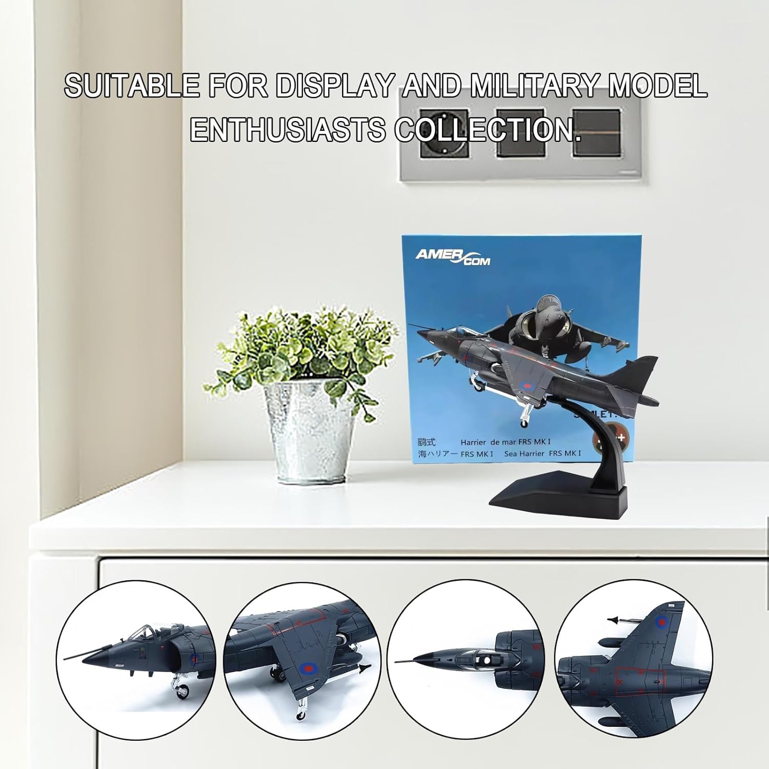 【Replica autentica con lavorazione artigianale di alta qualità】: il modello in scala 1:72, progettato con precisione, riproduce l'iconico design a decollo verticale dell'Harrier AV-8B britannico, con linee di pannelli strutturali, flap mobili e decalcomanie di livello militare for un'esposizione di qualità museale. 【Assemblaggio a scatto senza colla】: le parti preverniciate con dettagli nitidi in stampa a tampone garantiscono un assemblaggio senza sforzo, perfetto for gli appassionati che cercano una costruzione senza frustrazioni, preservando al contempo la precisione intricata della cabina di pilotaggio e del vano armi. 【Supporto espositivo robusto interamente in metallo】; il corpo in lega di zinco resistente abbinato a un supporto acrilico regolabile consente pose dinamiche (in volo o in atterraggio), mettendo in mostra l'elegante silhouette del jet da qualsiasi angolazione. 【Resistenza allo sbiadimento del rivestimento smaltato ad alta temperatura】: la finitura verniciata a spruzzo elettrostatico offre una superficie lucida e durevole che resiste ai graffi e all'ingiallimento, garantendo decenni di brillantezza e luminosità come nuove. 【Dettagli storici immersivi】: dai contrassegni degli squadroni della RAF agli scarichi dei motori usurati, ogni logo stampato e rivetto del pannello rispecchia l'estetica da combattimento dell'Harrier, rendendolo attraente for i collezionisti di storia militare.
