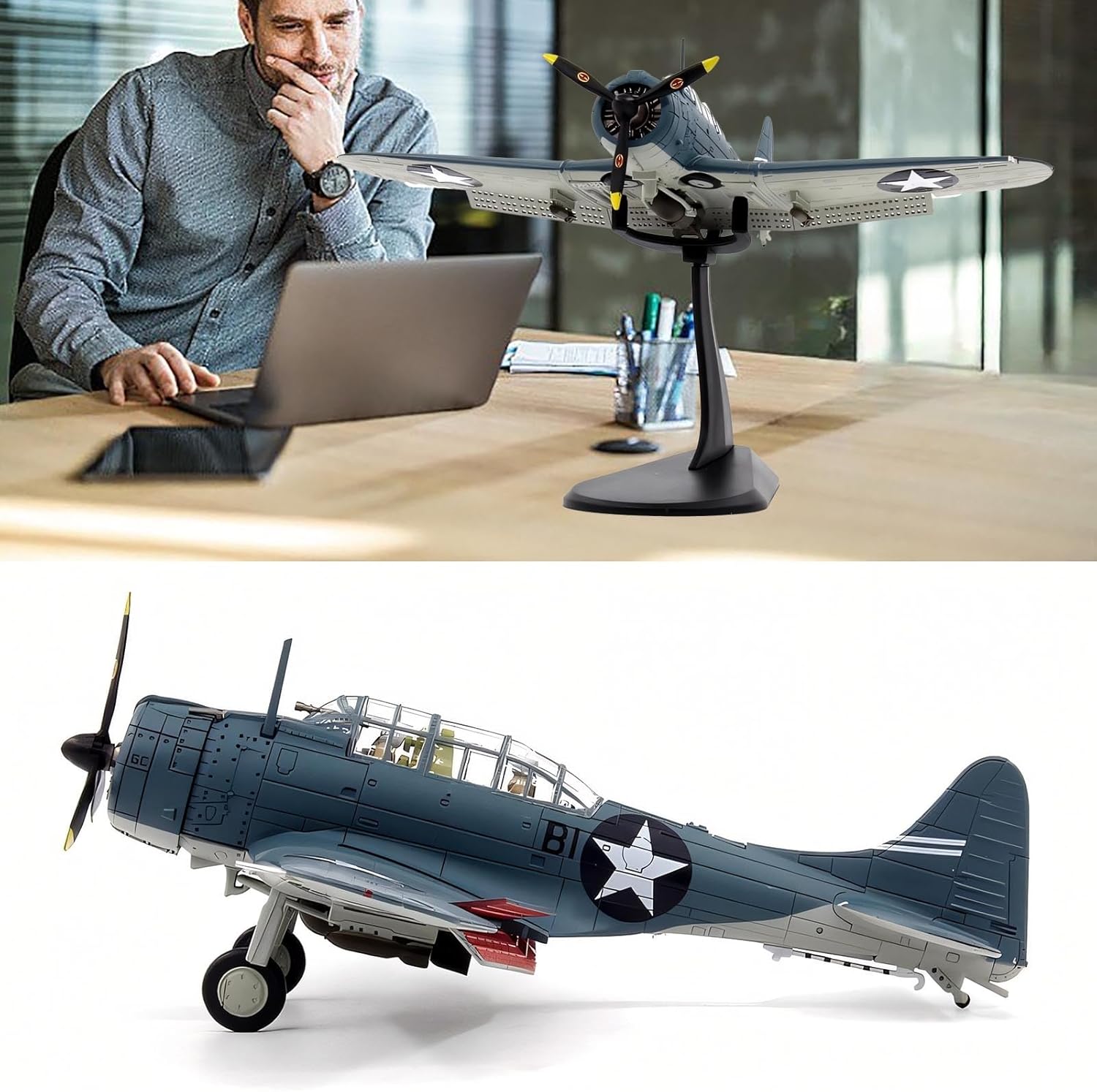 【Restauro realistico】 - L'SBD Dauntless era un bombardiere in picchiata ampiamente utilizzato dalla Marina degli Stati Uniti durante la Battaglia delle Midway, rinomato for il suo ruolo cruciale nella Battaglia delle Midway. Il nostro modello in scala 1/72 dell'SBD cattura meticolosamente l'essenza di questo aereo storico. Basato sulla variante SBD-2, nota for la sua robustezza e le sue precise capacità di bombardamento, immergiti nella ricca storia del mondo ammirando questa rappresentazione finemente realizzata di una vera leggenda dell'aviazione. 【Material Craft】: Presenta verniciatura a spruzzo elettrostatica e rivestimento in smalto cotto for una finitura lucida e resistente allo sbiadimento con lucentezza metallica stratificata, che replica l'iconica estetica stealth del modello SBD-3 Dive Bomber. Forgiato in lega di alta qualità con eliche e pneumatici in plastica, questo modello viene sottoposto a una rigorosa calibrazione CNC for garantire la fedeltà in scala 1:72. 【Scala e dettagli】 - Il kit di modellismo aereo in metallo pressofuso è in scala 1/72, con dimensioni complessive di 5,51 x 6,92 x 2,44 pollici, peso di 0,3 libbre, e i dettagli e la maestria delle sue prestazioni offrono un effetto visivo realistico. Inoltre, l'ala dell'elica di questo modello di aereo è girevole, il che gli conferisce un senso di dinamismo. C'è anche un mock-up del pilota nella cabina di pilotaggio. Concentrati su ogni piccolo segno del vero aereo for soddisfare la tua ricerca di dettagli! 【Artigianato di qualità da collezione】: Combina fusione di metallo, finiture in smalto cotto e dettagli dipinti a mano for un pezzo di qualità museale con un elevato valore di rivendita e un fascino senza tempo. Un tributo eccezionale for veterani, storici dell'aviazione o appassionati, confezionato in una scatola di alta qualità for regali, commemorazioni di servizio o arricchimenti di collezioni. 【Regalo militare perfetto】: Che si tratti di decorare il tuo ufficio, valorizzare l'esposizione di un museo dell'aviazione o alimentare la passione di un hobbista, questo modello fonde forma e funzionalità. Il suo robusto telaio in lega e i dettagli di qualità museale, dai motivi dei rivetti alle intricate decorazioni del vano armi, lo rendono un oggetto di conversazione e un investimento senza tempo. Come strumento educativo for gli appassionati di aerospaziale e come straordinario elemento d'arredo, incarna la potenza e l'innovazione dell'aviazione militare moderna.