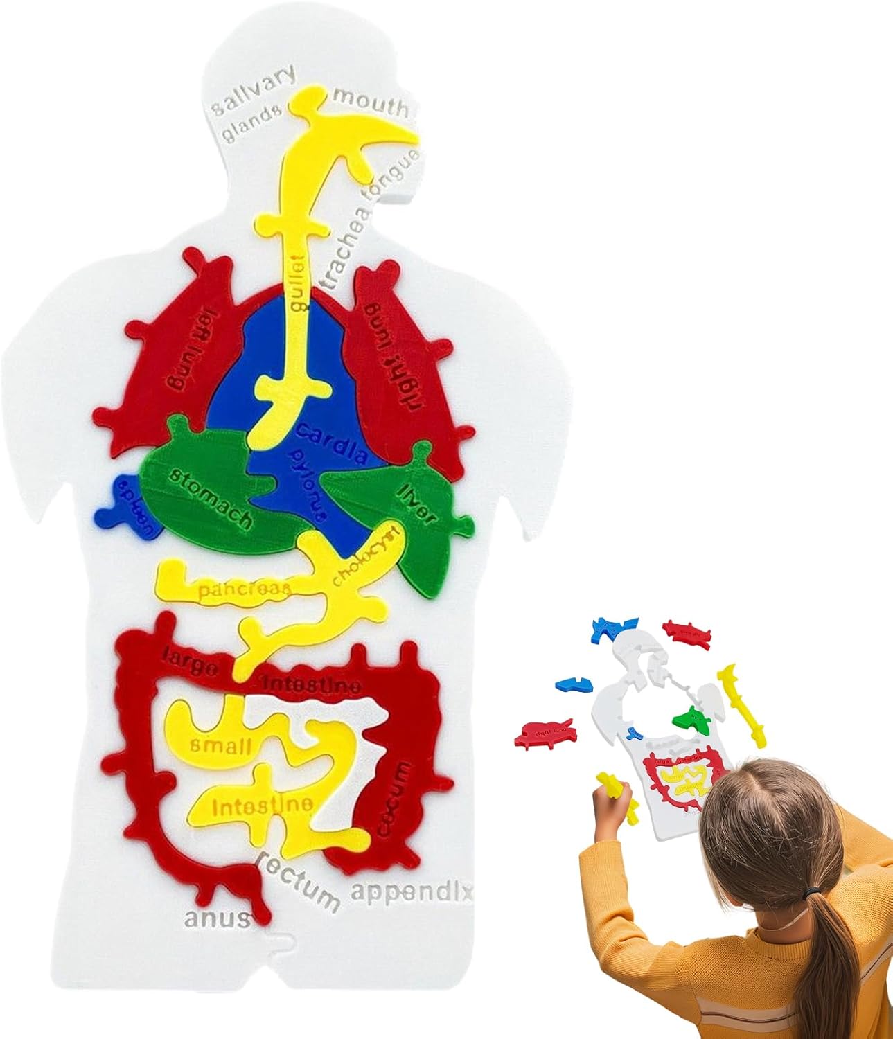 Processo digestivo visualizzato: la chiara struttura per tracciare il percorso alimentare rafforza la memoria visiva e mostra le funzioni degli organi proporzionalmente corrette nell'interazione naturale Modello educativo coinvolgente: grazie alla rappresentazione concentrata del sistema digestivo, questo puzzle migliora la comprensione e l'entusiasmo per la biologia. Ideale per l'apprendimento domestico e progetti scolastici per promuovere l'interesse scientifico con esperienza pratica. Supporto dell'agilità mentale: le operazioni modulari di accoppiamento e gioco con orientamento preciso promuovono concentrazione, destrezza, immaginazione spaziale, pensiero logico e coordinazione occhio-mano attraverso l'assemblaggio interattivo di puzzle Accattivante strumento didattico: aiuta genitori e insegnanti a insegnare conoscenze anatomiche attraverso un design accattivante che combina elementi decorativi e pratici, come accessorio da scrivania crea un'atmosfera di apprendimento motivante Costruzione solida e affidabile: realizzato con materiali durevoli con bordi arrotondati lucidi, resistenti ai danni e sicuro con un uso frequente del modello anatomico