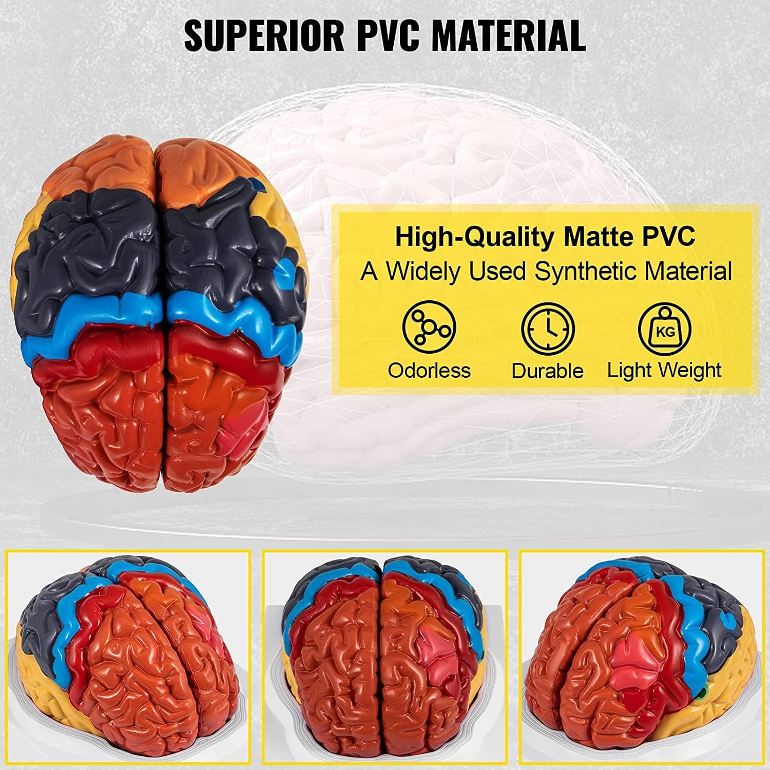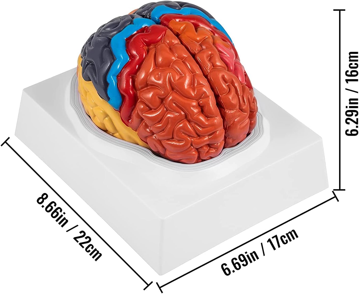 Struttura staccabile: il modello di anatomia cerebrale umana può essere diviso in due parti, che indicano ed etichettano le aree funzionali del cervello con colori diversi.Il modello consente agli utenti di osservare la struttura interna del cervello da tutti gli angoli per imparare meglio la scienza del cervello umano. Simulazione umana precisa: il modello è stato progettato da esperti nella ricerca cerebrale per coincidere esattamente con la struttura di base del cervello umano e corrisponde alla dimensione reale del cervello umano.Pertanto, il modello cerebrale umano di dimensioni reali è un'opzione per lo studio dell'anatomia cerebrale. Ampie applicazioni: il modello anatomico del cervello umano è adatto all'istruzione primaria delle neuroscienze e dell'anatomia cerebrale.Può essere usato come strumento di formazione nell'anatomia cerebrale per coloro che vogliono imparare e comprendere l'anatomia del cervello umano. Materiale in PVC di prima qualità: il modello cerebrale umano è realizzato con materiale in PVC di alta qualità, che dura abbastanza per un lungo periodo di servizio.Il modello è leggero, quindi l'utente può portarlo facilmente ovunque per studiarlo e presentarlo. Base di durabilità: il modello cerebrale umano è dotato di una base bianca.L'utente può posizionare il modello di assemblaggio sulla base per eseguire una spiegazione e una dimostrazione pubblica.La base svolge anche una funzione cruciale nello stoccaggio e nella protezione del modello cerebrale.