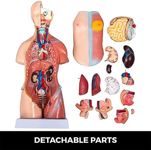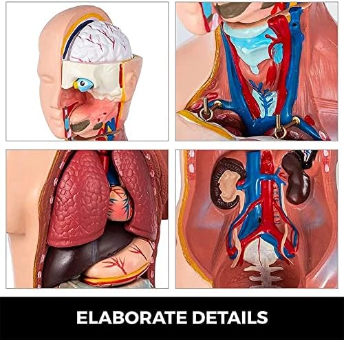 【Rappresentazione anatomica dettagliata】 Questo modello di torso umano mostra la posizione precisa degli organi interni e la loro struttura anatomica, con 23 parti individuali per l'assemblaggio, evidenziando importanti caratteristiche anatomiche. IDEALE PER L'ISTRUZIONE: Perfetto per le scuole generali e le istituzioni mediche, questo modello funge da efficace aiuto visivo per i corsi di fisiologia di base, soddisfacendo i diversi interessi nell'anatomia umana. 【Visualizzazione completa degli organi】 Il modello del torso enfatizza il posizionamento degli organi interni e si concentra su tre sistemi essenziali: respiratorio, digestivo e urinario, garantendo una comprensione approfondita di queste funzioni critiche. COSTRUZIONE DI ALTA QUALITÀ - Realizzato in PVC resistente, il modello presenta un collo discreto e include ganci e grilli per un facile smontaggio delle parti degli organi interni, il tutto montato saldamente su una robusta base in plastica.
