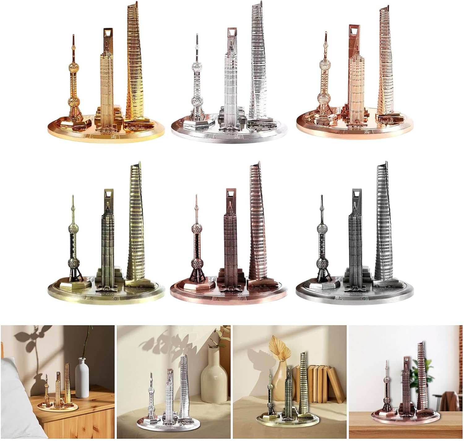 Con una galvanizzazione precisa per una maggiore durata e un'estetica mozzafiato, questo modello Shanghai Oriental Pearls Tower della Shanghai Building Collection è pensato per gli appassionati di architettura e gli amanti della decorazione vintage. Il modello presenta una superficie in leghe galvanizzate e presenta intricati dettagli dell'Oriental Pearls Tower e del Global Financial Center. È disponibile in tre dimensioni per la mostra. Per collezionisti, souvenir di viaggio unici e amanti della decorazione d'interni: questa architettura in miniatura aggiunge raffinatezza culturale a qualsiasi stanza. Presentalo elegantemente in ufficio, soggiorno o ingresso, inseriscilo perfettamente nella decorazione moderna o vintage e allo stesso tempo onorare il patrimonio architettonico di Shanghai. Con il suo elegante design ispirato agli elementi vintage, questo punto di riferimento Shanghai è un omaggio all'architettura globale e può essere utilizzato come regalo o per uso personale.