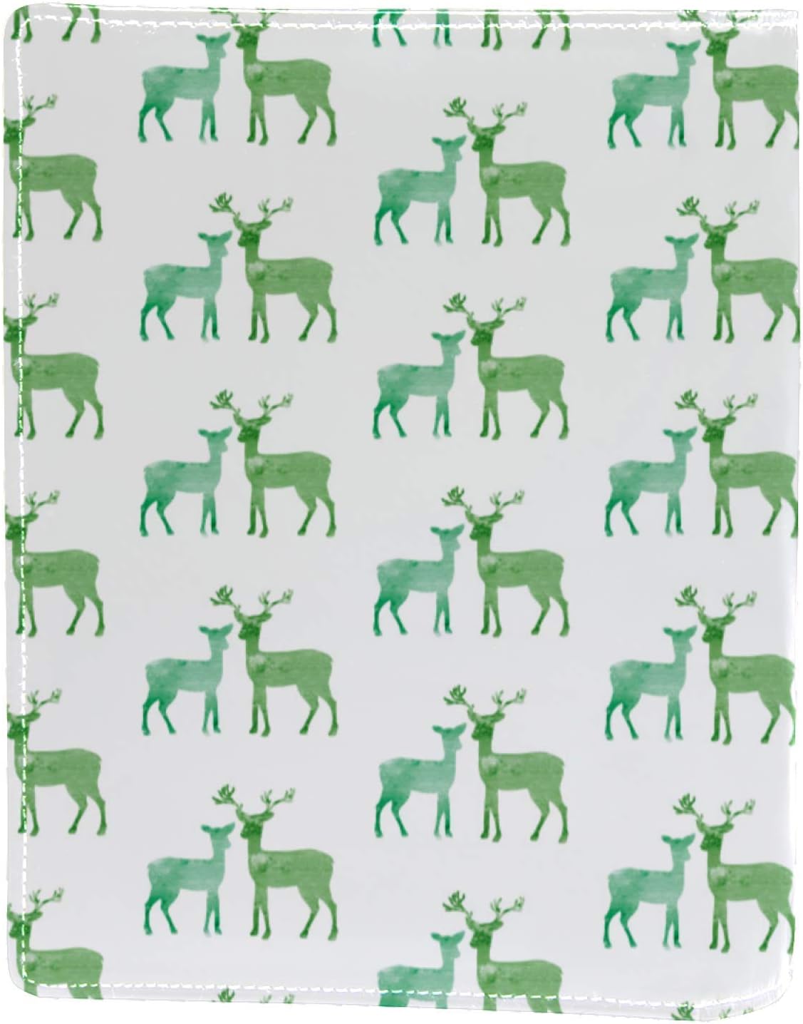 Modello con due cervi verdi, elastico, adatto alla maggior parte dei libri di testo con copertina rigida fino a 8,5 x 6,5 pollici, tessuto autoadesivo, protezione per libri scolastici, lavabile e riutilizzabile.