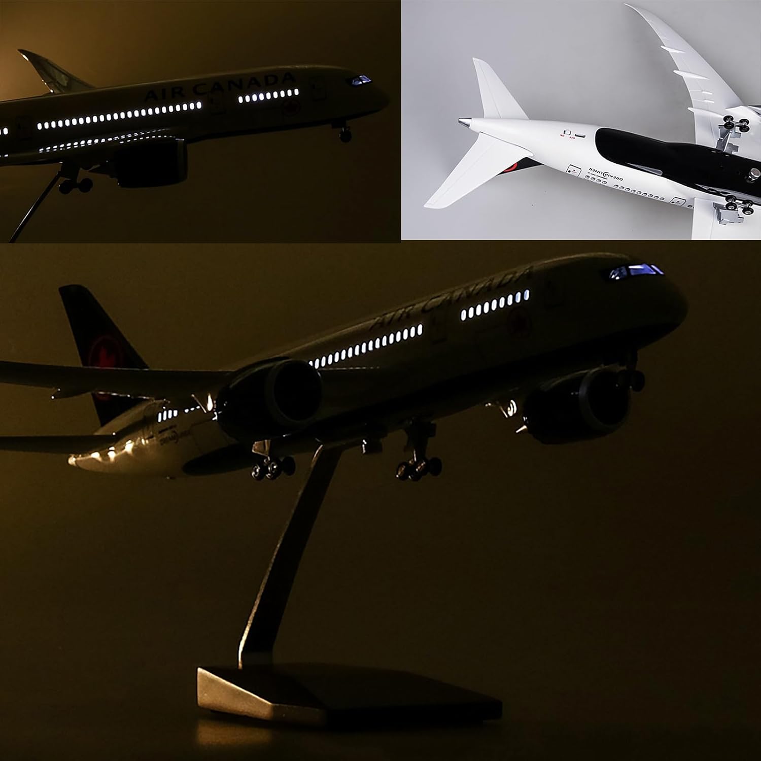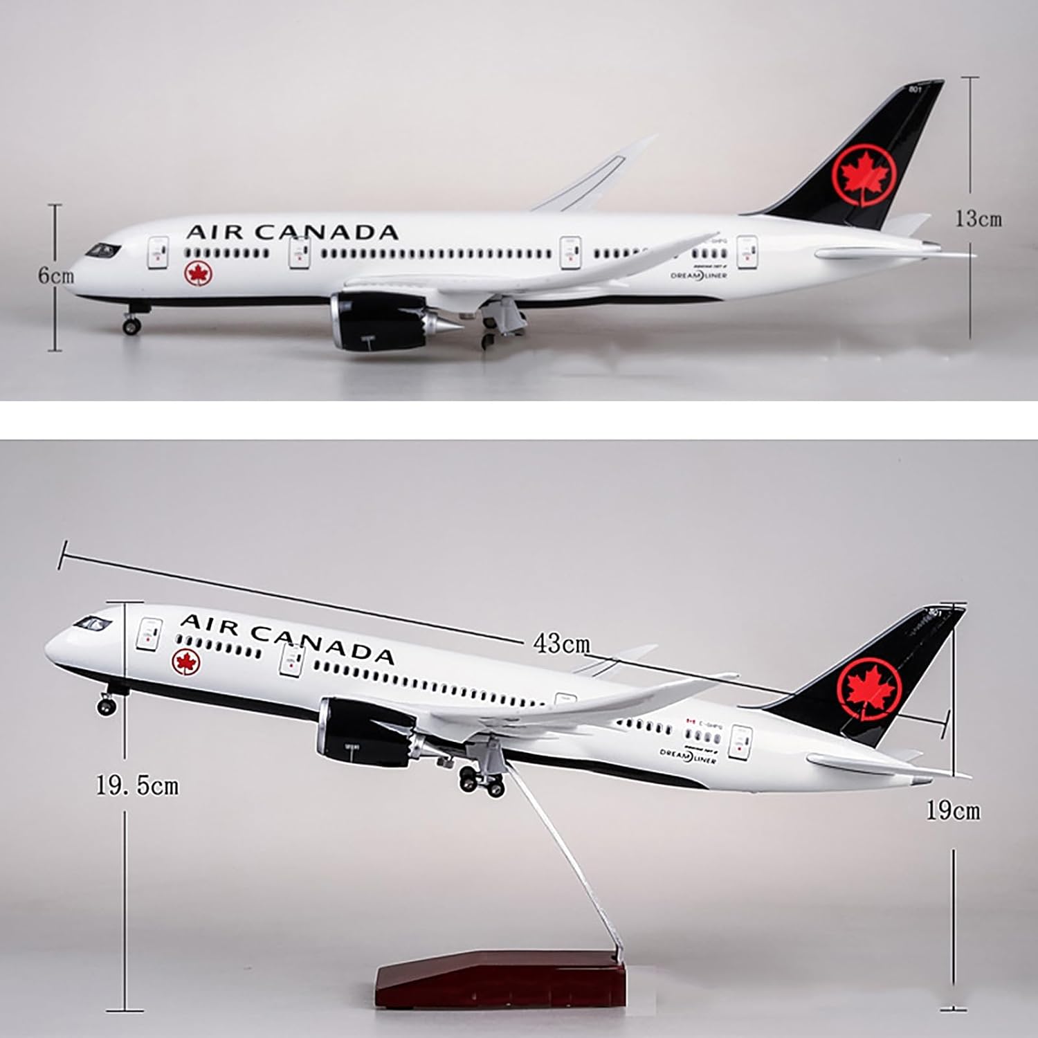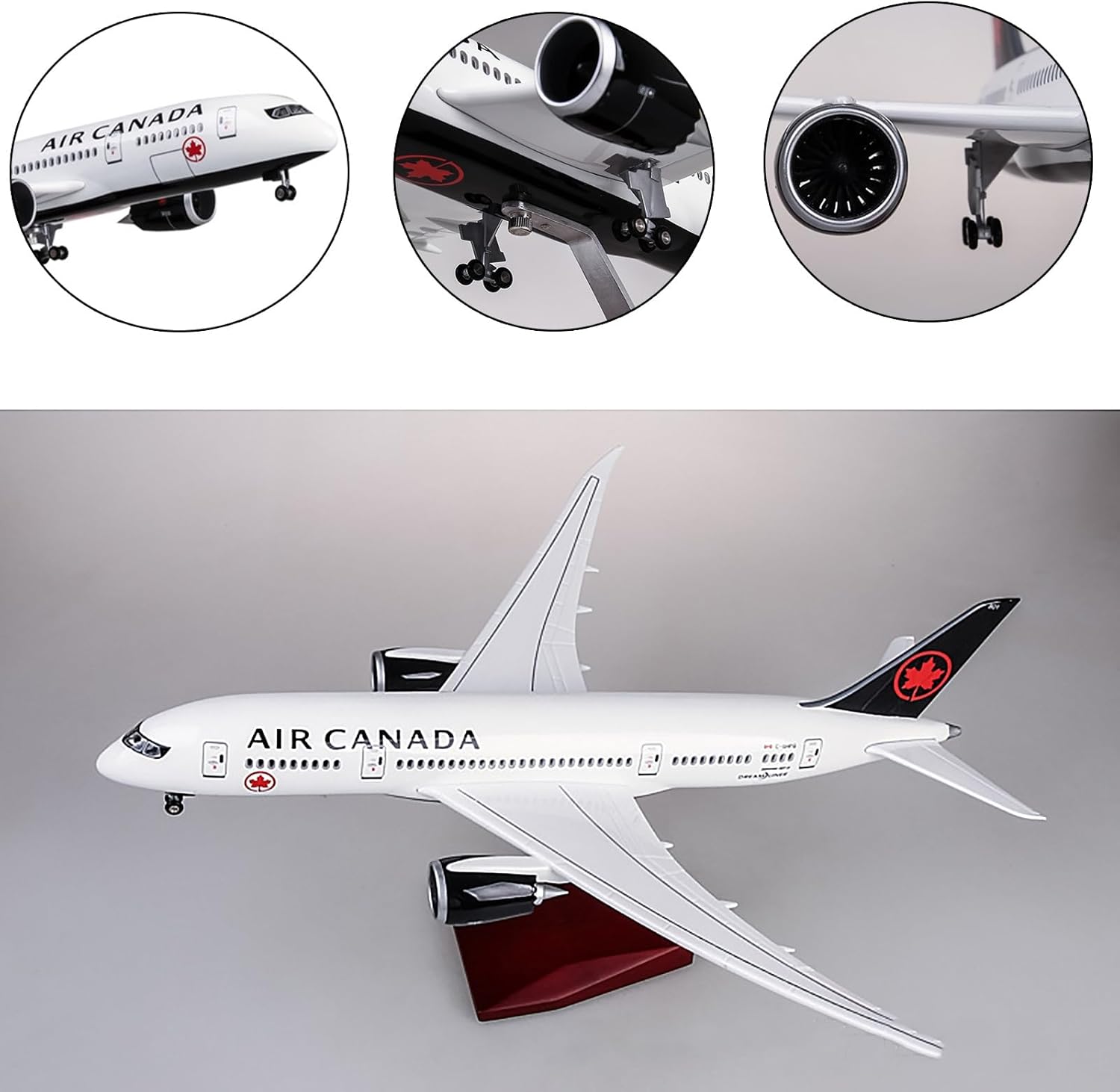 [Modello di simulazione LED di un aereo]: il modello di aereo finito del modello di aereo da trasporto Boeing B787 di Air Canada può essere veramente restaurato in scala 1/130, il grande modello di aereo con illuminazione LED interna a bordo, inclusa l'illuminazione della cabina di pilotaggio. È una decorazione domestica ideale e un regalo. [Materiale di alta qualità]: il materiale principale del corpo principale del modello di aeromobile è realizzato in lega e i pezzi di ricambio sono integrati con plastica tecnica ABS, che non solo garantisce la consistenza metallica del modello, ma anche i dettagli precisi. Effetto dipinto a mano, dettagli precisi ti fanno sentire delicato e goderti lo squisito modello di aeromobile. [Realizzato nelle stesse proporzioni di un vero aereo] - il modello dell'aereo è progettato e aperto secondo le proporzioni reali, con lavorazione raffinata ed effetto complessivo realistico. Modello dell'aereo, lunghezza (16,9 pollici), ali (18,5 pollici), altezza (8,6 pollici) Le luci a LED si illumineranno quando emetti una voce o lo tocchi, molto affascinante e si spegnerà automaticamente dopo 20 secondi, ricarica USB [Alta qualità e dettagli] - Molto dettagliato, dalle alette dei motori ai dettagli della vernice. Le pale principali della ventola ruotano e le ruote possono girare. Corpo in resina di alta qualità, base trapezoidale in legno e staffa in metallo, stabile e in grado di sostenere il velivolo molto bene. [Miglior regalo]: può essere utilizzato come decorazione for ufficio, casa o negozio, ed è un ottimo regalo aziendale, regalo di compleanno, regalo di festa. Confezione squisita. Lo confezioniamo in una scatola modello bella e ben protetta.