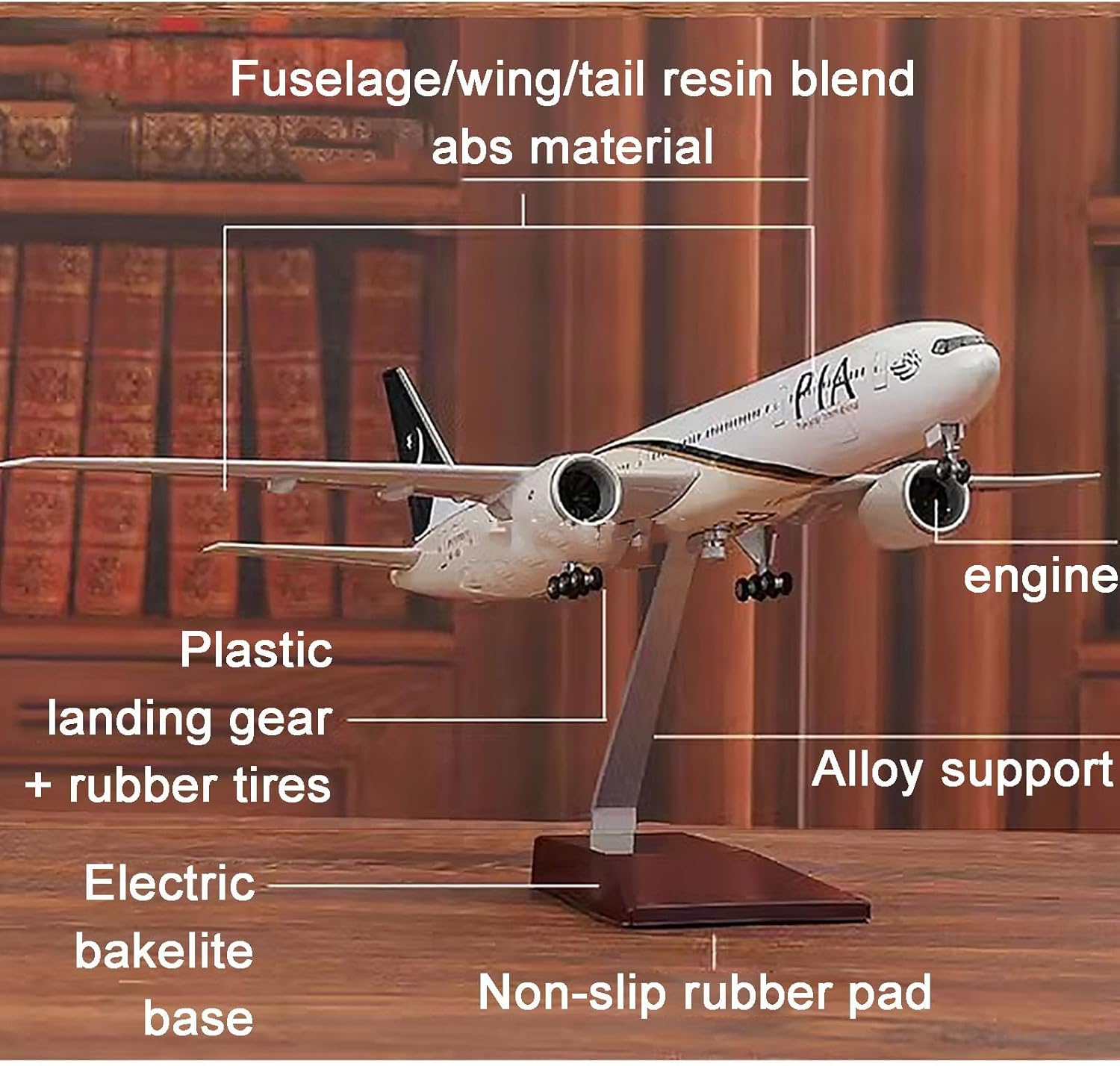 [Pakistan Airlines Boeing 777] - Due modelli, con e senza luci. I LED con luci si accendono quando si pronuncia la voce o si toccano, molto affascinanti, e si spengono automaticamente dopo 20 secondi, ricarica tramite USB. Quelli senza luci sono normali. [Modello di aereo della Pakistan Airlines] - Il modello è squisitamente realizzato con carrello di atterraggio staccabile, luci nella cabina di pilotaggio e nella cabina, motori scavati e pale del motore spazzate dal vento. Lunghezza di 16,9 pollici e larghezza di 18,5 pollici, grande, molto dettagliato e grande [Materiale] - Il materiale del modello è materiale composito aeronautico, il supporto è in alluminio e la base è in legno massello. Corpo in resina di alta qualità, base trapezoidale in legno e staffa in metallo, stabile e in grado di sostenere molto bene l'aereo. [Applicabile] - Può essere utilizzato come decorazione for ufficio, casa o negozio, ed è un ottimo regalo aziendale, regalo di compleanno, regalo di festival, questo aereo ha molti dettagli come quello reale [Modello di simulazione avanzata del Boeing 777] - Il modello adotta la tecnologia di ultima generazione ed è dotato di carrello di atterraggio rimovibile. Il finestrino di pilotaggio e quello dell'aereo sono realizzati con l'effetto vetro trasparente di un aereo reale e sono dotati di illuminazione a LED a comando vocale for un maggiore effetto visivo.