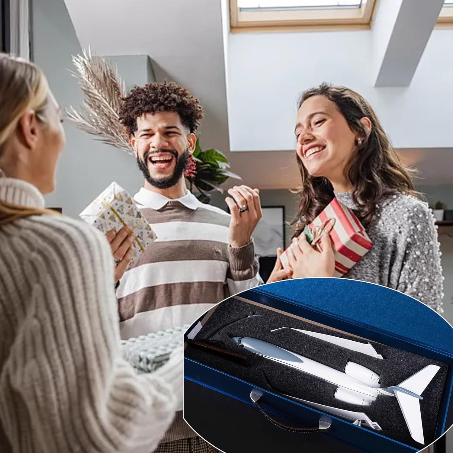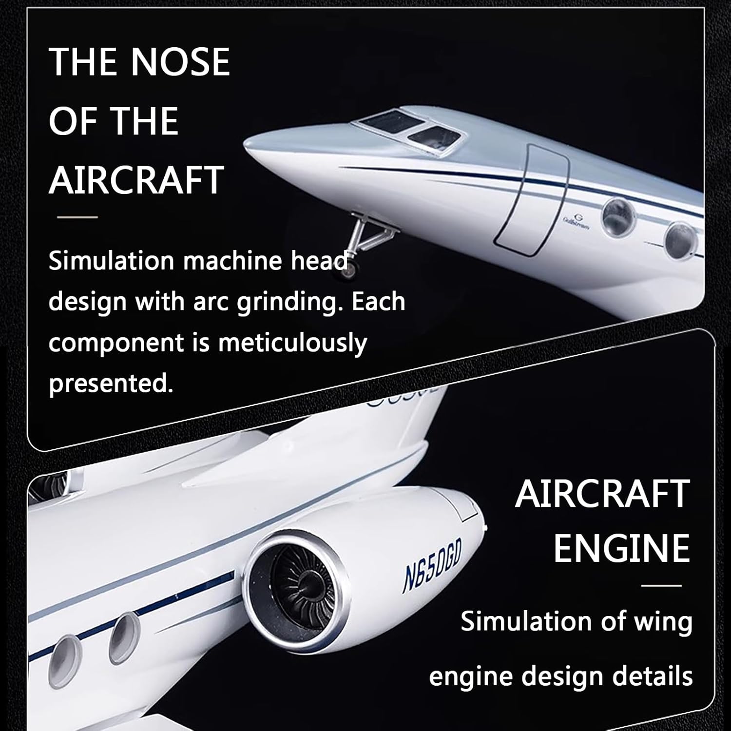 **Scala e dettagli**: vivi un'avventura aerea unica con il nostro modello Gulfstream G650ER meticolosamente realizzato, caratterizzato da un'impressionante scala 1:68 e da un design estremamente dettagliato che dà vita all'aereo. **Confezione regalo premium**: sorprendi una persona speciale con la nostra elegante confezione regalo blu, completa di cuscinetti neri, che la rendono la scelta perfetta come regalo o come prezioso oggetto da collezione. **Luci con controllo sonoro potenziate**: illumina le tue notti! La versione potenziata è dotata di luci attivate dal suono; basta battere le mani o toccare la fusoliera for illuminare la cabina, creando un'esperienza di volo notturno ipnotizzante. **Materiali di qualità**: Realizzato in resina ABS di alta qualità, questo modello leggero cattura l'essenza di un vero aereo, con curve morbide e dettagli autentici for un aspetto realistico. **Espositore versatile**: dotato di un espositore in legno massello, questo modello è perfetto for essere esposto su scrivanie o scaffali, portando l'emozione dell'aviazione nel tuo spazio abitativo con una lavorazione impeccabile.