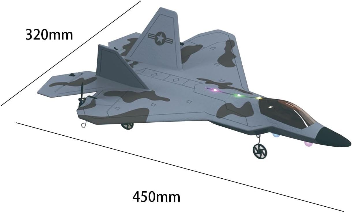 【Materiale】: realizzato in materiale PP di alta qualità, garantisce la durata e la stabilità del modello di aereo. 【Regalo per gli appassionati di aviazione】 Questo modello di aereo da caccia F22 è un ottimo regalo per gli appassionati di modelli di aviazione o può essere utilizzato come oggetto da collezione. 【Leggero】: il modello di aereo è progettato per ridurre la resistenza dell'aria e migliorare le prestazioni. Il suo design sottile si adatta al layout aerodinamico e garantisce stabilità, rendendolo ideale per i principianti che si esercitano. 【Modalità a 6 assi per stabilità】: la modalità a 6 assi migliora la stabilità. In varie situazioni, l'aereo manterrà un assetto stabile una volta utilizzato il joystick. È facile da usare e adatto ai piloti principianti. 【Design del proiettore a LED】: il modello di aereo da caccia F22 presenta un design innovativo con un nuovo tipo di proiettore a LED, che migliora la visibilità e il divertimento dei voli notturni.