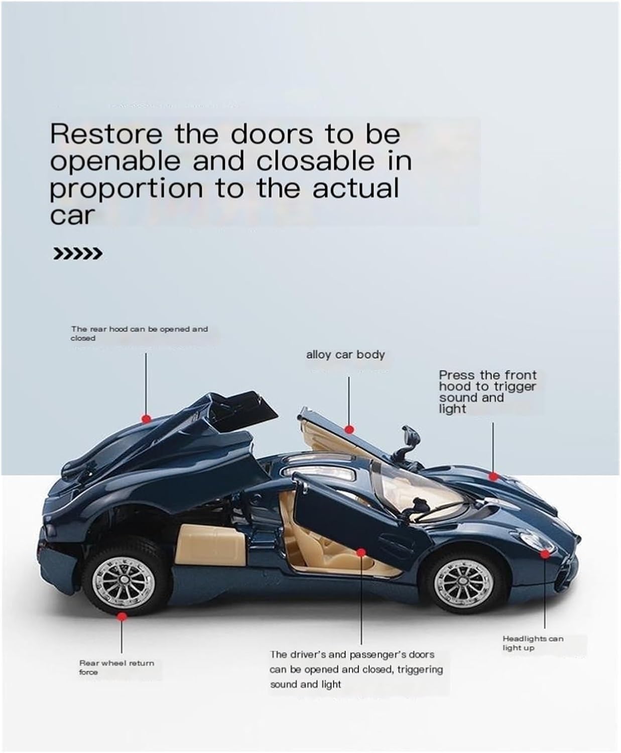 Artigianato raffinato: la superficie verniciata viene spruzzata e lucidata attraverso molteplici processi, ottenendo un colore pieno e uniforme e un tocco delicato. Per quanto riguarda gli interni, dettagli come il cruscotto e i sedili sono esaltati da una raffinata lavorazione e dall'assemblaggio di microparti, e persino la texture del volante è chiaramente visibile. Materiali: il modello di auto in lega simulata utilizza la pressofusione di lega for la sua struttura principale, integrata da ABS e gomma for i dettagli più fini. Il metallo non solo conferisce al modello la sua durevolezza, ma crea anche una sensazione di solidità e autenticità. La superficie è trattata con galvanica multistrato e verniciatura a spruzzo, ottenendo una finitura uniforme e ricca e colori vivaci. Aspetto: il modello è progettato nel rigoroso rispetto delle proporzioni dell'auto originale, con una forma complessiva precisa e linee morbide e piene. Componenti come la griglia anteriore, i fari, le ruote e il portellone posteriore sono stati meticolosamente restaurati for mostrare un design altamente realistico, aumentando l'interattività del modello e il suo valore collezionabile. Decorazione del sito: i modelli di auto in lega realistici hanno un elevato valore decorativo ed espositivo come decorazione del sito. Che siano collocati in vetrine, scrivanie, uffici o abbinati a scene in miniatura come scene di strada e garage, possono creare un effetto espositivo realistico e strutturato, valorizzando in modo completo lo stile e l'atmosfera artistica dello spazio. Servizio clienti: il nostro team di assistenza clienti post-vendita offre un servizio 24 ore su 24 via e-mail. Per qualsiasi domanda relativa alla manutenzione e all'esposizione del modello, vi contatteremo fino alla risoluzione del problema e ci impegniamo a offrirvi un'esperienza post-vendita attenta e professionale.