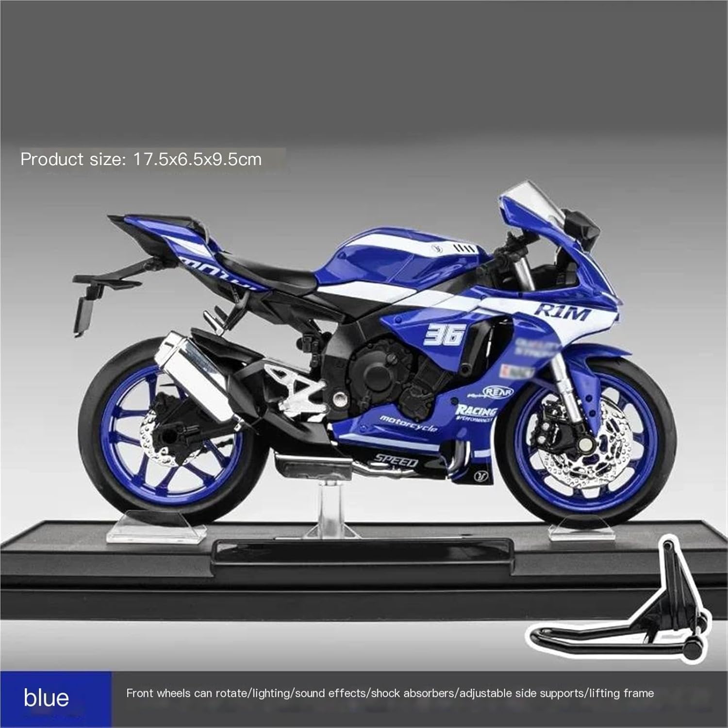 Modello di auto giocattolo moto in scala 1:12, il modello è durevole e duraturo. La costruzione robusta consente di esporlo con orgoglio anno dopo anno senza rompersi. Il modello di moto è un modello squisito realizzato in stretta conformità con la forma, la struttura, il colore, gli interni e altre proporzioni del veicolo originale. È un modello in miniatura del veicolo originale ed è progettato per riprodurre l'aspetto del veicolo originale. Modello di auto di simulazione Modello di moto per R1M La finitura liscia e senza sbavature e la vernice lucida e uniforme dimostrano una maestria artigianale eccezionale. Questo modello incarna lo stile di una motocicletta, soddisfacendo l'amore degli appassionati per i modelli nostalgici.