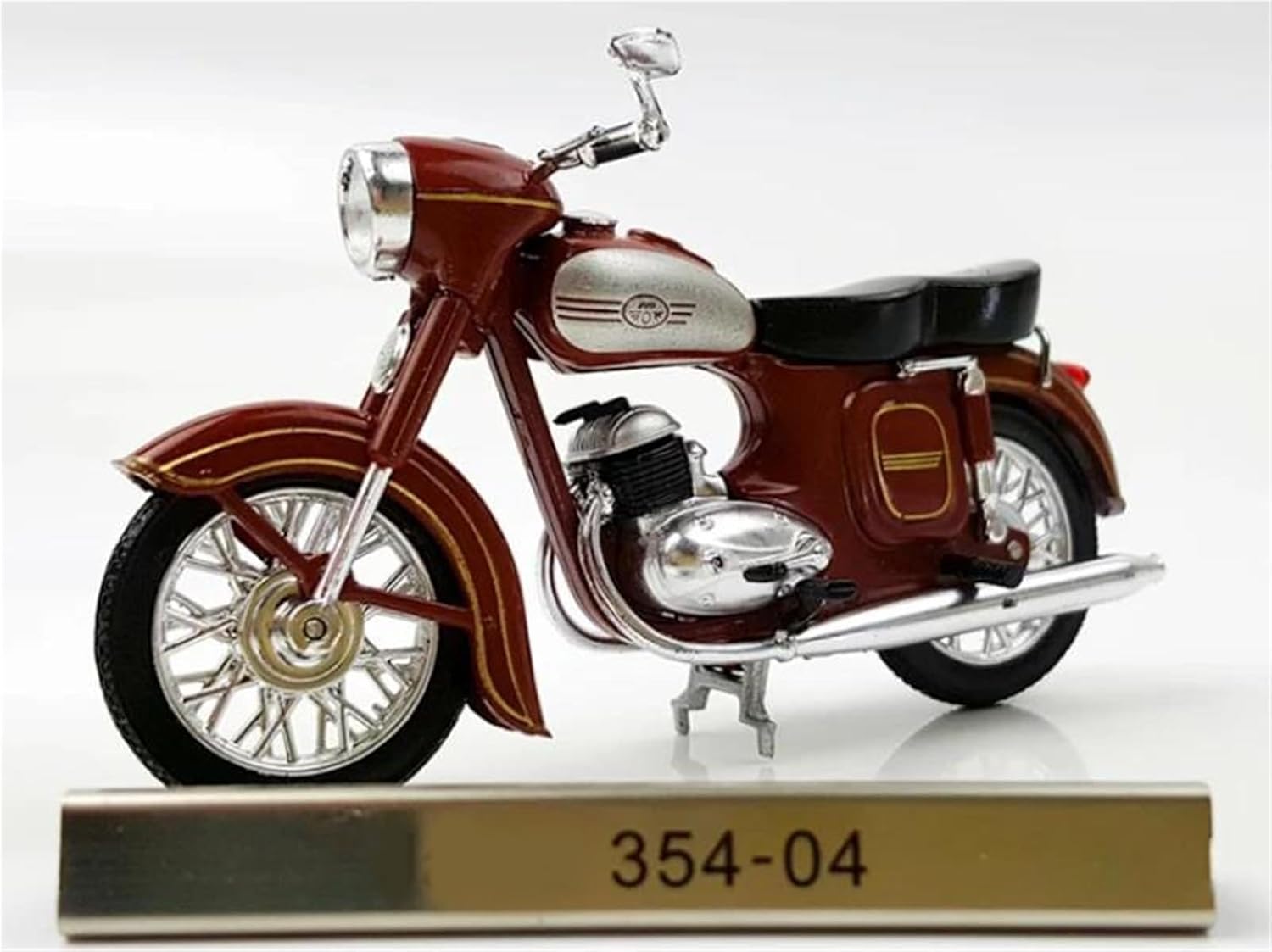 Modello di motociclette per JAWA 354-04, materiale del modello: lega Modello di auto giocattolo in scala 1:24, realizzato con precisione e attenzione a ogni dettaglio, questo modello di motocicletta offre una replica realistica dell'originale, perfetto per i giovani appassionati di motociclette che ammirano la cosa reale. Parti squisite progettate secondo le proporzioni dell'auto originale, il cruscotto, i pedali del freno e dell'acceleratore sono progettati per essere realistici e precisi. Modello di auto di simulazione La finitura liscia e senza sbavature e la vernice lucida e uniforme dimostrano una maestria artigianale eccezionale. Questo modello incarna lo stile di una motocicletta, soddisfacendo l'amore degli appassionati per i modelli nostalgici.