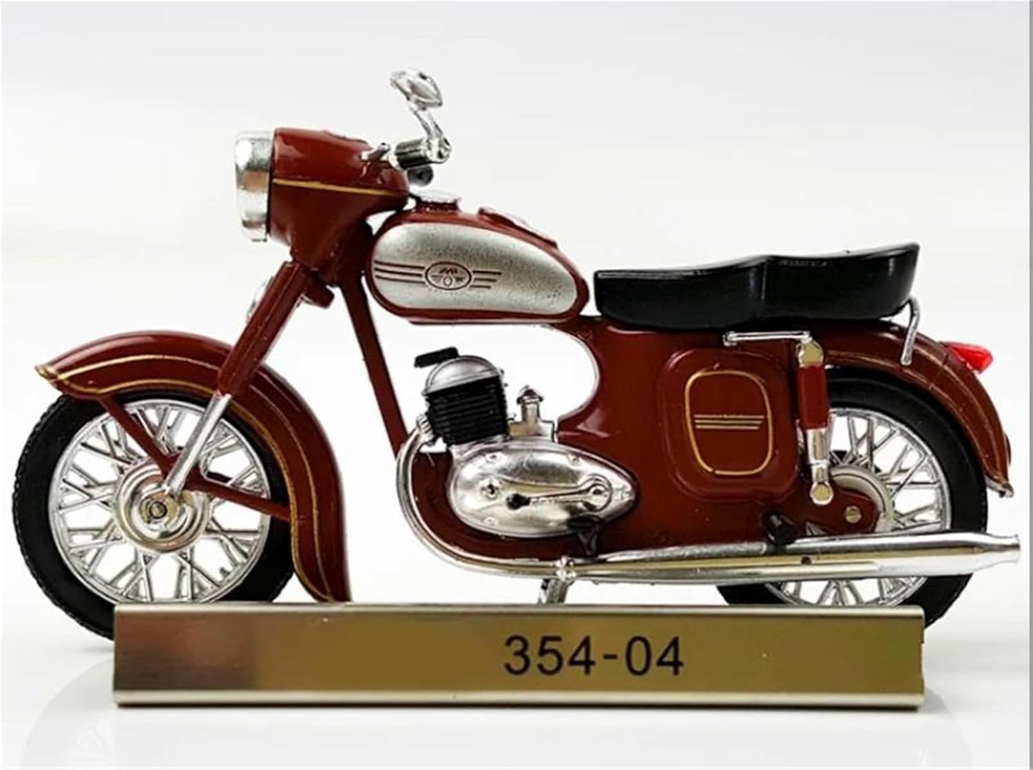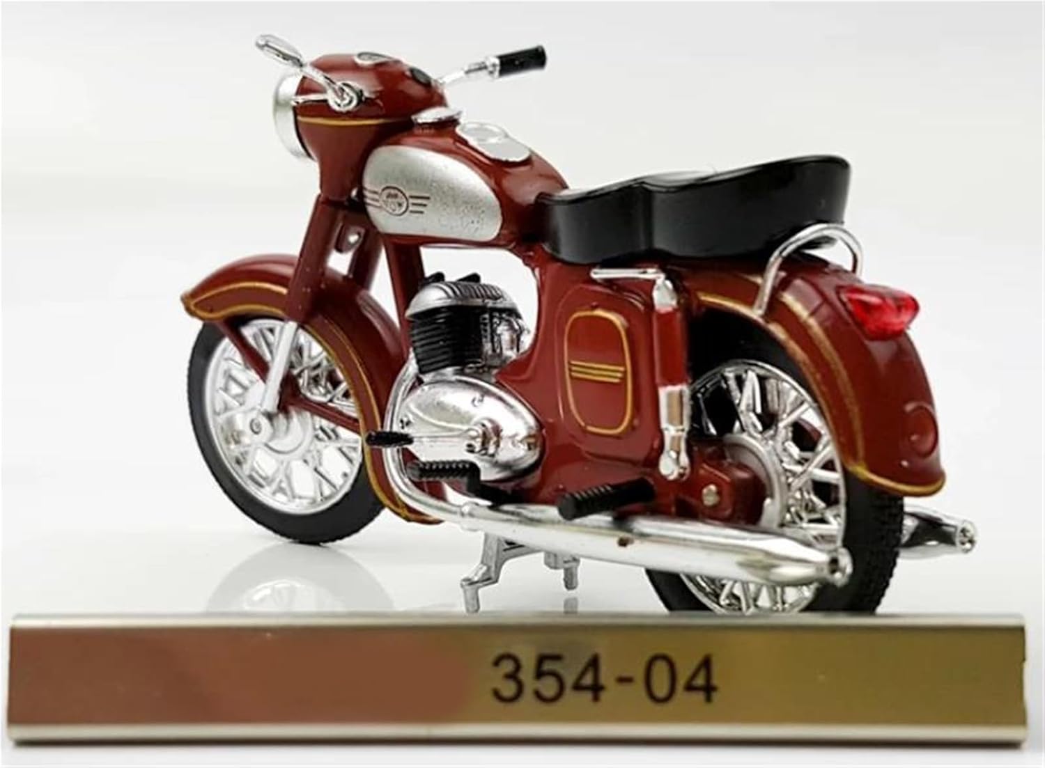 Modello di motociclette per JAWA 354-04, materiale del modello: lega Modello di auto giocattolo in scala 1:24, realizzato con precisione e attenzione a ogni dettaglio, questo modello di motocicletta offre una replica realistica dell'originale, perfetto per i giovani appassionati di motociclette che ammirano la cosa reale. Parti squisite progettate secondo le proporzioni dell'auto originale, il cruscotto, i pedali del freno e dell'acceleratore sono progettati per essere realistici e precisi. Modello di auto di simulazione Realizzato in resistente lega di zinco, è resistente alle cadute e all'usura, garantendo la durevolezza del modello e la sua lunga conservazione. La finitura della vernice è uniformemente liscia, con colori vivaci e duraturi che resistono allo sbiadimento e alle scheggiature, garantendo un aspetto costantemente brillante.