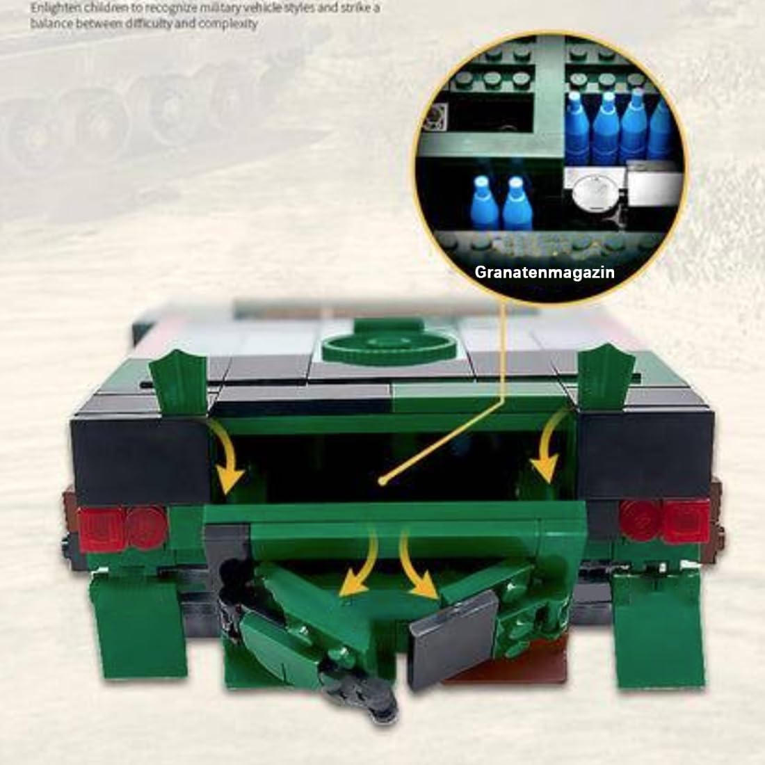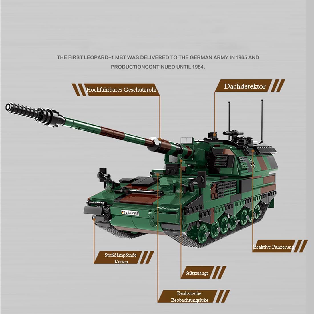 Elevata precisione di replica dell'equipaggiamento originale: il modello a blocchi ricrea fedelmente l'aspetto classico del PZH-2000, inclusa la canna dell'obice da 155 mm, la torretta rotante, il carrello di atterraggio cingolato e i dettagli dello scafo corazzato. Gli appassionati militari adoreranno il design autentico e proveranno l'emozione di collezionare. Dimensioni del prodotto: 13,2 × 42,5 × 17,5 cm. Esperienza di gioco dinamica: il tubo può essere regolato su e giù e la torre può essere ruotata di 360°. Alcune versioni sono dotate di portelli retrattili o di un meccanismo a vanga retrattile, che migliora l'interattività e la simulazione tattica. Esperienza di costruzione modulare: la costruzione modulare passo dopo passo (ad esempio assemblaggio indipendente di torretta, carrello di atterraggio e cabina di pilotaggio) offre un livello di difficoltà medio ed è adatta sia ai principianti che agli utenti avanzati. Compatibilità ed espandibilità: il modello è compatibile con i mattoncini standard di noti marchi di mattoncini e può essere liberamente combinato con altri mattoncini militari (come veicoli corazzati e personaggi) per creare le tue scene di campo di battaglia o espandere le funzionalità. Valore educativo: il manuale illustrato allegato spiega le prestazioni di combattimento e il contesto storico del PZH-2000. Scopri la moderna tecnologia dell'artiglieria attraverso la costruzione e stimola il tuo interesse per la tecnologia militare.