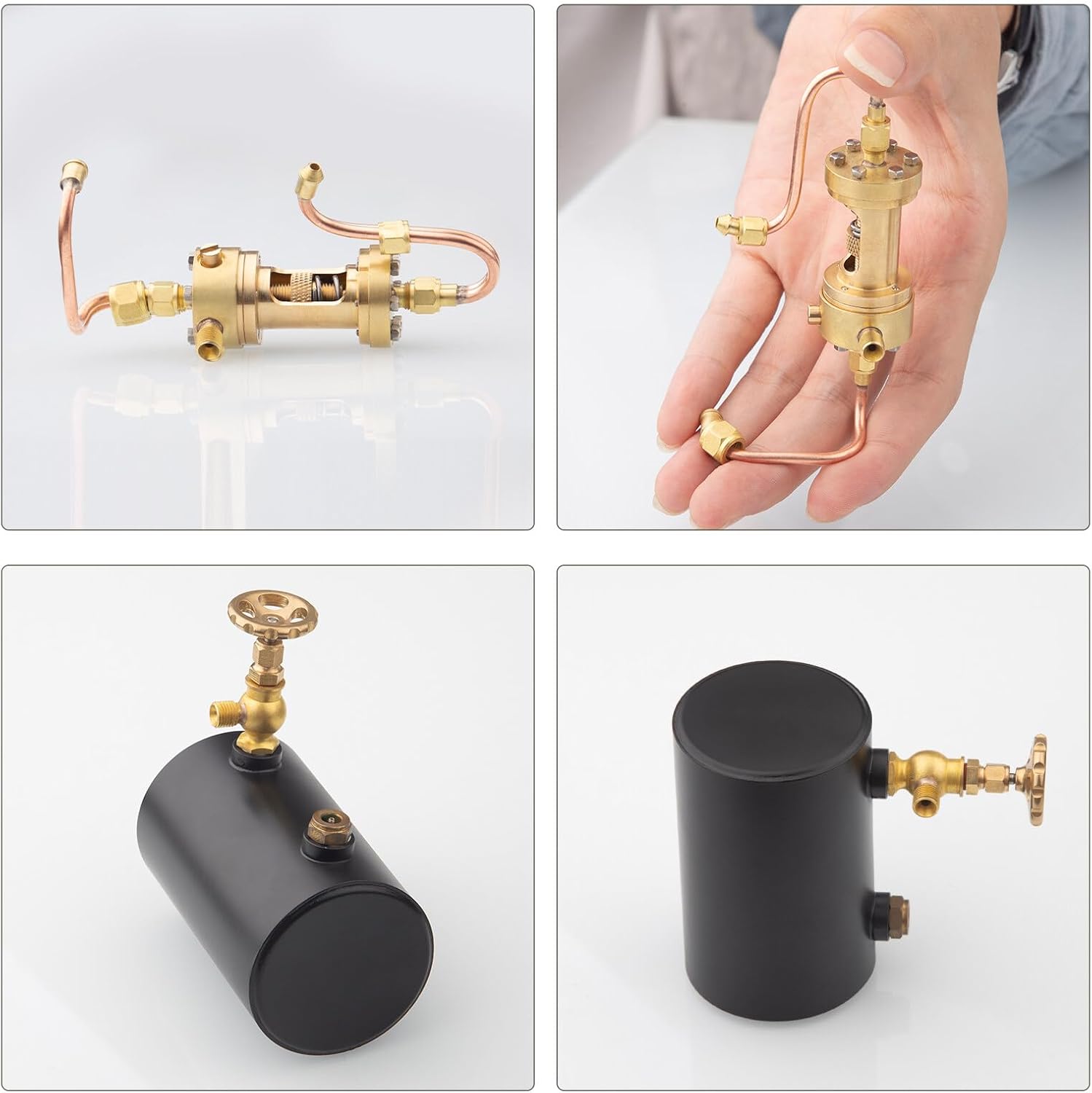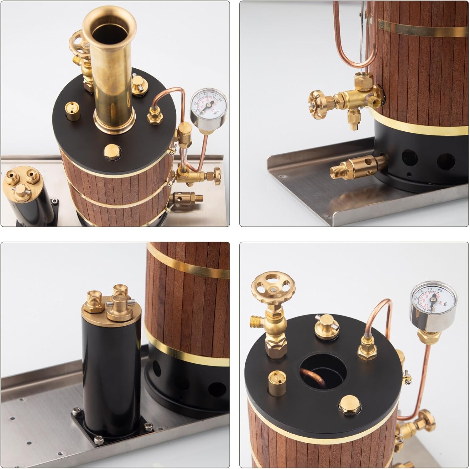 Dimensioni della caldaia: altezza 260 mm, diametro 85 mm, lunghezza 120 mm. Pressione della valvola – 0,5 MPA, capacità caldaia – 230 ML Vernice ad alta temperatura sulla superficie della caldaia e materiali isolanti all'interno del legno per un efficace isolamento Isolamento termico migliorato con una nuova linea di uscita del vapore nell'impianto di recupero del calore ✅ Funzione semplice: collegare il motore a vapore, versare acqua e alcool a combustibile solido nel bollitore, accendere, riscaldare per alcuni secondi, quindi ruotare il volano del motore a vapore per il supporto ✅ Lavorazione accurata, modello squisito, adatto per modelli di macchine a vapore marino