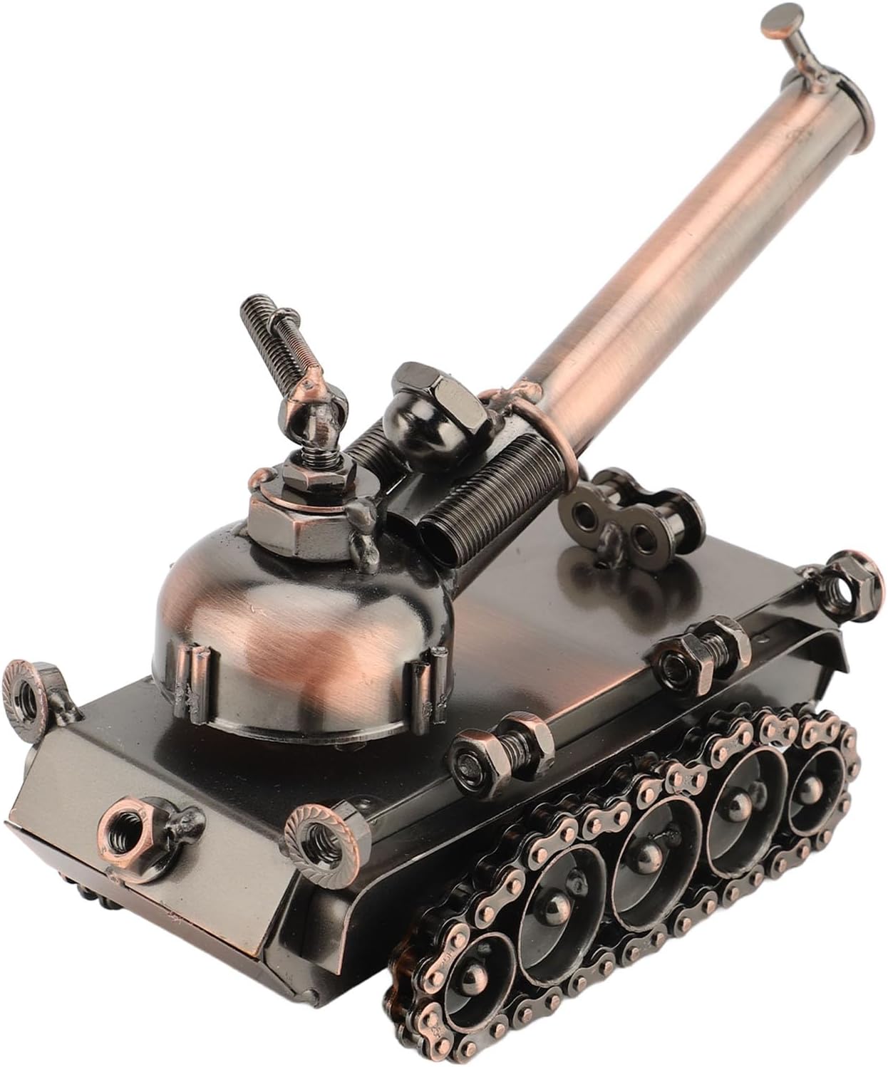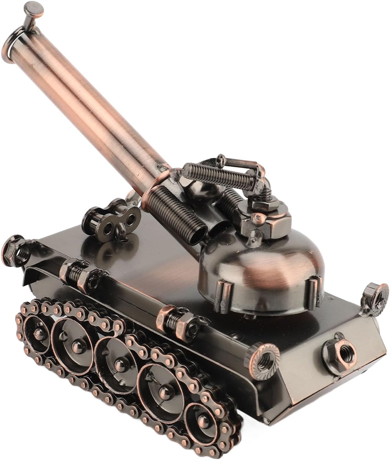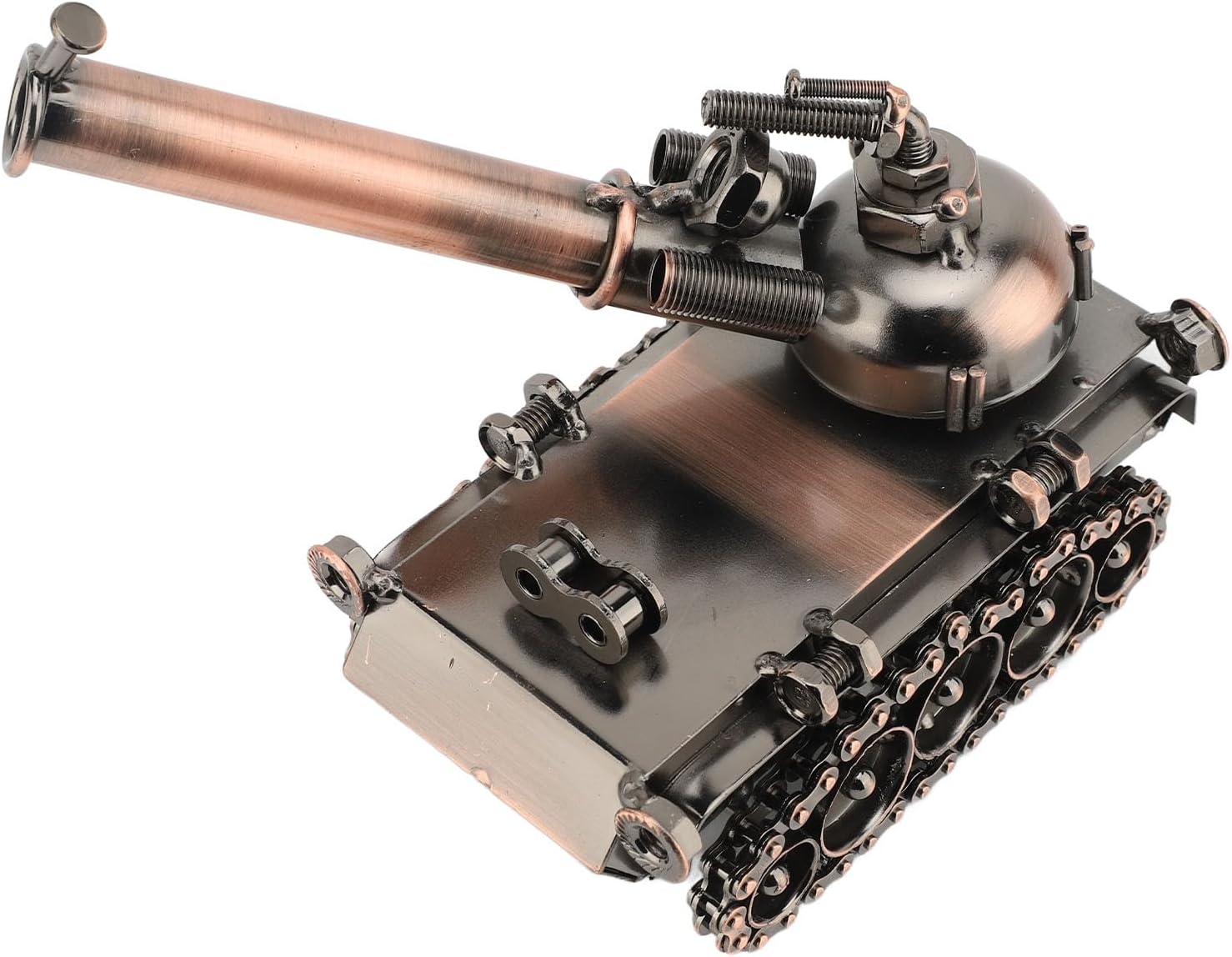 Design eccezionale: il nostro modello di carro armato offre eccellente fattura e fascino estetico, rendendolo una scultura delicata che ogni adulto e bambino adorerà. Arte artigianale: ogni componente di questo serbatoio in ferro, dai pneumatici alle catene e ai bulloni, è meticolosamente saldato a mano per garantire un pezzo d'arte in metallo di alta qualità. Elegante decorazione da tavolo: posiziona questa affascinante scultura sulla tua scrivania, soggiorno o camera da letto per migliorare il tuo spazio con un tocco di arte e originalità. Uso decorativo versatile: con il suo design ad alta simulazione e la squisita fattura, questa statua può abbellire vari ambienti tra cui soggiorni, uffici, negozi e spazi esterni. Dimensioni: ca. 18x7x12 cm / 7,09x2,76x4,72 pollici