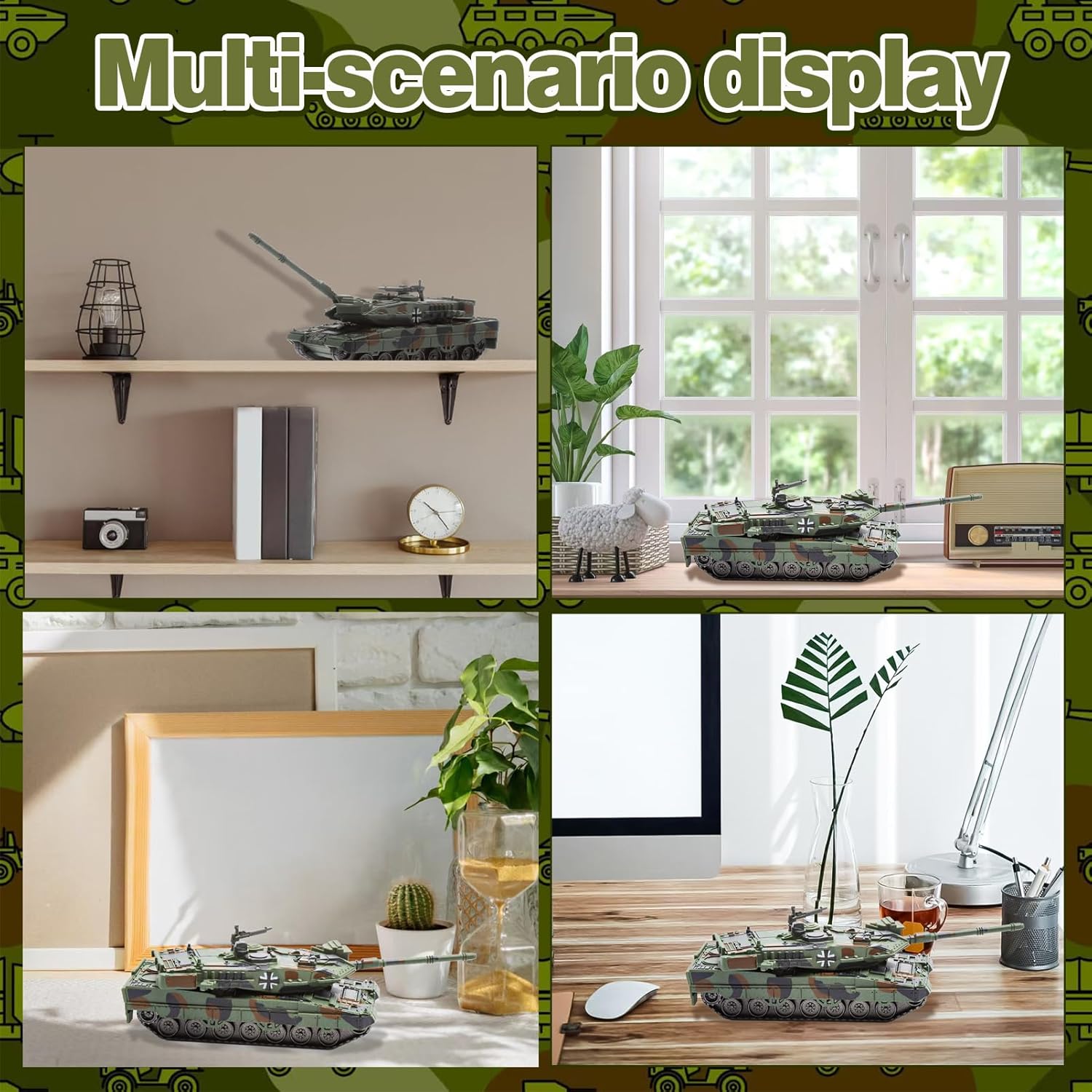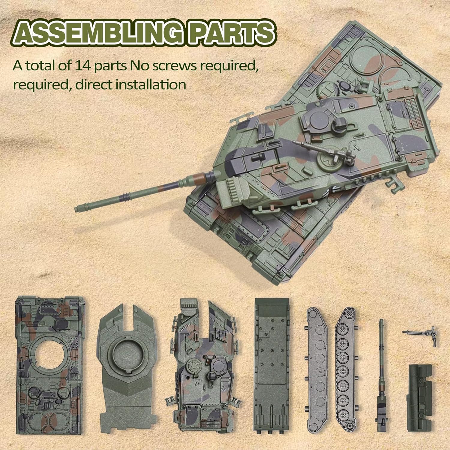 【Materiali di qualità superiore】 Realizzato in plastica ABS di alta qualità, questo modello di carro armato garantisce una robusta stabilità. Il suo rivestimento esterno impiega tecniche di stampa specializzate per immagini vivide e durature che resistono allo sfaldamento o allo sbiadimento, garantendo un'esperienza eccezionale. 【Divertimento senza fine】 Questo modello di carro armato è assemblato da singoli componenti, che richiedono di seguire gli schemi inclusi. Questo processo affina il pensiero logico e la destrezza manuale, coltivando al contempo le capacità di risoluzione dei problemi. Goditi il viaggio dell'assemblaggio e assapora il profondo senso di soddisfazione al completamento. 【Dettagli autentici】 Realizzata con una lavorazione raffinata e una meticolosa attenzione ai dettagli, questa replica in scala 1:72 ricrea fedelmente il carro armato militare Leopard 2A7. Il cannone principale può essere sollevato o abbassato, mentre la torretta ruota di 360 gradi, offrendo un'autenticità realistica e caratteristiche rese in modo vivido. 【Utilizzo versatile】 Questo modello di carro armato ha molteplici scopi: come oggetto interattivo per trascorrere del tempo di qualità con la famiglia, come pezzo da collezione da esporre in vetrine o bacheche, come oggetto decorativo per scrivanie o librerie domestiche, o come oggetto da esporre in occasione di eventi e feste a tema militare. Mette in mostra gli interessi e i gusti personali ed è adatto sia per essere esposto che per essere maneggiato. 【Regalo eccezionale】 Realizzato con squisita attenzione ai dettagli, questo modello di carro armato è un regalo ideale sia per gli uomini che per le donne, in particolare per gli appassionati di militare. Molto apprezzato dai collezionisti, è un regalo gratificante o un'aggiunta ambita a qualsiasi collezione di cimeli militari.