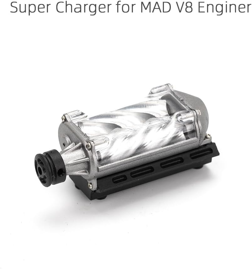 Avviso di pre-acquisto: realizzato in nylon e metallo CNC. Il guscio esterno è realizzato in stampi in nylon, mentre le aste a vite vengono lavorate CNC metallo. Richiede un montaggio fai da te. Struttura Supercharger completamente realistica: il design è una simulazione di un vero caricatore motore con aste a vite mobili e un sistema di puleggia. Simulazione dinamica: richiede l'accoppiamento con un modello di motore V8 per la simulazione operativa. Garantisce stabilità e affidabilità in spazi ristretti. Ampia applicazione: migliora la coordinazione occhio-mano grazie al montaggio fai da te. Compatibile con vari modelli RC come AX90104 SCX10, Capra, VS4-10 Pro/Ultra. Note: questo kit compressore non include il motore e deve essere accoppiato con il modello motore MAD V8. Non compatibile con altri motori o modelli RC