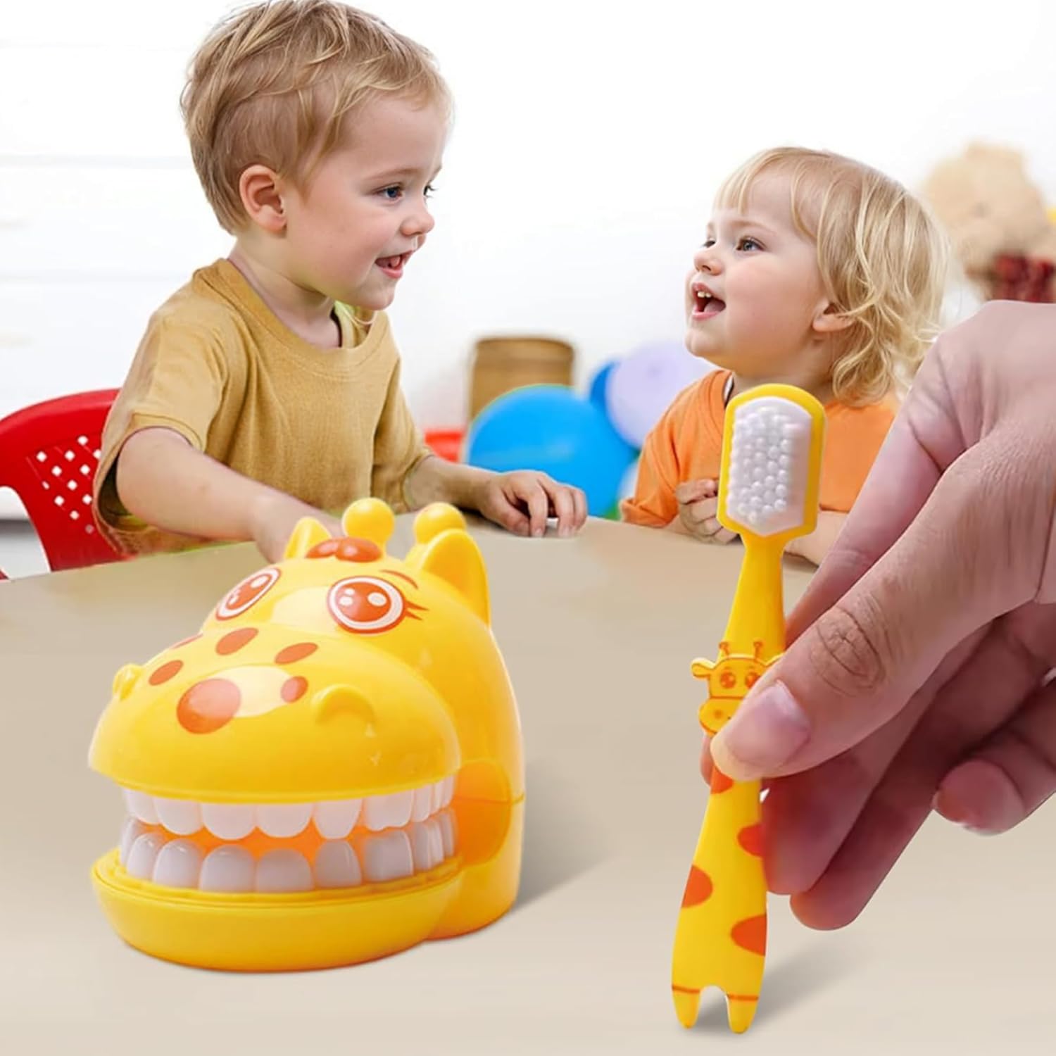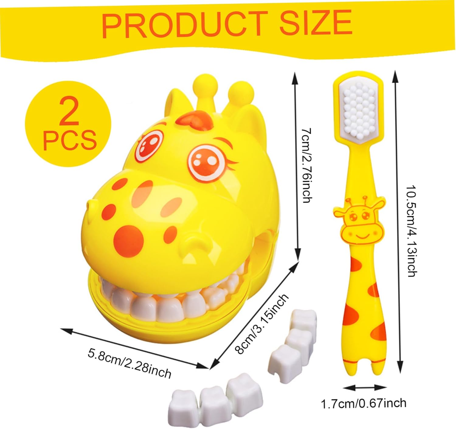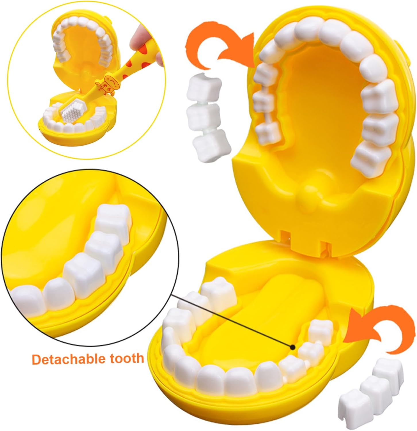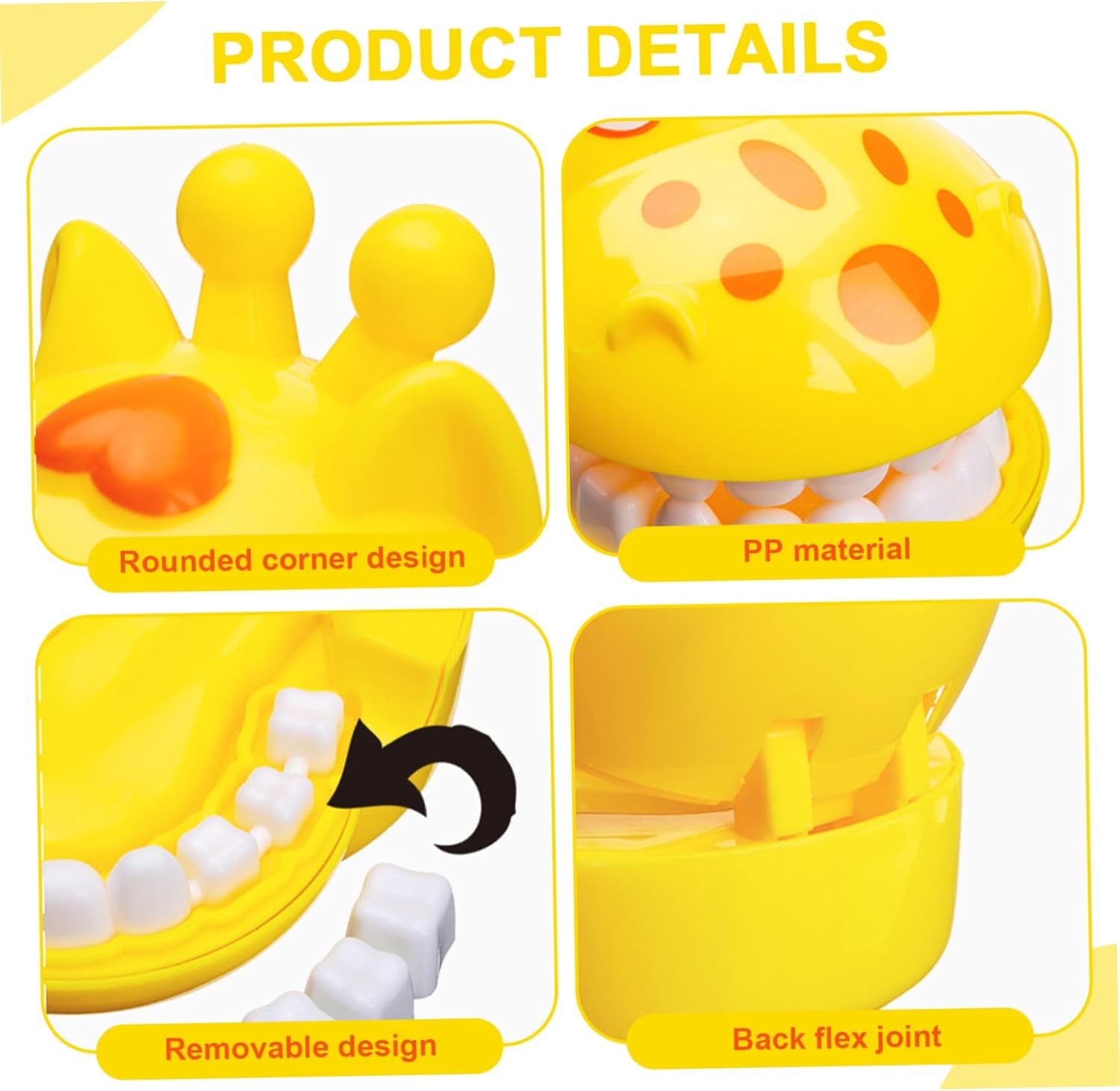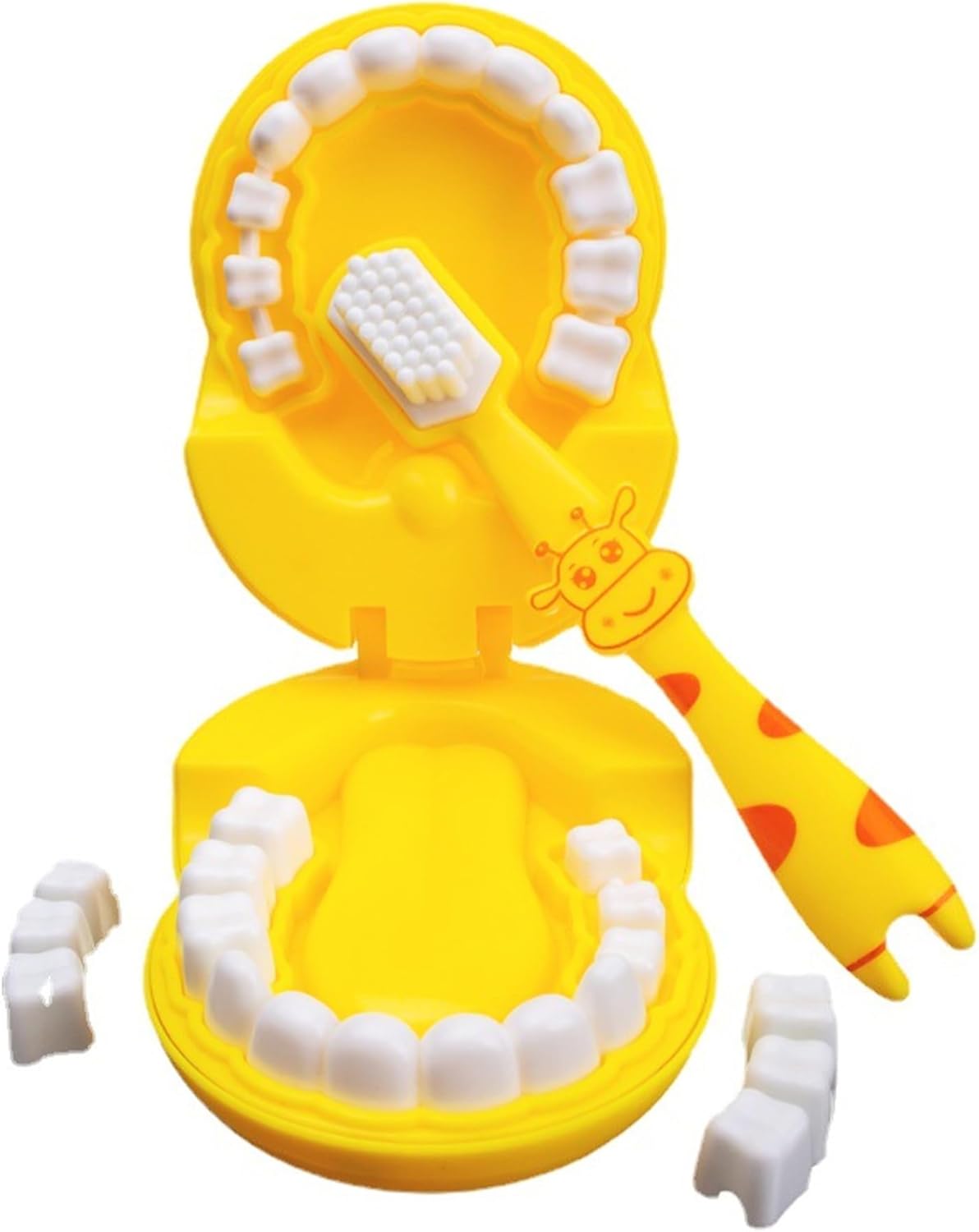 Design divertente e coinvolgente: il modello dei denti per insegnare ai bambini è dotato di una colorata giraffa dei cartoni animati, facendo conoscere l'igiene dentale divertente e coinvolgente..Il design amichevole cattura l'attenzione dei bambini, incoraggiandoli a sviluppare un atteggiamento positivo nei confronti della cura orale. Ideale per gli ambienti educativi: questo modello di denti è perfetto per dimostrazioni in classe, uffici dentisti o ambienti di apprendimento domestico..Serve come eccellente risorsa educativa per insegnanti e genitori, aiutando i bambini a comprendere la salute dentale in modo piacevole. Ottimo per i giovani studenti: sia per compleanni, vacanze o premi in classe, questo modello di denti è fantastico per i bambini..Incoraggia le menti curiose a esplorare la salute dentale, offrendo al contempo un'esperienza di apprendimento pratico che ispira buone abitudini per la vita! Strumento di apprendimento interattivo: questo modello di denti include uno spazzolino da denti, che consente ai bambini di praticare tecniche di spazzolatura adeguate..Il gioco interattivo aiuta a rafforzare le abitudini igieniche e rende facile per i genitori ed educatori insegnare efficacemente le capacità di assistenza dentale essenziali. Promuove abitudini sane: usando questo modello, i bambini imparano l'importanza di una buona igiene orale in un ambiente giocoso..Coltiva abitudini sane fin dalla tenera età, insegnando ai bambini il significato di spazzolare e prendersi cura dei loro denti per prevenire problemi dentali.
