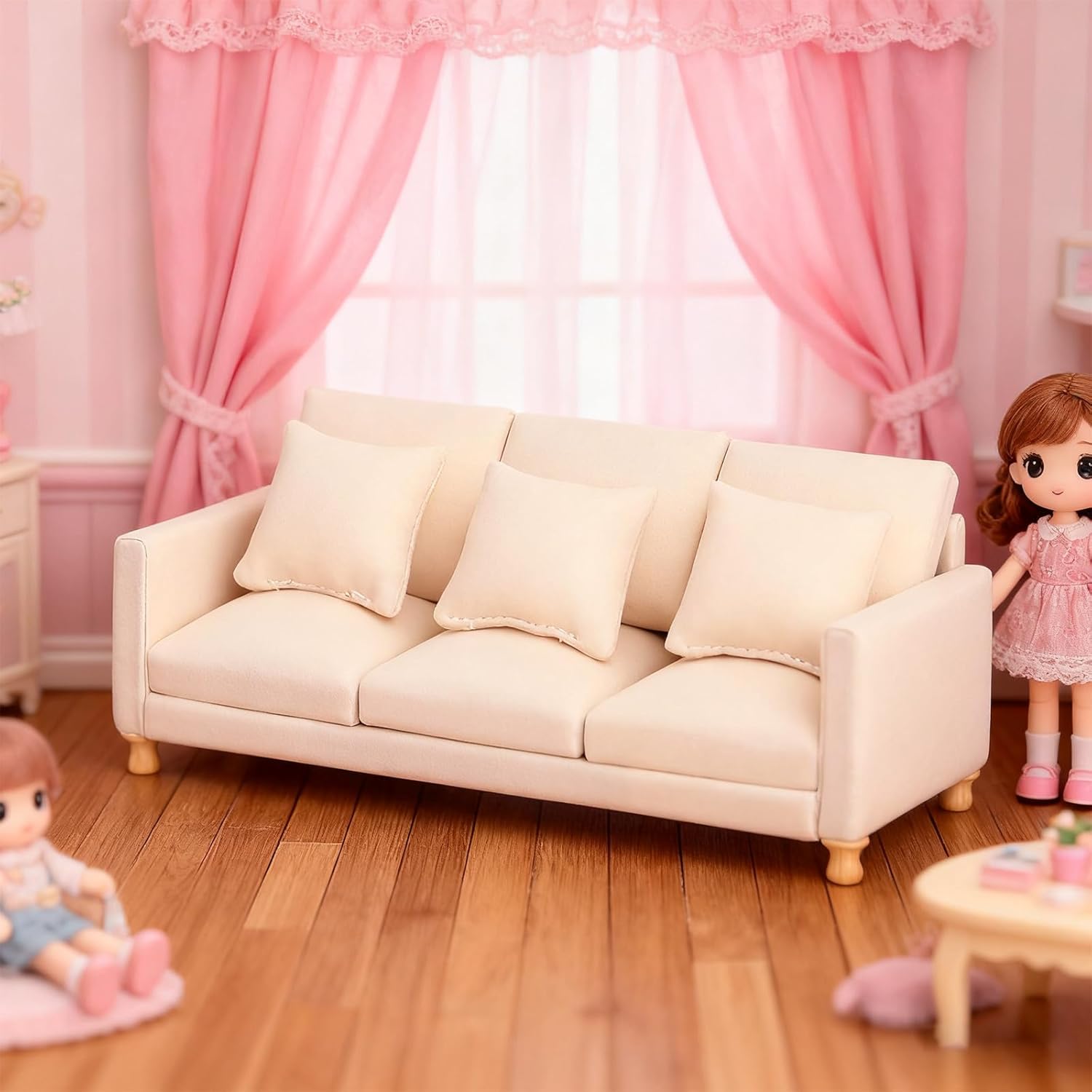 Lussuosamente realizzato con tessuto di alta qualità, questo divano in miniatura per casa delle bambole migliora la raffinatezza del gioco risolvendo al tempo stesso i problemi di durabilità grazie alle sue finiture antigraffio e alla lavorazione di alta qualità. Grazie alle sue precise proporzioni in scala 1:12 e alla struttura robusta, i mobili in miniatura cuciti a mano si integrano perfettamente nelle case delle bambole standard e consentono una trasformazione senza sforzo per un design d'interni dinamico. Combinando materiali atossici e realistici con altri realistici, questo morbido divano garantisce un divertimento duraturo come decorazione preziosa e fantasioso supporto per raccontare storie per generazioni. Ideale per collezionisti esigenti, genitori che apprezzano i giocattoli sicuri per i bambini e hobbisti che cercano decorazioni in miniatura simulate che soddisfino rigorosi criteri di sicurezza ed estetica. Perfetto per creare una scena realistica in un soggiorno in una casa delle bambole vittoriana o moderna o come delicato pezzo da esposizione in collezioni in miniatura per amanti e in ambienti di gioco di ruolo educativi.