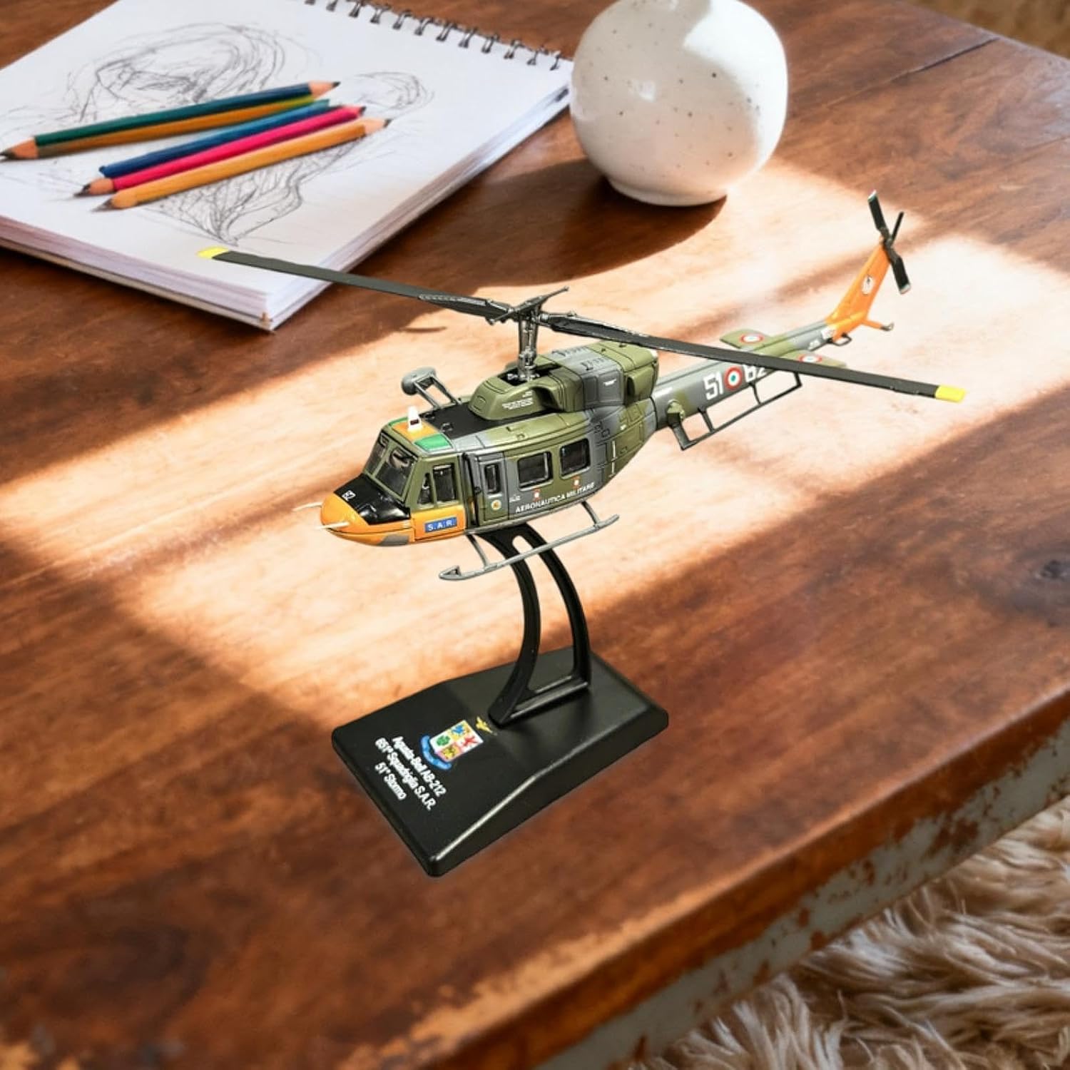 【AMPIAMENTE UTILIZZATO】: Il modello di aeromobile è adatto per la casa, l'ufficio, lo scaffale, la camera da letto, il soggiorno, l'arredamento della scrivania 【Materiale】: il modello di elicottero 1/100 è realizzato in lega e materiale PP, è robusto e ha una lunga durata 【Regalo ideale】: questo modello di aereo in 1/100 è un ottimo regalo per collezionisti o appassionati di elicotteri 【Decorativo per la casa】: modello di elicottero pressofuso, come un fantastico souvenir o una collezione per appassionati di modelli di elicotteri, scenario luminoso in camera da letto e un portaoggetti da collezione 【Dimensioni】: Misurando circa 14 cm x 14,5 cm / 5,51 pollici x 5,71 pollici, il giocattolo da collezione modello di aeroplano è ottimo per essere esposto su un tavolo o scaffale, aggiungendo un tocco di aviazione a qualsiasi spazio