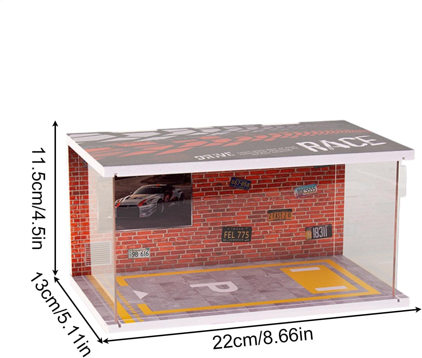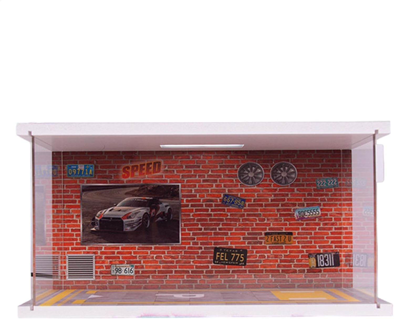 Presentazione del modello più nitida: dotato di una copertura acrilica trasparente, questo garage non solo mette in mostra il tuo modello di auto in modo più vivido, ma lo protegge anche dalla polvere Migliora l'atmosfera della scena: con il suo impressionante effetto luminoso e le luci LED integrate sul soffitto, il Model Garage aumenta l'atmosfera di qualsiasi scena, fornendo spettacolo realistico e affascinante per il divertimento di tutti Materiale robusto: adatto per un uso a lungo termine, questo modello di garage è costruito con materiali eccellenti che offrono una struttura robusta e robusta che migliorerà qualsiasi collezione. Questo modello di garage garantisce funzionalità affidabili Assemblaggio senza sforzo: risparmia e fatica con un processo di assemblaggio rapido; assembla il tuo Model Garage in pochi minuti. Il Model Garage è molto semplice da installare Regalo meraviglioso: sorprendi famiglia, amici e nel loro giorno speciale o in qualsiasi evento festivo con questo eccellente modellino di garage, rendendo ogni celebrazione memorabile