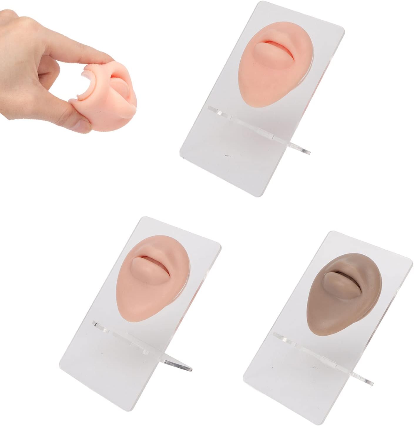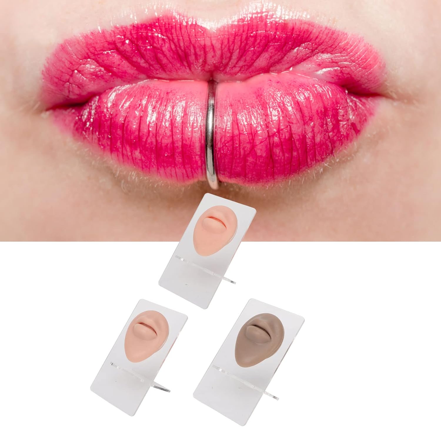 [Aspetto simulato] imitando il design del labbro umano per un'esperienza realistica, per i novizi e riutilizzabile. [Ampia gamma di applicazioni] Ideale per la pratica del piercing Labret, oggetti di scena per le labbra dell'ospele e altro ancora. [Design portatile] leggero e compatto, essenziale per artisti piercing e studenti ospelieri. [Stand acrilico incluso] Assemblaggio facile per mostrare effetti per piercing Labret, 3pc con colori diversi. [Materiale in silicone morbido] Sicuro, ecologico, resistente, elevato resistenza e resistenti all'usura per un uso duraturo.