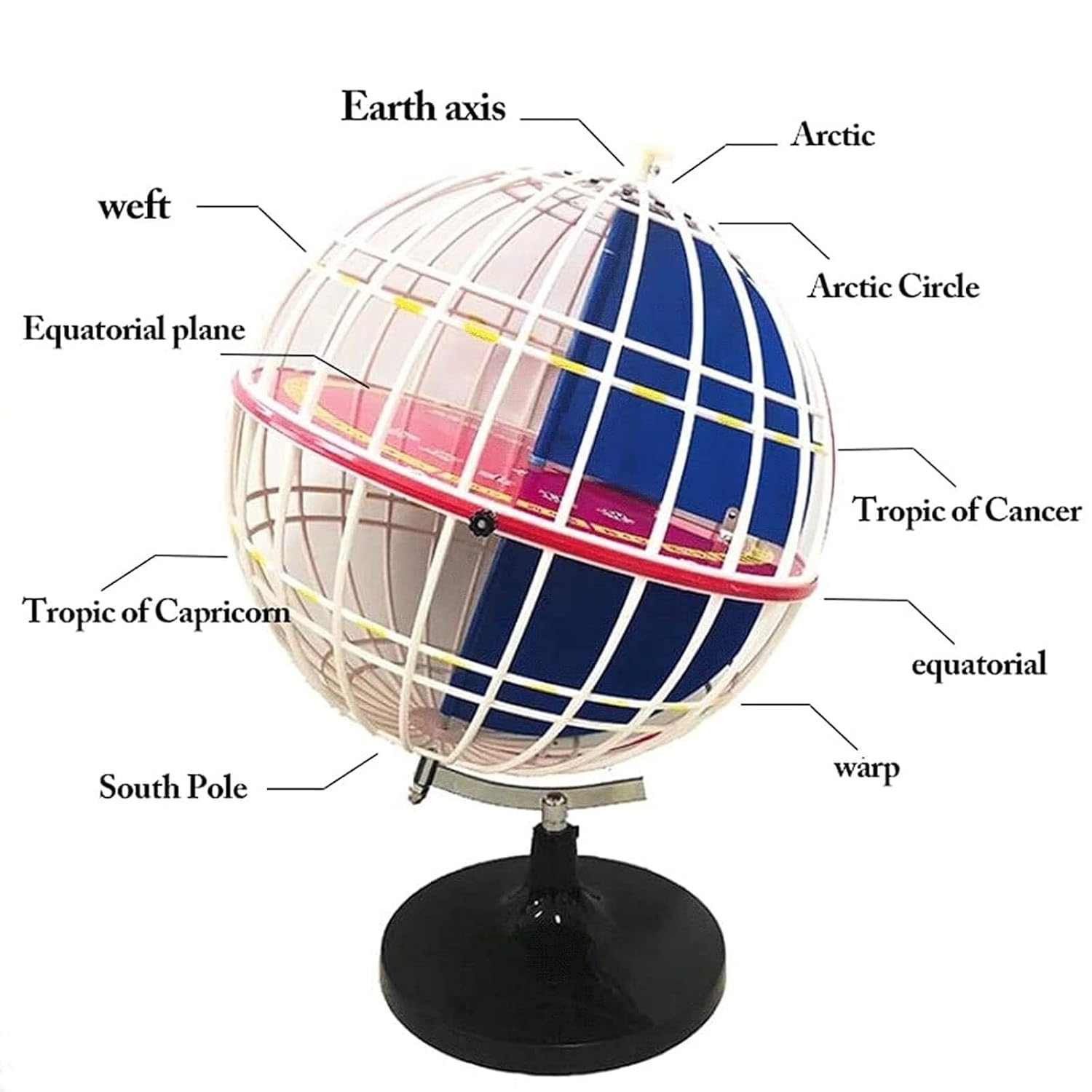 Globe: l'idea perfetta for quasi tutte le occasioni. Compleanni dei bambini, Natale, compleanni degli amici, inaugurazione di nuovi uffici e studi, siete i benvenuti a essere creativi. Il modello è composto da ventiquattro fili di ordito e nove fili di latitudine for formare una sfera cava a forma di rete. La sfera è dotata di una piastra fissa originale del piano di ordito e di una piastra del piano equatoriale. Regolabile: è dotato di una tavola del piano di curvatura girevole e di un puntatore di latitudine. La parte superiore della palla è dotata di una manopola di regolazione. La tavola del piano di curvatura e il puntatore di latitudine possono essere regolati in base alle esigenze della dimostrazione. Il diametro della sfera è di 32 cm//12,5 pollici, ed è montata sulla staffa. L'asse terrestre è a un angolo di 66 gradi e 30 minuti dal piano della base, ed è attaccata una ghiera for dimostrare il fuso orario teorico e la longitudine. Facile da montare: è necessario collegare la sfera alla base e fissarla con una vite a croce. Può essere assemblato.