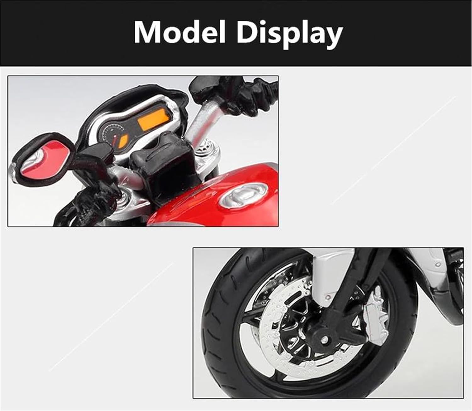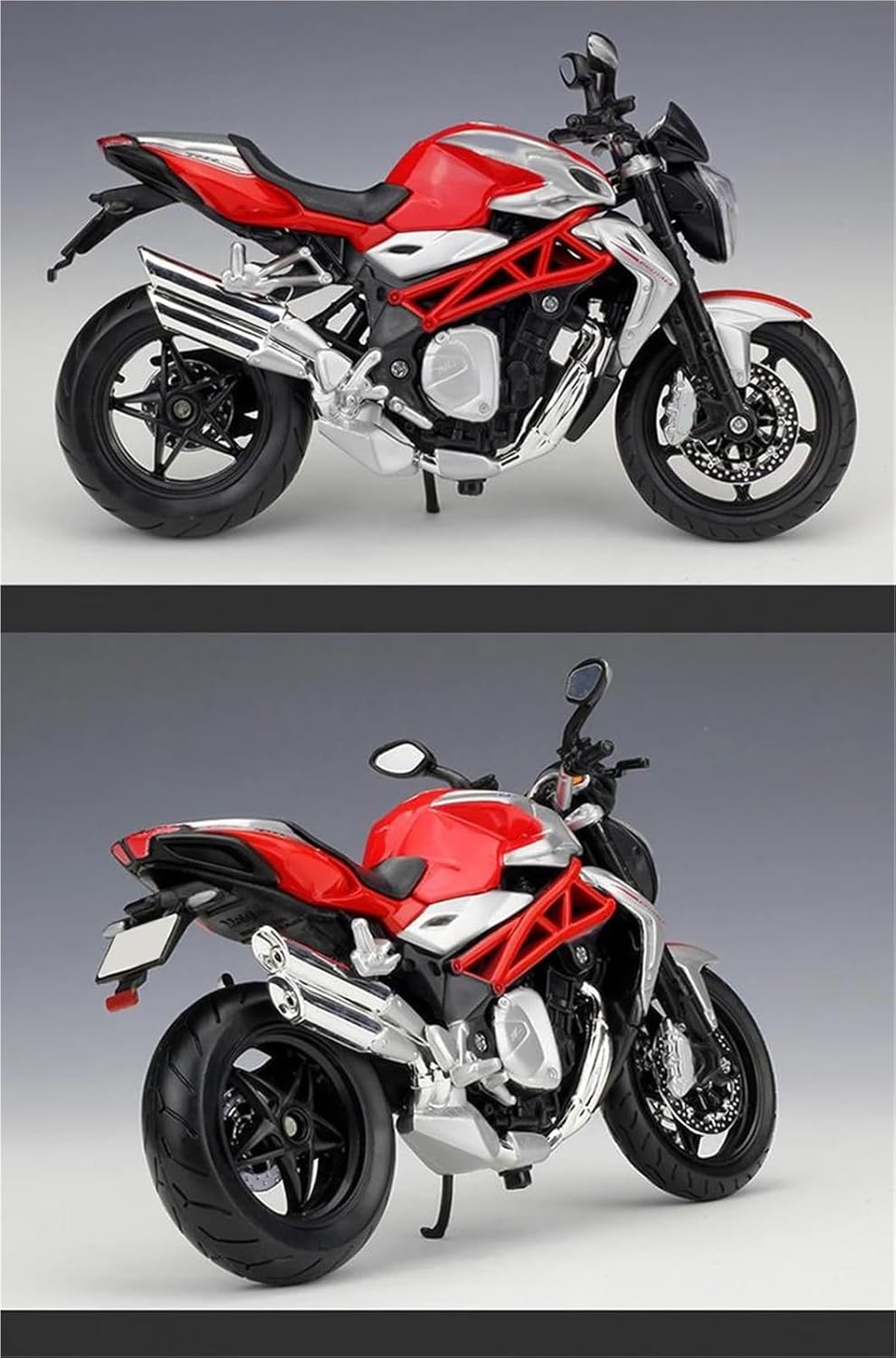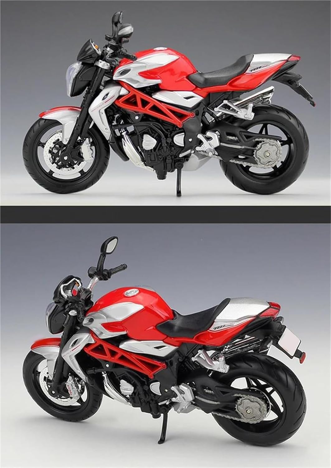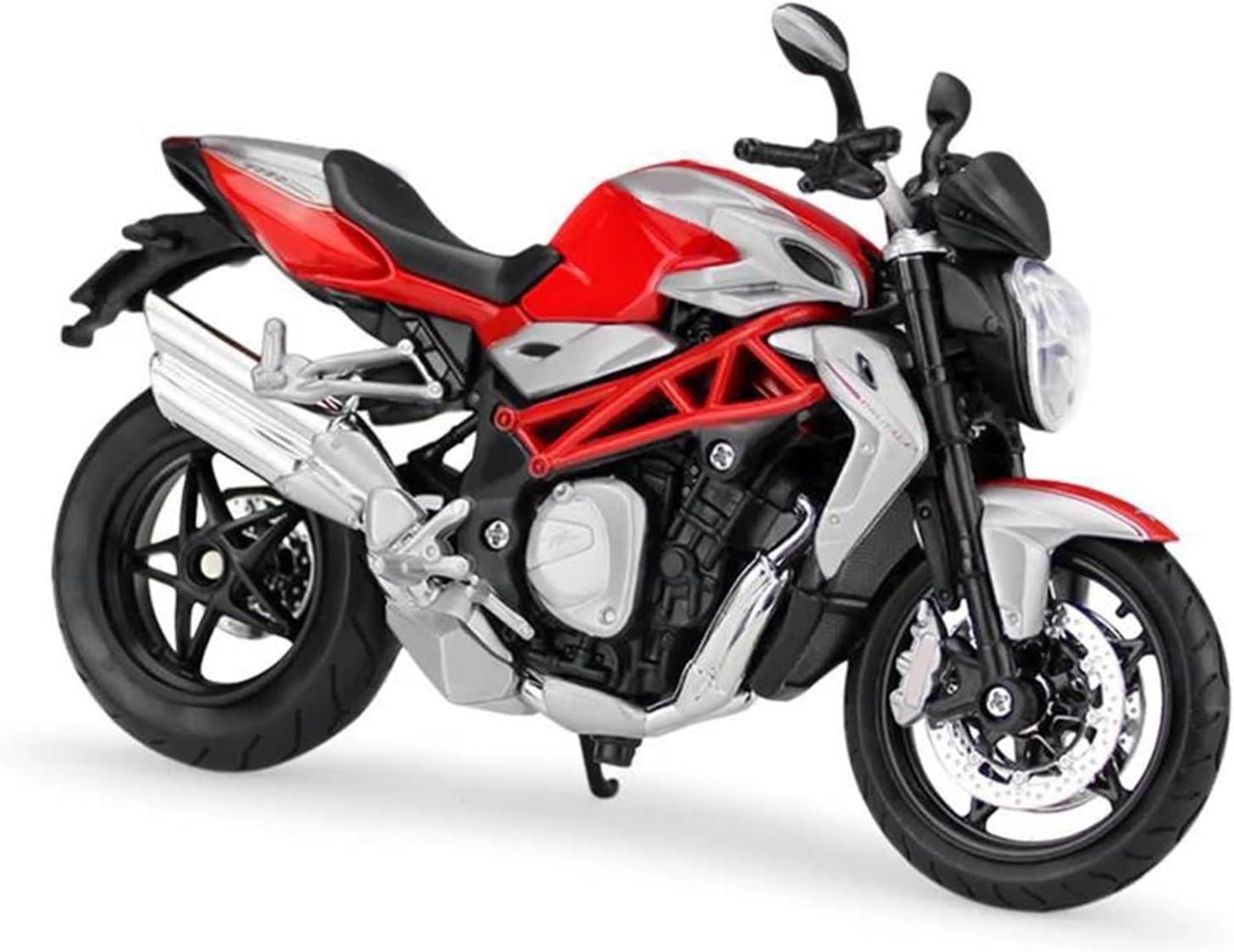 Modello di motocicletta per MV per Agusta Brutale 1090RR, la confezione include: 1 modello in lega Modello di auto giocattolo per moto in scala 1:12, realizzato con precisione e attenzione a ogni dettaglio, questo modello di motocicletta offre una replica realistica dell'originale, perfetto per i giovani appassionati di motociclette che ammirano la cosa reale. Parti squisite progettate secondo le proporzioni dell'auto originale, il cruscotto, i pedali del freno e dell'acceleratore sono progettati per essere realistici e precisi. Modello di auto di simulazione Realizzato in resistente lega di zinco, è resistente alle cadute e all'usura, garantendo la durevolezza del modello e la sua lunga conservazione. La finitura della vernice è uniformemente liscia, con colori vivaci e duraturi che resistono allo sbiadimento e alle scheggiature, garantendo un aspetto costantemente brillante.