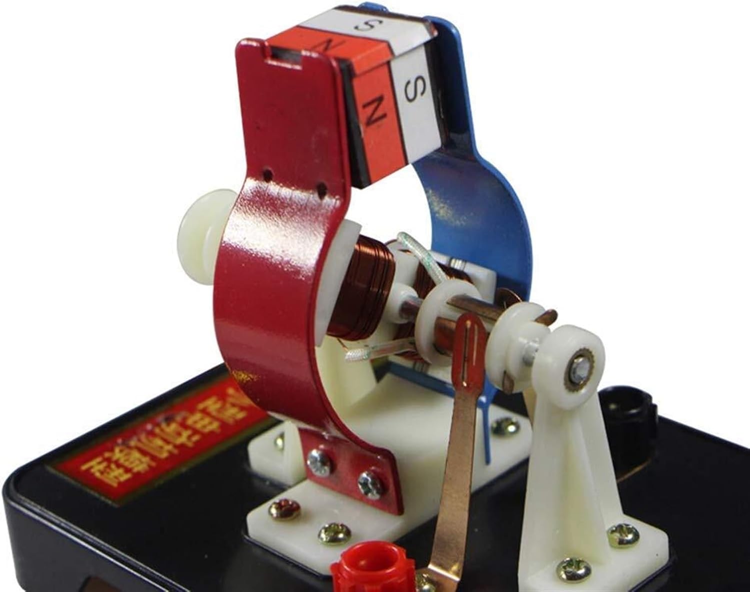 Può essere smontato e montato per verificare la relazione tra lo sterzo dell'armatura e la direzione delle linee di corrente e di forza magnetica. Struttura solida Supporto viti e dadi M3, M4 per rinforzo, struttura stabile. Ordine di utilizzo: Collegare il motore assemblato e regolato alla rete elettrica;