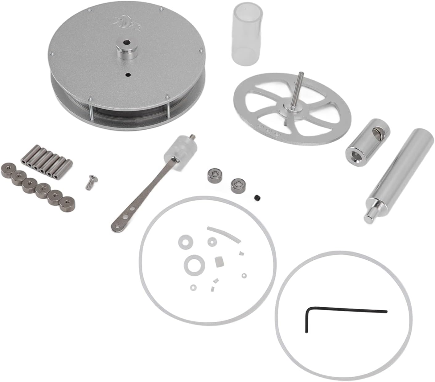【ESTREMAMENTE BEN FATTO】 La piastra inferiore è realizzata in lega di alluminio spazzolato, raffinata e bella; Il telaio è rifinito con CNC, il che dimostra che il trattamento di sabbiatura è solido; Volano in lega di alluminio; Biella tagliata in acciaio inossidabile; Cilindro riscaldante per materiale di vetro spesso su misura, riscaldamento a lungo termine senza pressione. forma complessiva del modello raffinata, combinazione di consistenza e bellezza. 【ASPETTO SQUISITO】 La staffa metallica e il pistone metallico sono solidi, il che combina consistenza e bellezza. La ricerca dei dettagli, la levigatura complessiva, la sensazione di morbidezza, la tecnologia è molto metallica e moderna. Il prodotto stesso è stato assemblato, ha valore da collezione e può essere utilizzato come decorazione. 【Funzionamento semplice e lunga durata】 Riempire la lampada con alcool al 95% per riscaldare il cilindro di vetro; quindi, dopo essersi riscaldato per alcuni secondi, girare il volante e girerà rapidamente e senza intoppi. 【OPERA D'ARTE FANTASTICA】 Attraverso un funzionamento conveniente, puoi osservare l'intero processo di funzionamento del motore e padroneggiare il principio di funzionamento del motore Stirling a bassa temperatura in modo più intuitivo. È un inizio di conversazione che impressiona i tuoi visitatori. Anche se è semplicemente posizionato sulla scrivania, è un'opera d'arte fantastica. 【OPZIONE PRIORITARIA】 Ha una vasta gamma di applicazioni, come progetti scientifici per bambini, apprendimento fisico/meccanico, oggetti dimostrativi in classe per insegnanti, amici, familiari, genitori, regali di compleanno per bambini, ecc. Molti dei nostri clienti provengono da scuole modello e hobbisti.