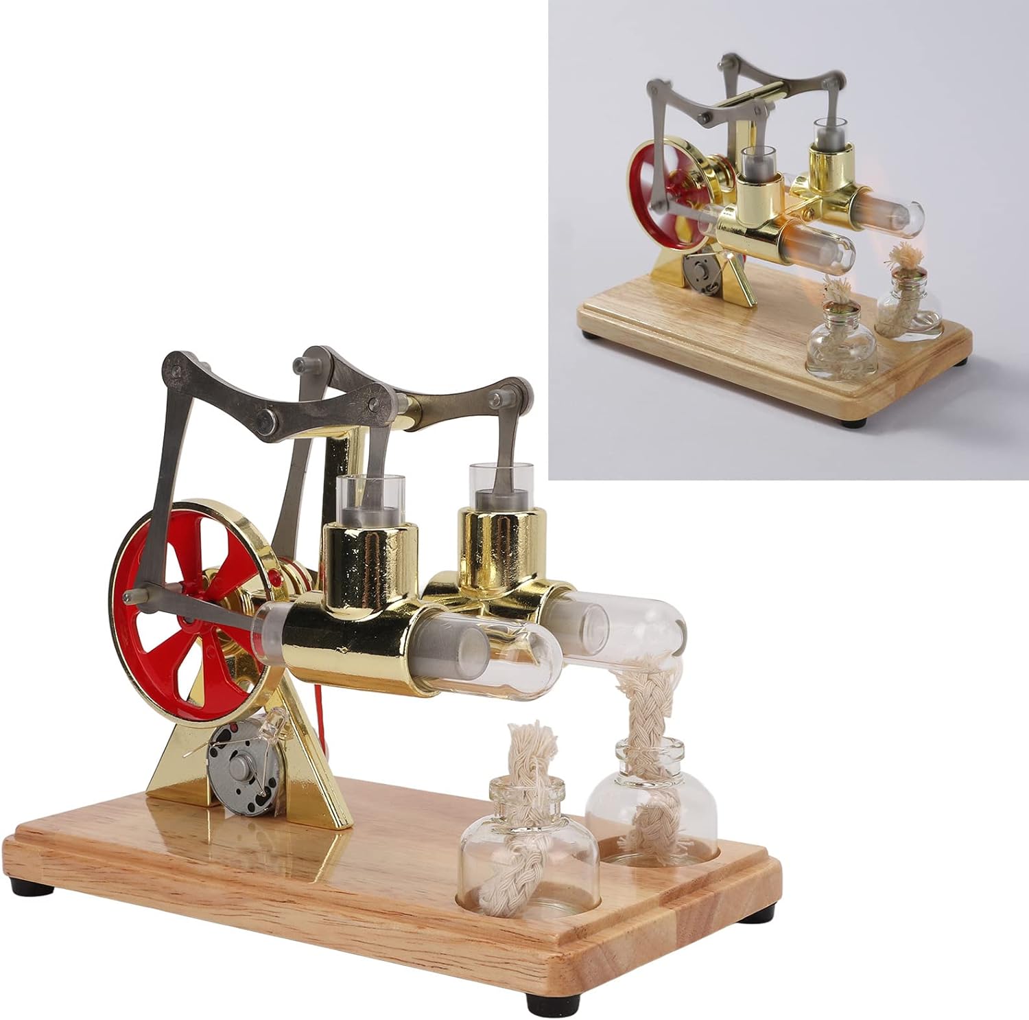 Pregevole fattura: ben realizzata, questa cornice è rifinita, l'aspetto è squisito e bello e la consistenza e la bellezza sono combinate. Multiuso: ha una vasta gamma di applicazioni, come regali per progetti scientifici per bambini, apprendimento automatico fisico, oggetti di scena dimostrativi per insegnanti in classe Antiscivolo: sono presenti 4 cuscinetti antiscivolo nella parte inferiore del modello di macchina per garantire un funzionamento stabile. Confezione regalo elegante, bassa rumorosità, basso inquinamento, bassi costi di gestione. Ottima scelta: utilizzando una sofisticata tecnologia di produzione, può essere utilizzato non solo come decorazione perfetta, ma anche come regalo di compleanno per amici, familiari, genitori, bambini, ecc. Funzionamento semplice: riempire con alcol al 95% e accenderlo. Lascia che la luce si accenda sul cilindro all'estremità arrotondata per circa 60-120 secondi, quindi spingi delicatamente la ruota per farla girare.