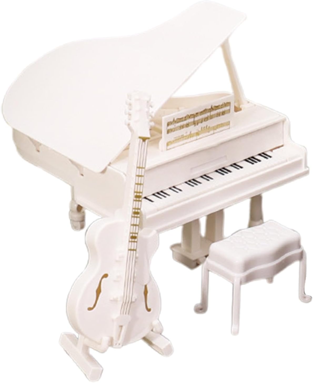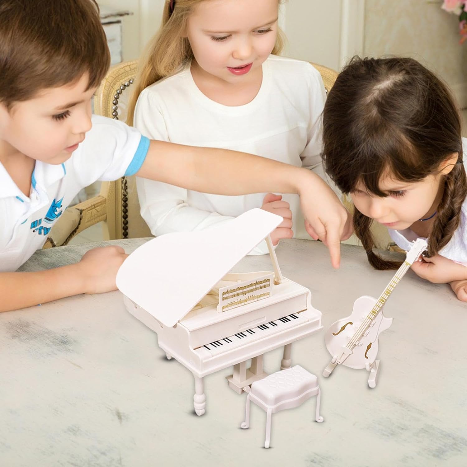 Durabilità a lunga durata: realizzato con materiali eccellenti, questo modello di pianoforte presenta caratteristiche sicure ed ecologiche, ideali per i giochi per garantire durata e sicurezza. Lavorazione eccezionale: migliora la tua scena in miniatura con questo modello di pianoforte molto dettagliato e finemente inciso per riprodurre l'aspetto dei veri strumenti musicali, portando così autenticità alla tua collezione. Miglioramento delle prestazioni: rendi la tua scena più colorata, migliora la giocabilità e la visibilità complessive; viene fornito con chitarra, sgabello e vari accessori per strumenti musicali oltre al piccolo modello di pianoforte Design adatto ai viaggi: progettato come compatto e, questo modello di pianoforte in miniatura si integra facilmente in camere d', uffici e vetrine senza occupare molto spazio, ideale per vari ambienti Aumenta la creatività del tuo bambino: il nostro modello di pianoforte è ideale per sviluppare creatività e immaginazione, con un design unico che integra tessuto di lino e motivi giocosi.