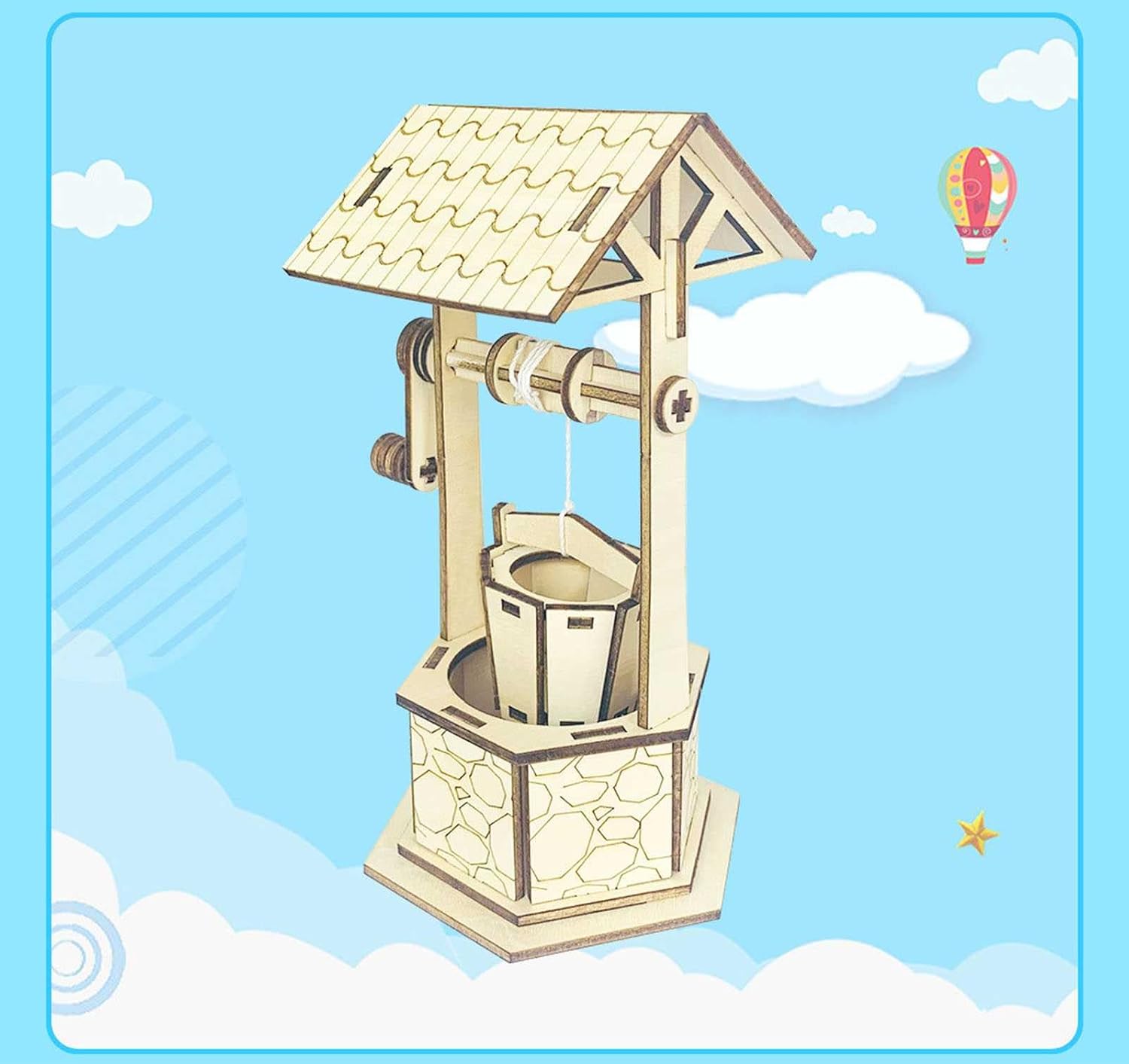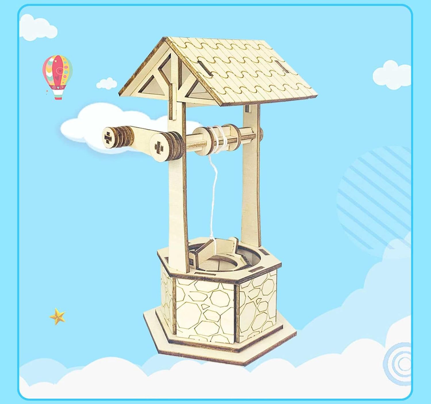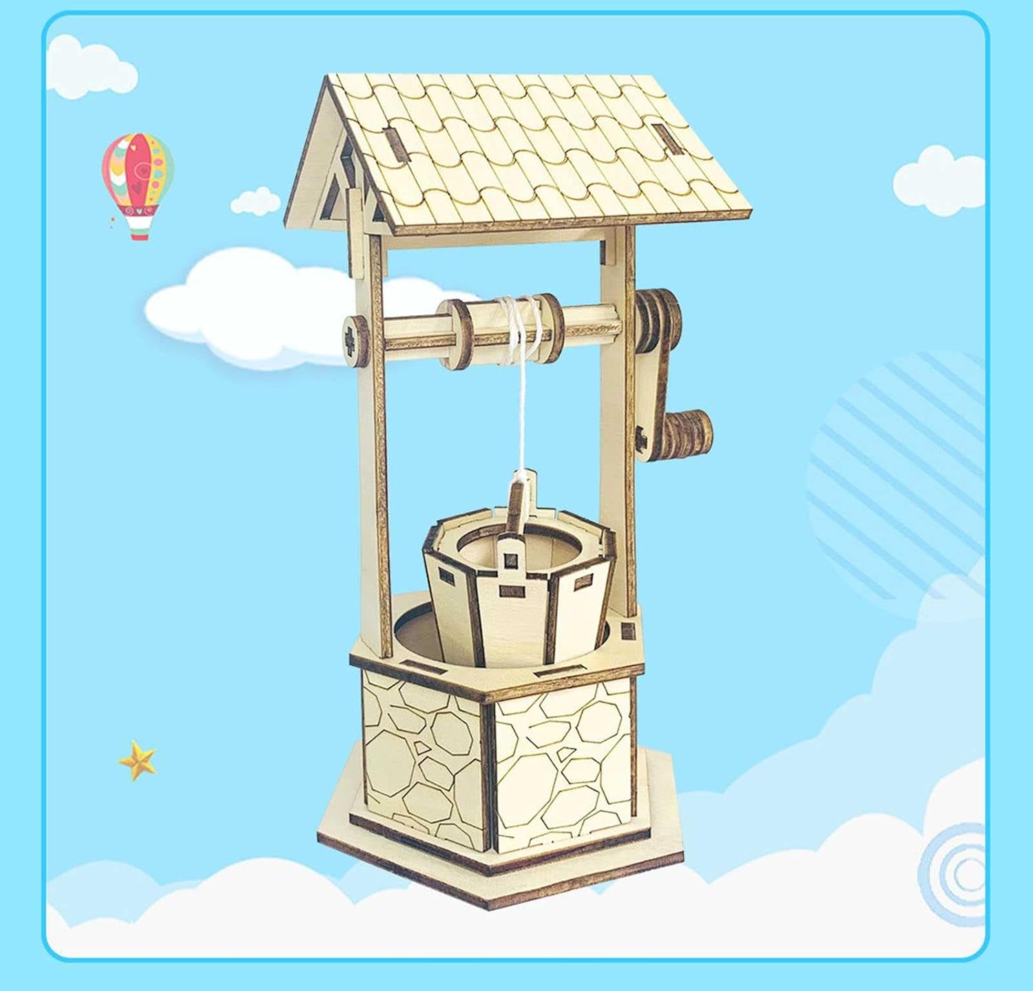 Il supporto triangolare, imitando le caratteristiche strutturali del supporto triangolare negli edifici antichi, raggiunge la funzione di stabilizzazione del tetto. Il principio del sollevamento manuale e del meccanismo fisso della puleggia è quello di fissare un asse centrale rotante e scuotendo la maniglia manuale, l'operazione di spostare la benna su e giù può essere raggiunta. Secchio retrò, il secchio imita la struttura a secchio vecchio stile.