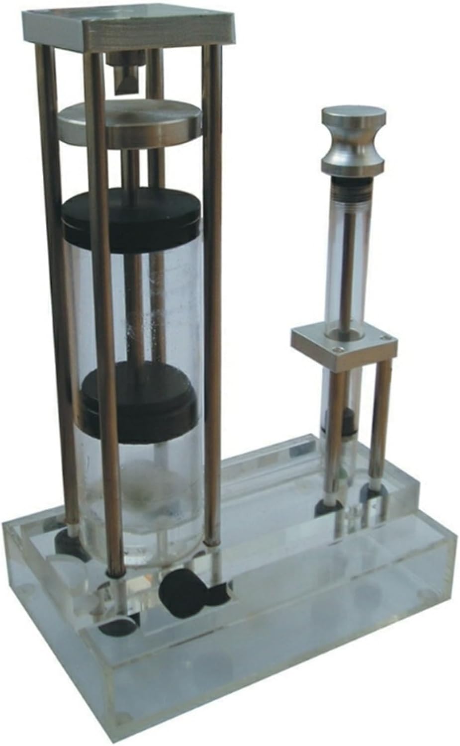 Durante l'insegnamento verrà illustrato il principio di esplorazione del modello della pressa idraulica. Utilizzare l'acqua come conduttore per la trasmissione della pressione. Modello pressa idraulica: tipo idraulico, materiale: acciaio inossidabile Realizzato con parti trasparenti e in acciaio inossidabile, è composto da un serbatoio d'acqua, un piccolo cilindro pistone, un grande cilindro pistone, una piattaforma di pressione, una taglierina, ecc. Il diametro del pistone piccolo è 16 mm e la distanza di movimento è 80 mm; il diametro del pistone grande è 56 mm e la distanza di movimento è maggiore di 50 mm; il volume del serbatoio dell'acqua è 500 ml. La dimensione totale è di circa 200*130*300 mm.