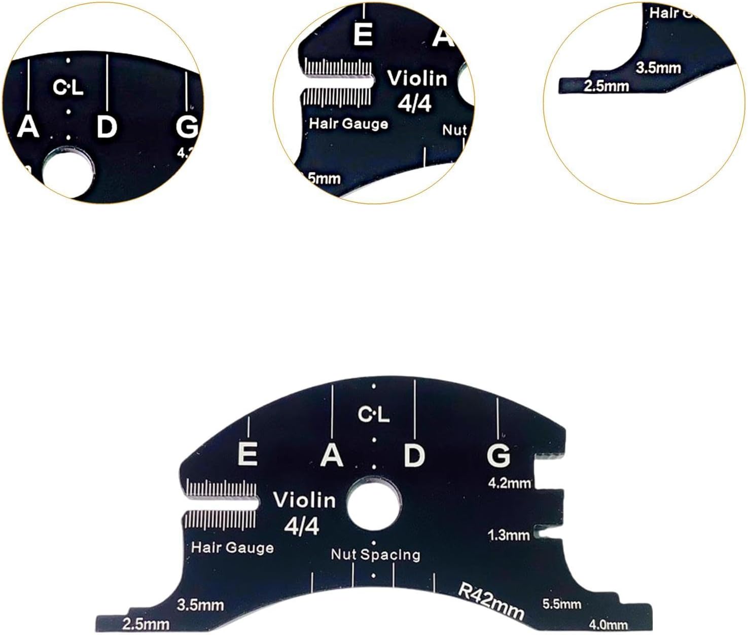 【Dimensioni compatte】: Con una lunghezza di circa 7,5 cm/2,95 pollici, questo modello ha una comoda dimensione compatta per una facile gestione in complicate attività di riparazione. corde dalla tastiera. Include anche informazioni sulla larghezza del ponte e sullo spessore delle corde per garantire una riparazione e una produzione precise del ponte del violino. 【Materiale Acrilico】: Realizzato in acrilico di alta qualità, questo stencil offre durabilità e marcature dimensionali, rendendolo uno strumento affidabile sia per i liutai professionisti che per gli appassionati di fai da te nella manutenzione dei violini. 【Strumento essenziale per la cura del violino】: Il ponte del violino è un componente importante che supporta le corde e trasmette le loro vibrazioni allo strumento, che influenza la qualità del suono. Questo modello è uno strumento essenziale sia per riparare i ponti esistenti che per realizzare con precisione nuovi ponti.