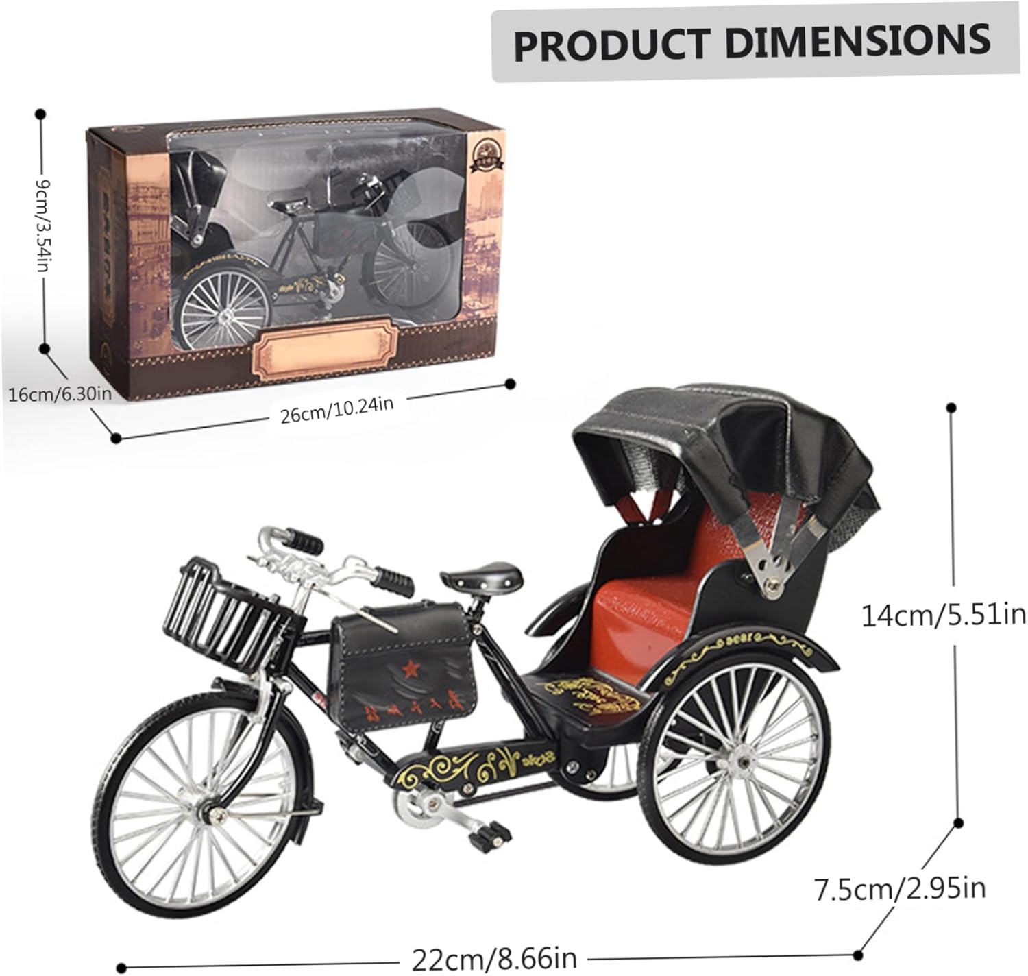 Ruote e tonalità mobili: dotate di ruote mobili completamente funzionali e una tonalità, questo modello offre un'esperienza interattiva e realistica..L'attenzione ai dettagli nella mobilità delle ruote e nell'ombra regolabile aumenta la sua autenticità. Valore educativo: ideale per l'insegnamento sulla storia dei trasporti o studi culturali, questo risciò modella un valore educativo..Il suo design realistico e le parti in movimento lo rendono un ottimo strumento per l'apprendimento eliminando anche la curiosità nei bambini e nei collezionisti. Design vintage: questo modello di risciò presenta una classica cornice in lega nera e dettagli intricati, rendendolo un pezzo decorativo elegante e realistico..Il design vintage aggiunge un tocco di fascino storico a qualsiasi spazio. Costruzione in lega: realizzato in lega di alta qualità, questo modello di triciclo è costruito per durare..Il materiale robusto garantisce la longevità, pur mantenendo i suoi dettagli raffinati e la intricata artigianato, rendendolo sia un pezzo decorativo ed educativo. Perfetto per il display o le case delle bambole: misurazione 9x3x5,5 pollici, questo modello di triciclo compatto è perfetto per display domestici o impostazioni della casa delle bambole..Serve sia come ornamento decorativo che da giocattolo coinvolgente per collezionisti e hobbisti.