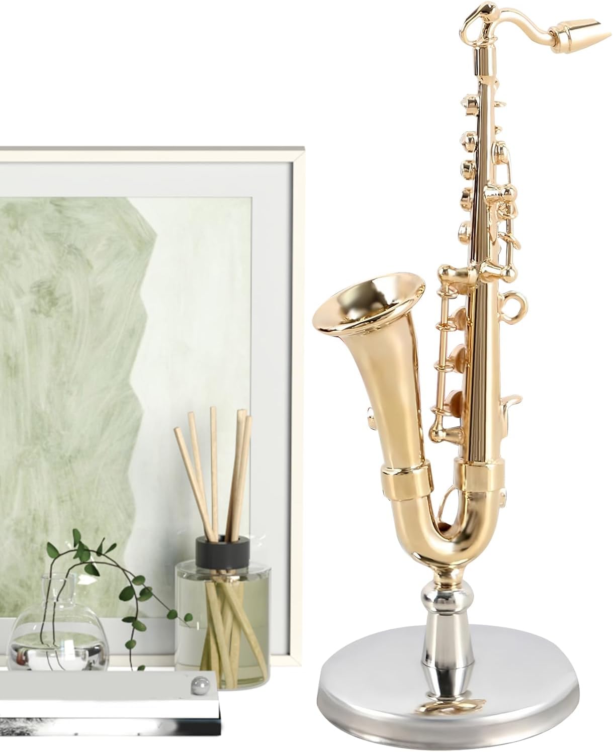 Miglioratore estetico: la figura decorativa del mini sassofono con base in ottone e riflessi dorati crea un aspetto attraente. Archi dalla forma precisa, dettagli artistici e una lucentezza metallica opaca danno vita a ornamenti per sassofono raffinati e senza sforzo. Evidenziazione decorativa: questo sassofono in miniatura aggiunge fascino artistico a qualsiasi stanza grazie al suo design elegante e alle proporzioni dinamiche, ideale per la scrivania o. Miglioramento del fascino naturale come accessorio di stile Robusta durata: Realizzato in ottone, il sassofono in miniatura mantiene permanentemente la sua brillantezza con superfici resistenti ai colori, migliorando il valore decorativo in ogni ambiente Regalo caldo: Design semplice con eleganza senza tempo per gli amanti dell'arte, trasmette emozioni sincere come regalo perfetto per celebrazioni ed eventi festivi Comodo da usare: Le tecniche di lucidatura ripetute danno luogo a superfici perfettamente lisce che forniscono una sensazione piacevole e aumentano la soddisfazione generale dell'utente.