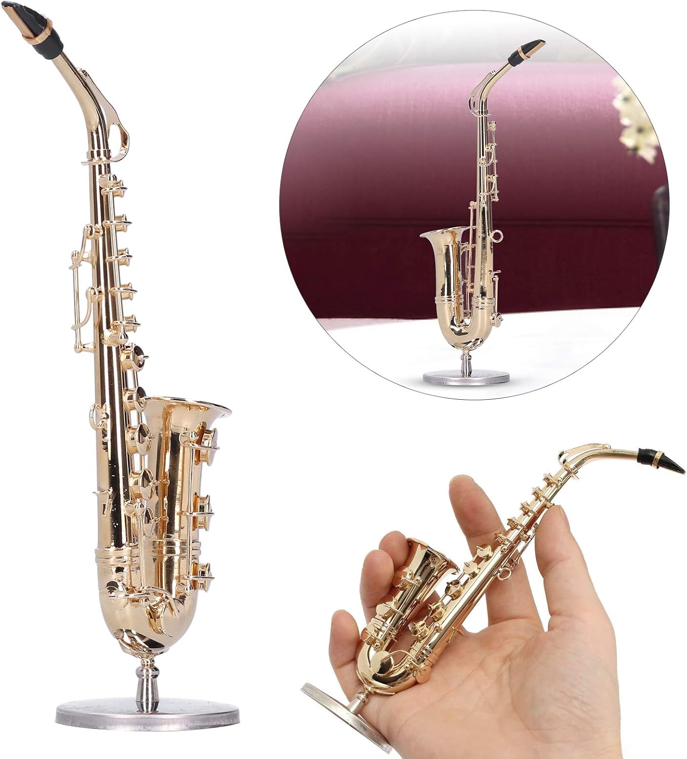 [Modello di replica in miniatura dettagliato] Scopri l'intricata lavorazione artigianale con questo modello dettagliato di sassofono in miniatura, da collezione o ornamento. [Adatto per la collezione e] Questo modello di sassofono è stato progettato con cura per gli appassionati di strumenti musicali ed è un'ottima aggiunta a qualsiasi collezione o premuroso per gli amanti della musica. [Lavorazione squisita] Ammira la lavorazione raffinata e squisita che ha creato questo modello di sassofono da esporre come un elegante ornamento. [Materiali di qualità premium] Questo modello di sassofono è realizzato con materiali di rame di alta qualità da artigiani professionisti, offrendo una finitura di alta qualità e una superficie liscia. [Uso versatile] Che sia per la tua collezione, come pezzo unico o semplicemente come bellissimo ornamento, questo modello di sassofono in rame impressionerà sicuramente con la sua attenzione ai dettagli.